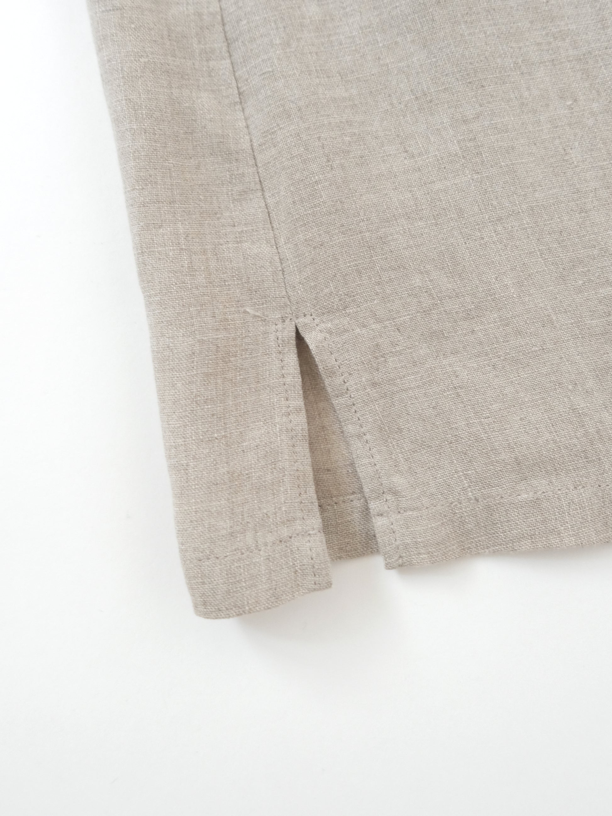 ベルギーリネンのリーディングカンパニー「LIBECO / リベコ」社のつくる生地を使用しています。リネンならではの清涼感はもちろん、着るほどにガーゼのようなやさしい肌あたりに変化するのが特徴。