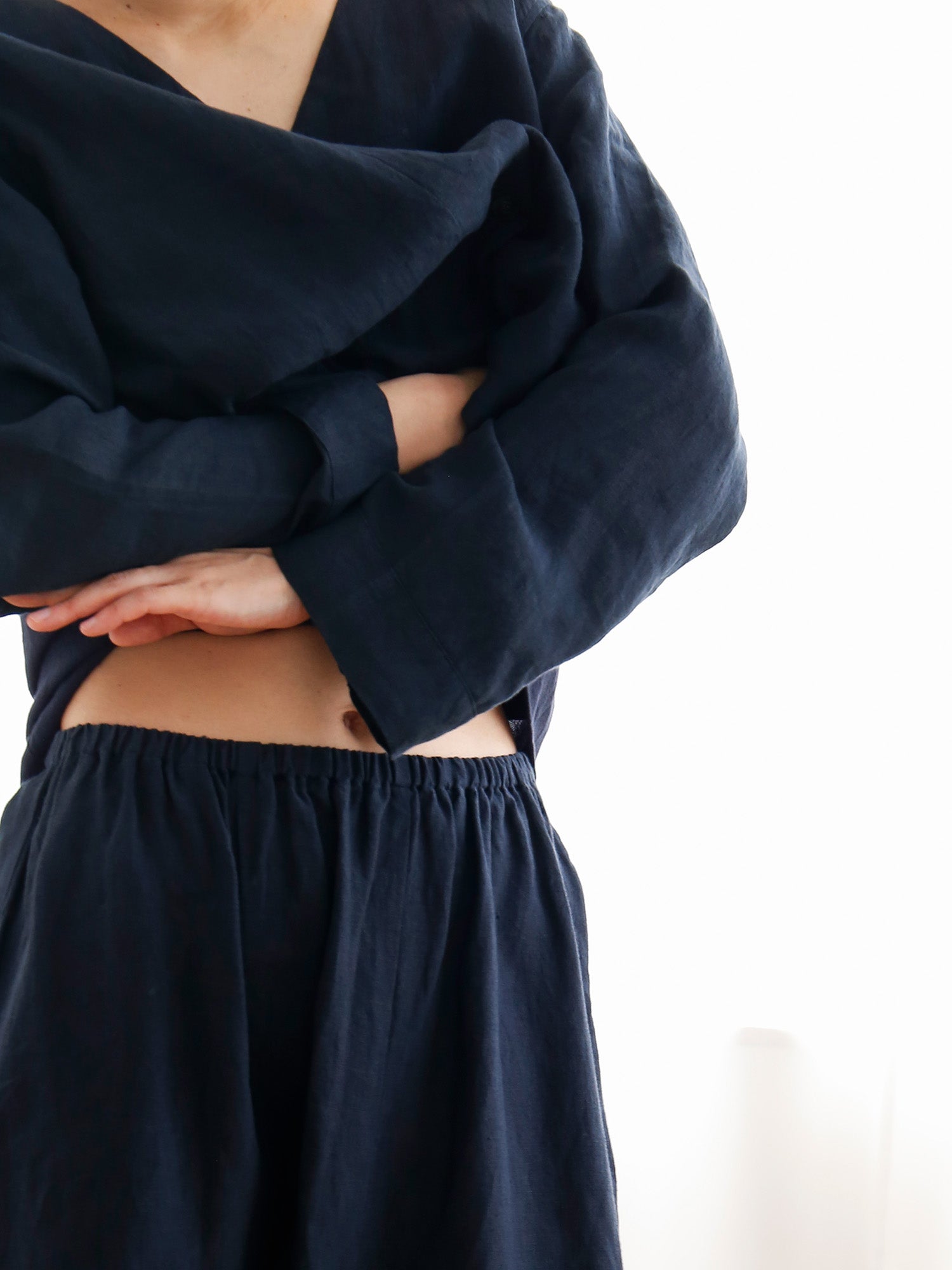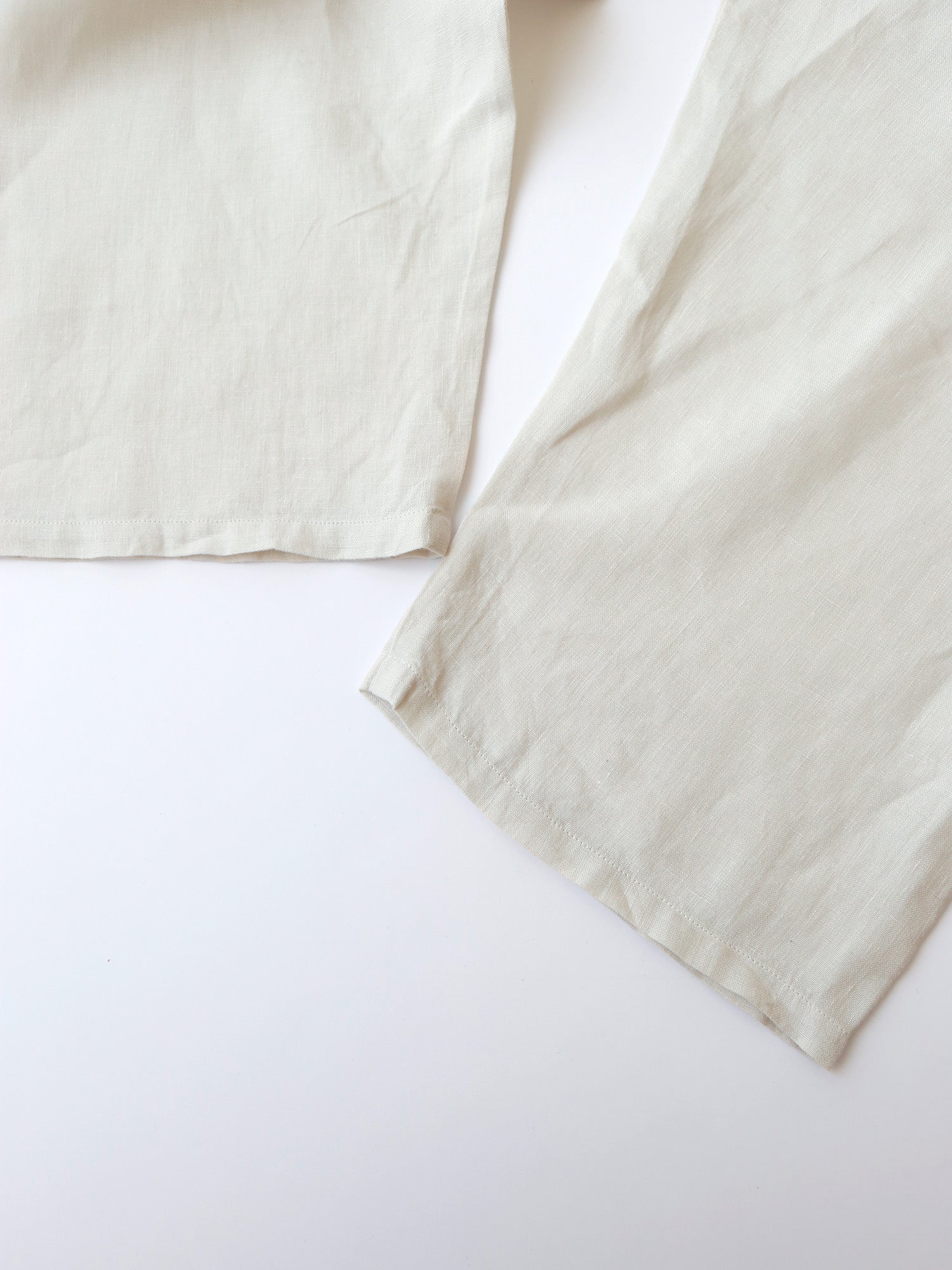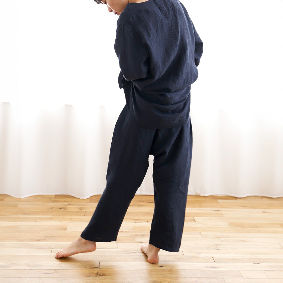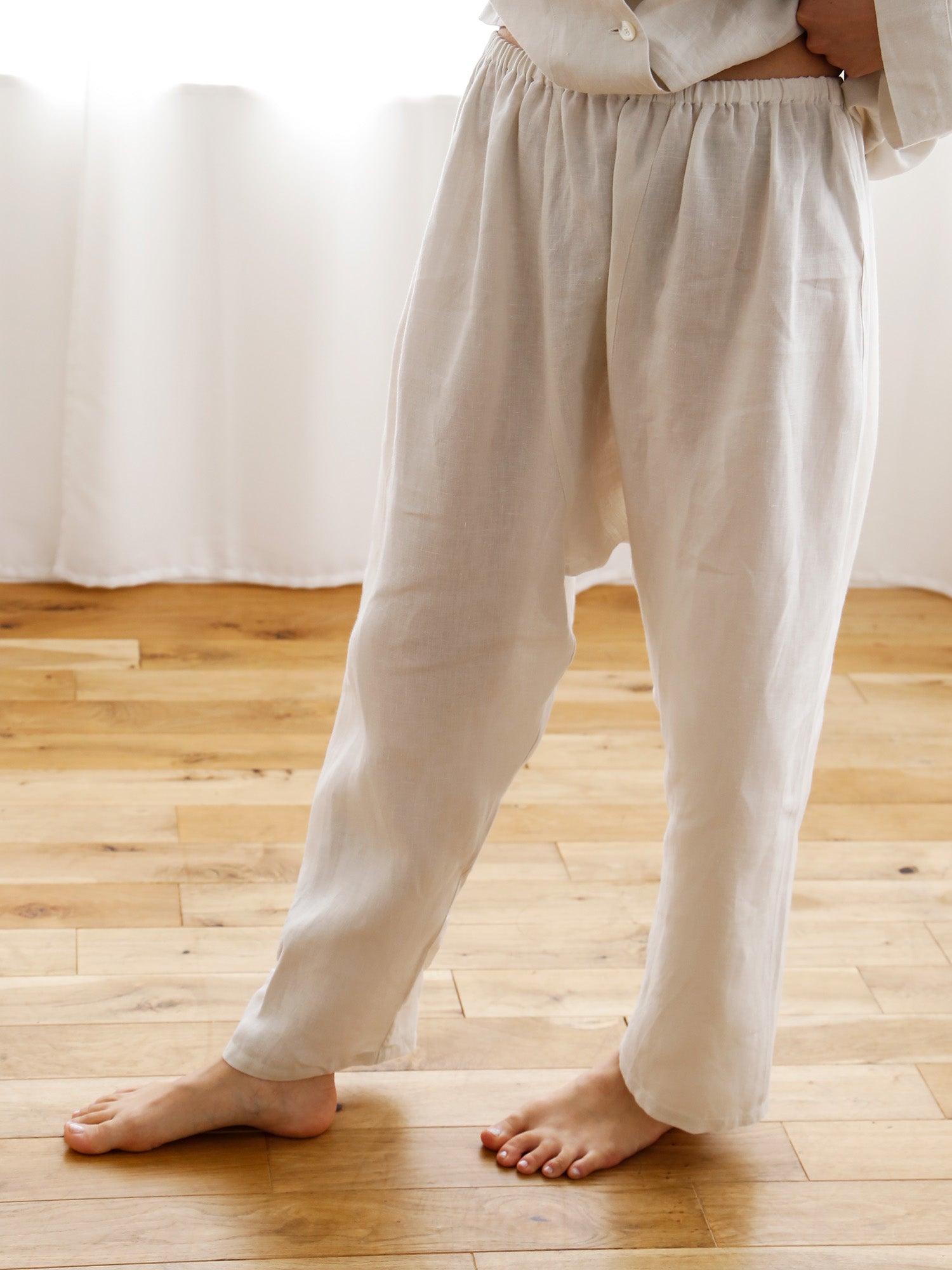 ベルギーリネンのナイトパンツ。リネンならではの清涼感はもちろん、着るほどにやわらかな肌あたりに。