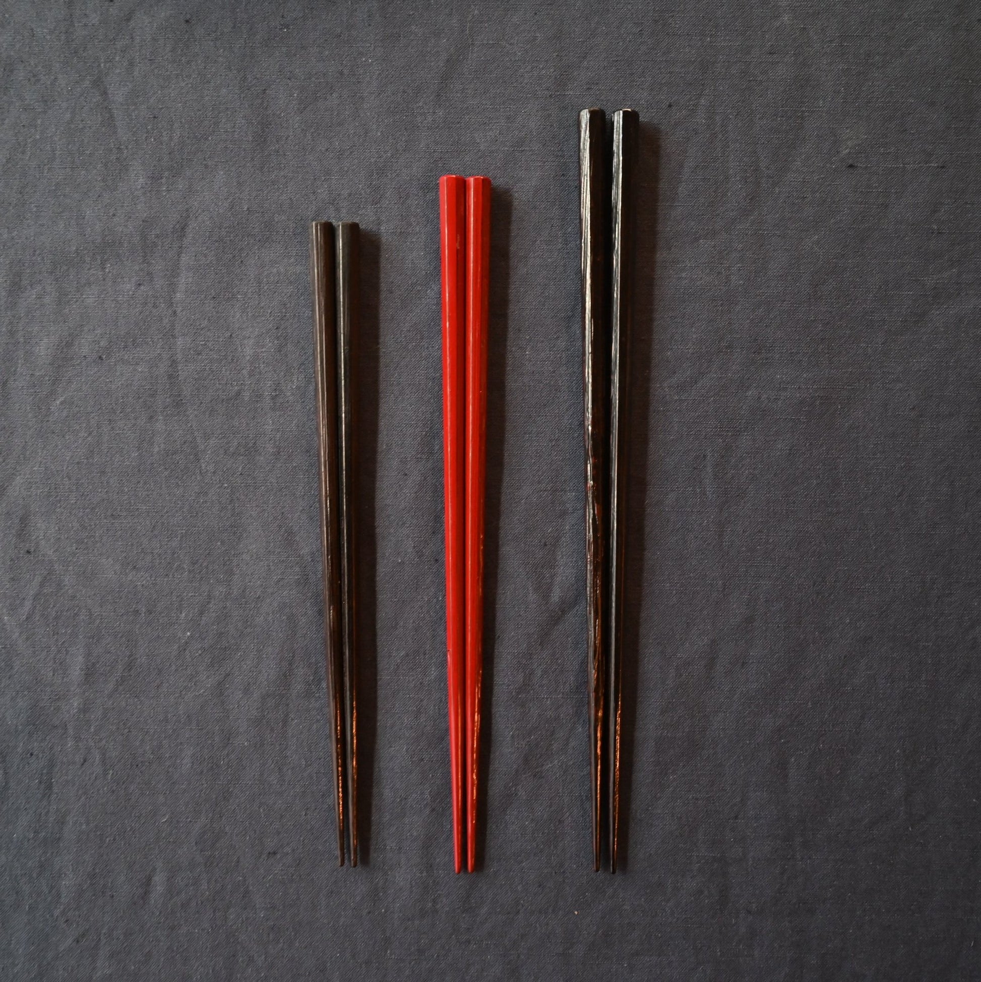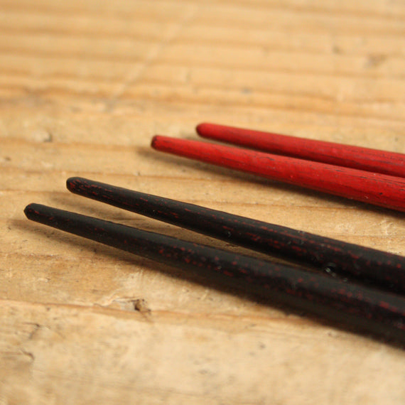 天然木で作られた八角のお箸は、適度な細さで持ちやすくなっています。根来と曙の2色。漆の鮮やかな色が入ると、お料理や器がぐっと引き締まります。お客さま用のお箸としてもお使いください。
