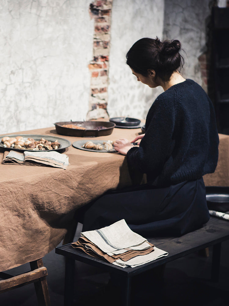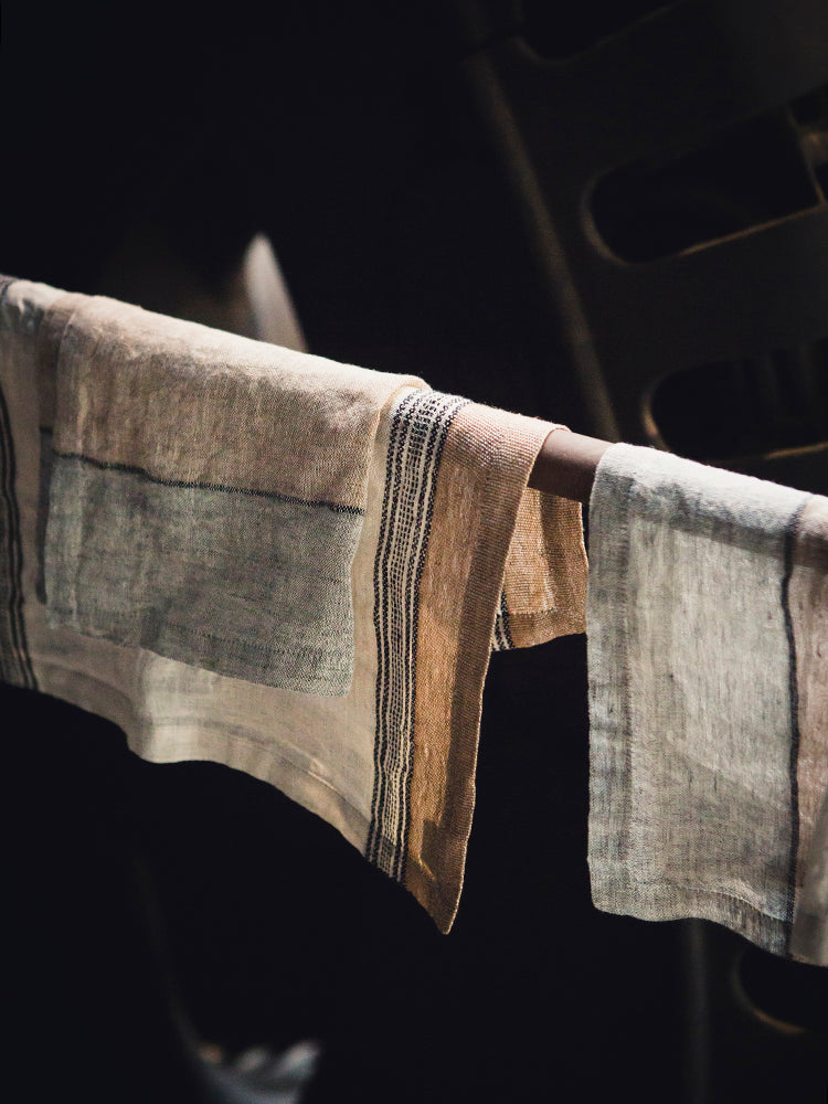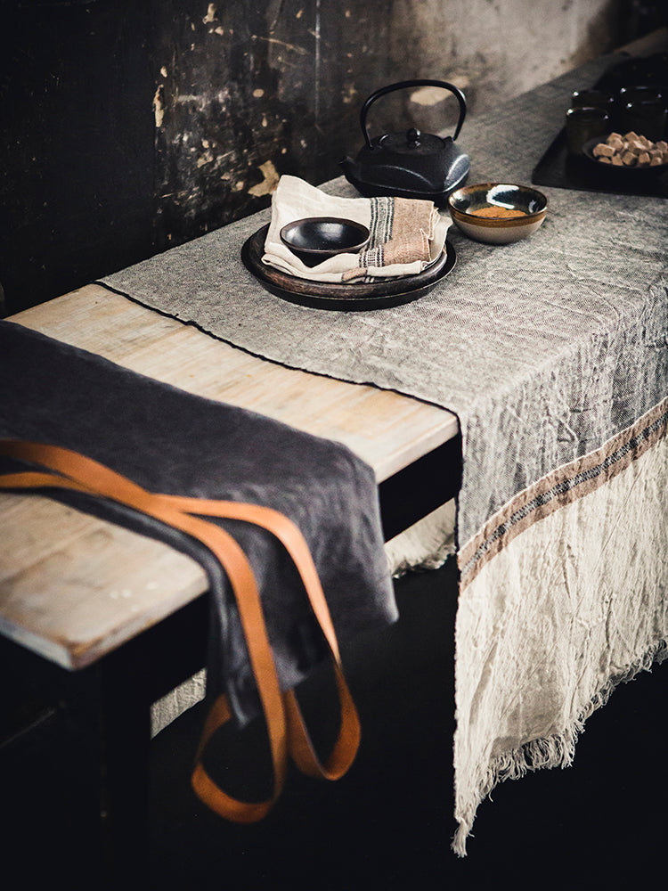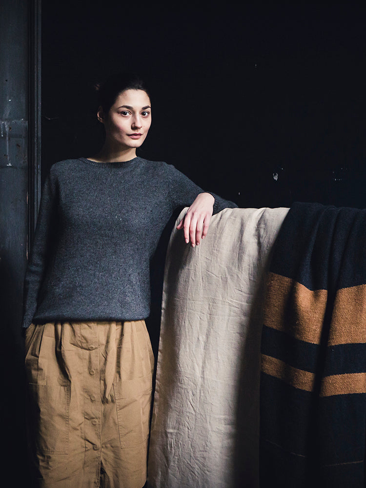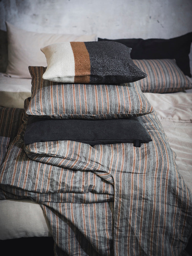 ベルギー最大の製鉄所のコンクリート床、高い天井や大きな窓、そしてリネンやウールの家具などインダストリアルな雰囲気の内装に影響をうけてつくられました。ブラックとブラウンを基調としたマニッシュなテキスタイルは、重厚さとナチュラルさがほどよくミックスされています。