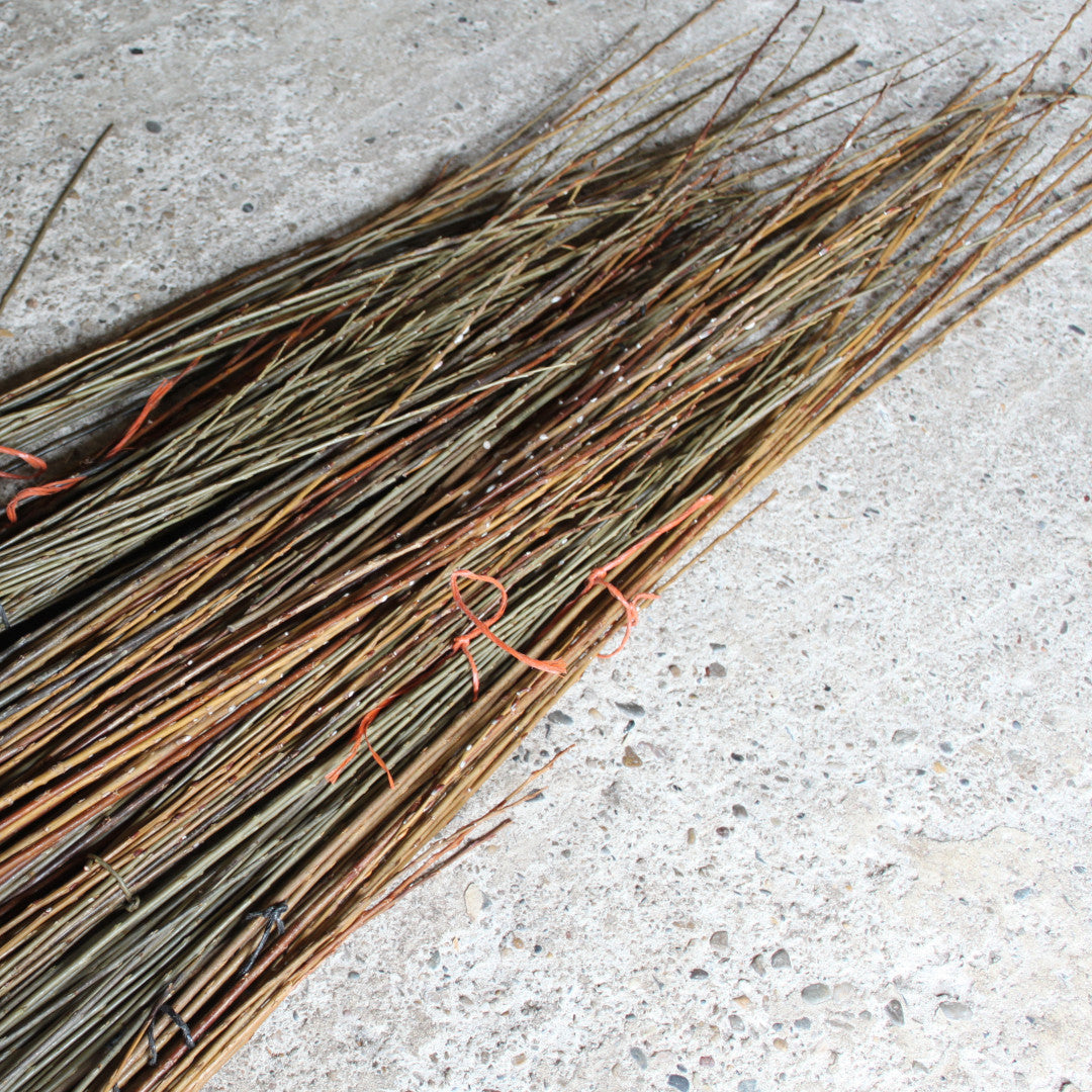 素朴な雰囲気のカゴは樹皮を剥かずに芽も残したまま。着色もしていません。柳そのものの色を活かしてカゴを編んでいます。