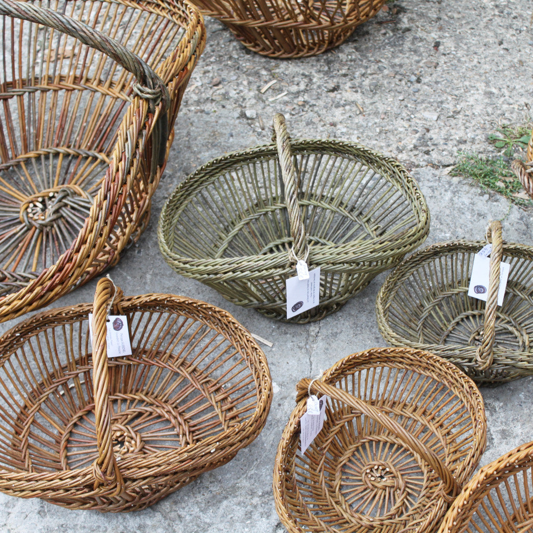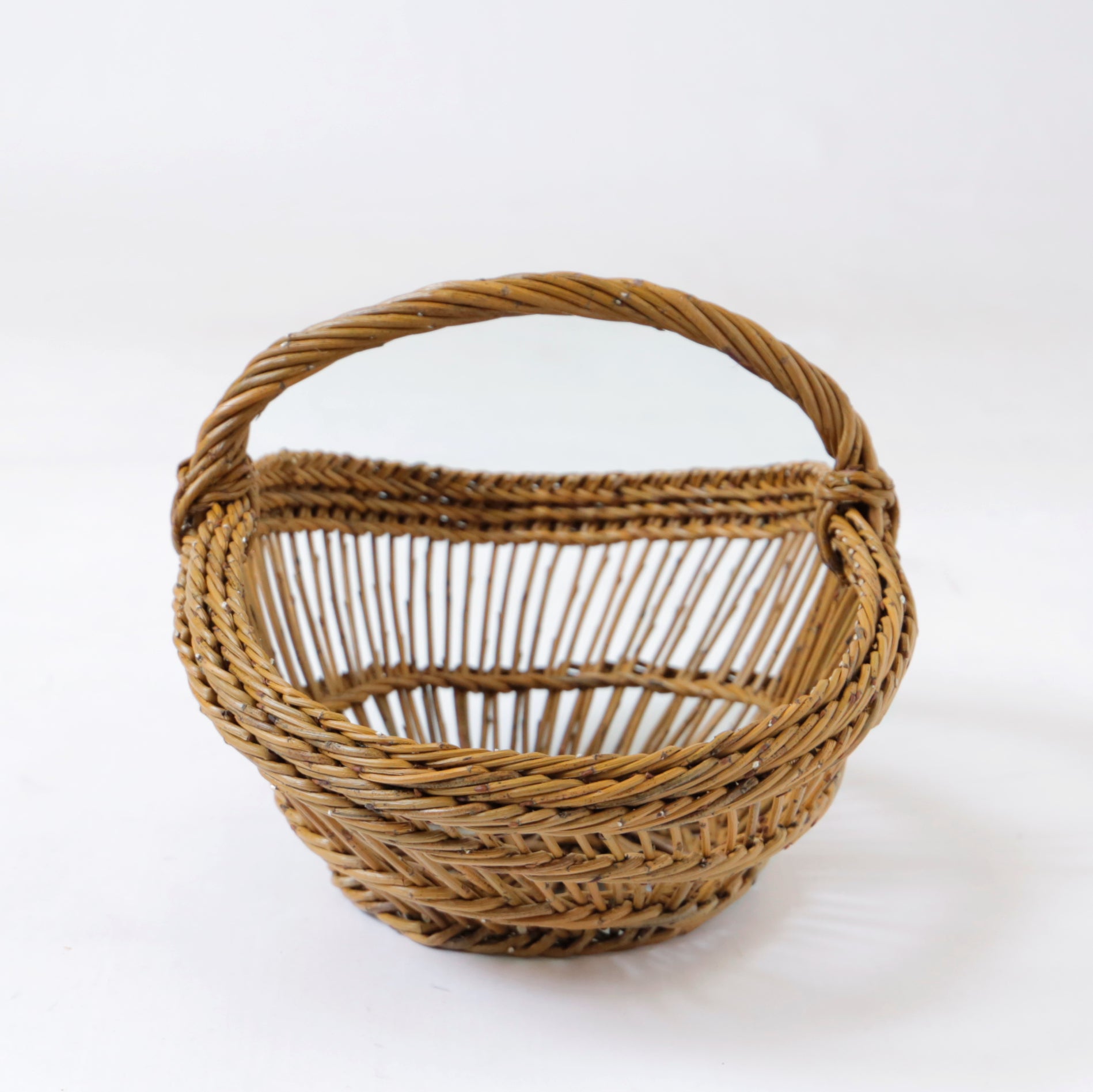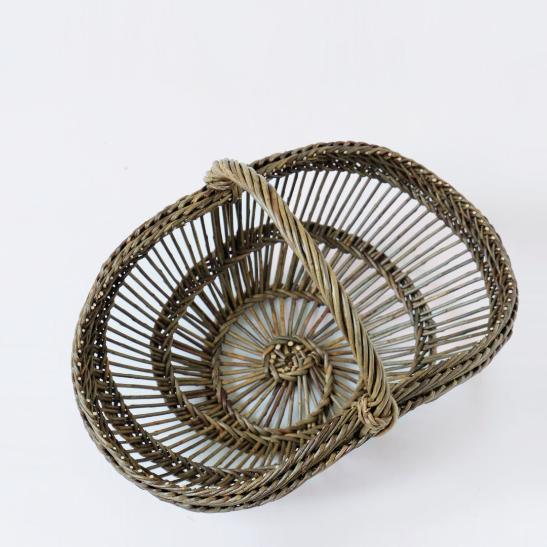 ※柳の樹皮を剥かずに編んだカゴです。丈夫で頑丈ですが、芽に衣類などを引っ掛ける場合がありますので注意してください。
