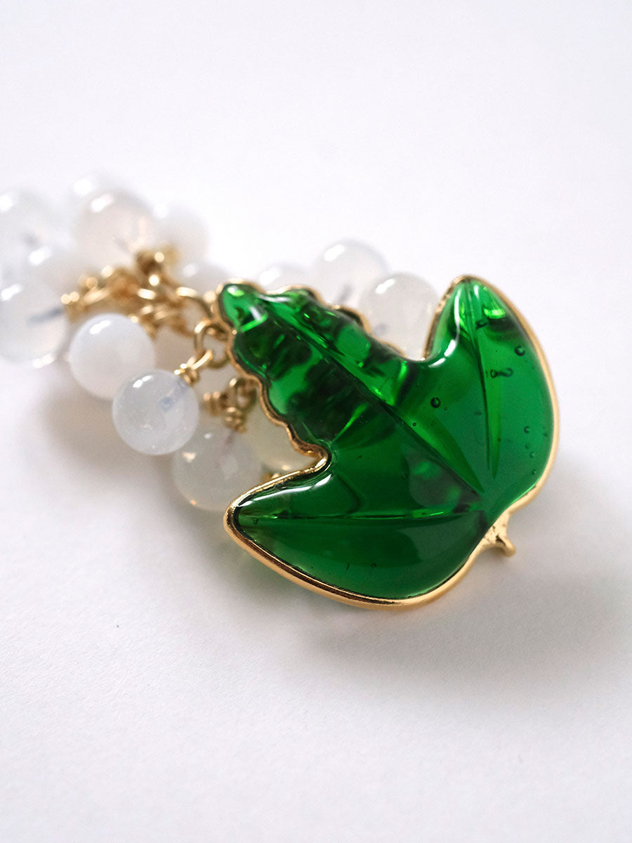 小さな果実ひとつひとつに濃淡があり、ガラス特有のつややかな輝きが魅力的。シャラシャラと揺れる姿も趣があります。