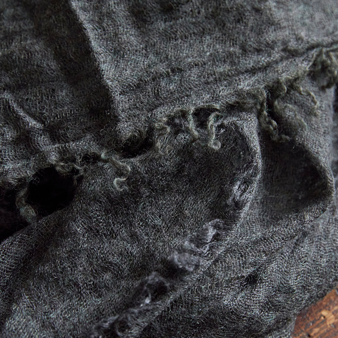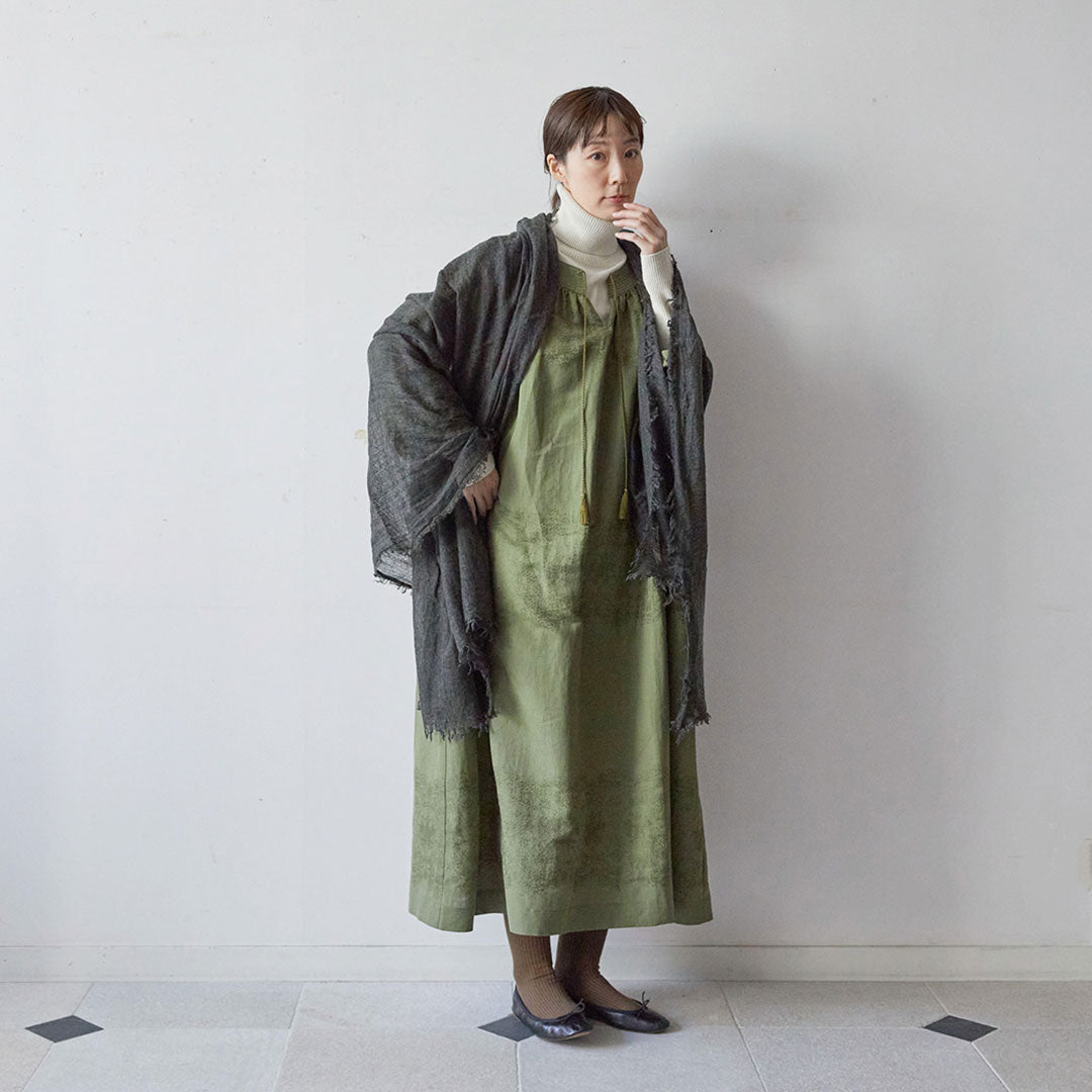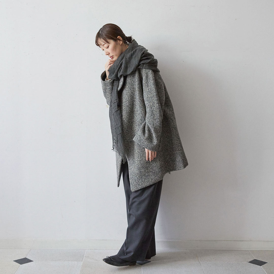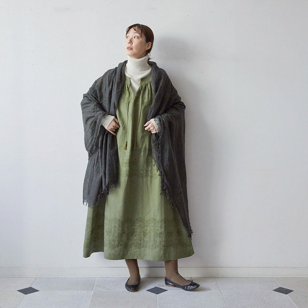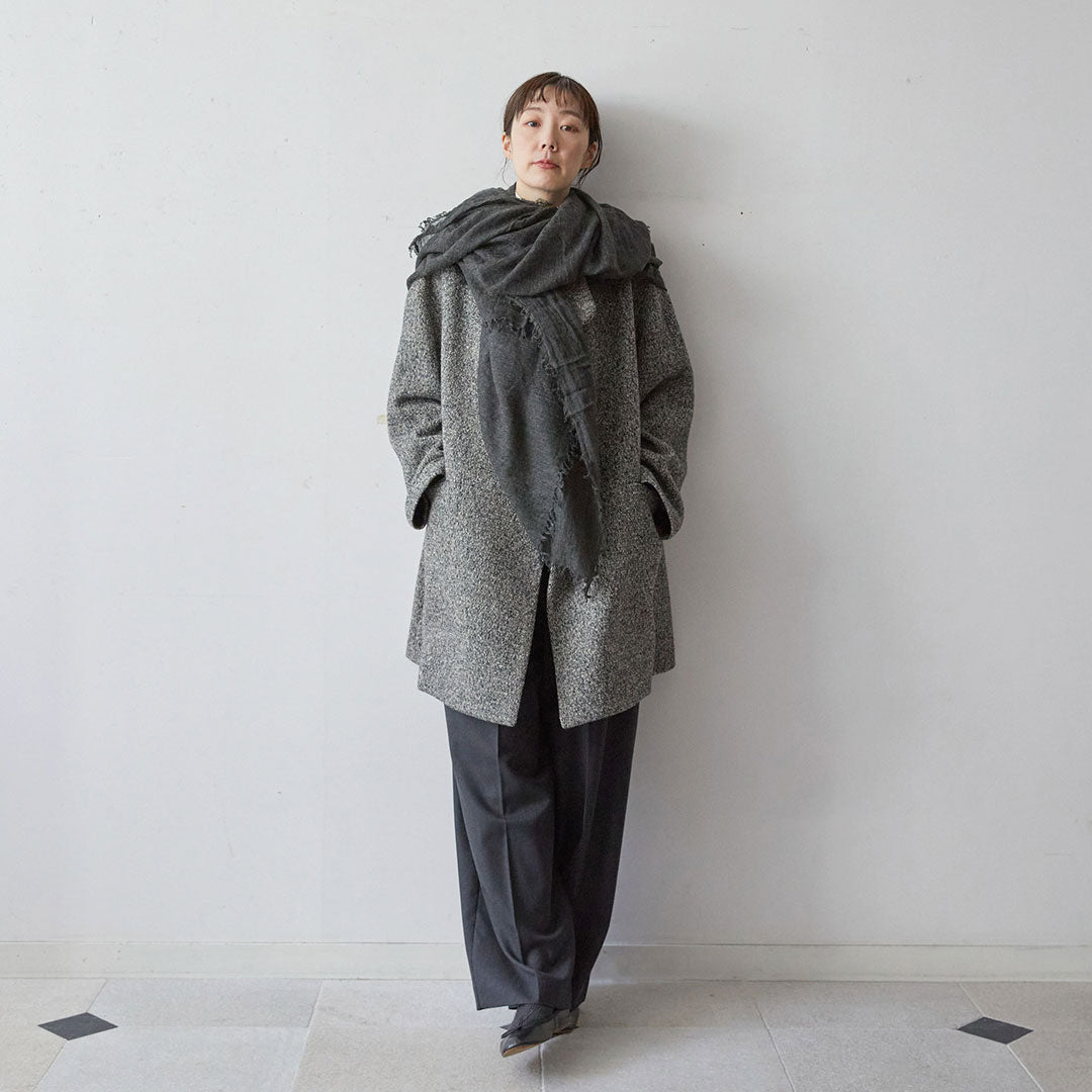 透けるほど薄いカシミヤシルクは、なめらかで優しい肌触り。とても軽いのにたっぷりと空気を含んでいるので、冬の寒さからもきちんと守ってくれる暖かさ。 コート代わりにもなる大判サイズが頼もしい1枚です。
