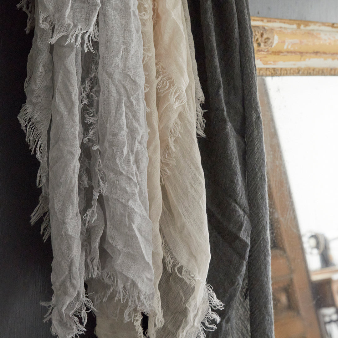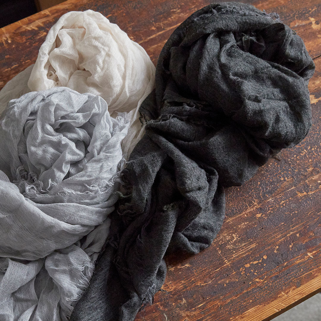 顔から首にかけての敏感な部分にも、やさしい肌ざわりこの上ないストールがあれば、冬だけでなく夏のエアコン対策にと、一年中、手放せなくなることでしょう。