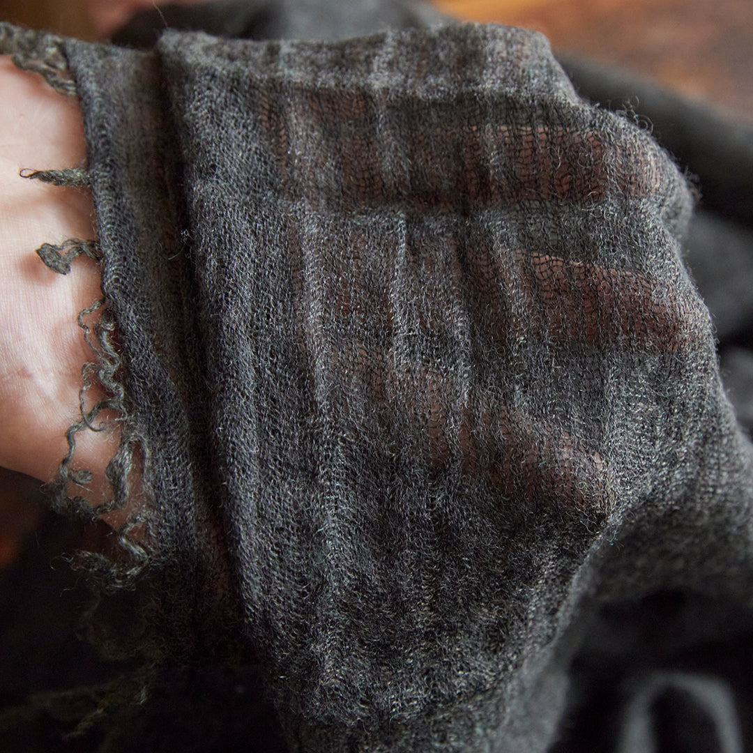 そして、カシミヤのストールといっても糸の配合、厚みや織りによって肌ざわりはさまざま。こちらはカシミヤ90% シルク10%のしっとり、もっちりとした感触。カシミヤだけでは出すことが出来ない、上品な光沢感も合わせ持ちます。