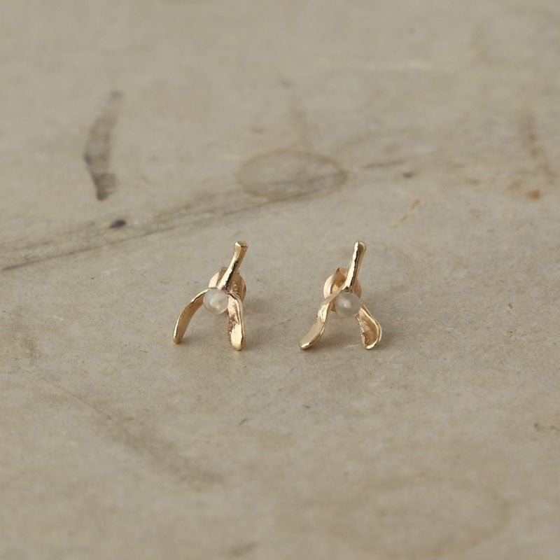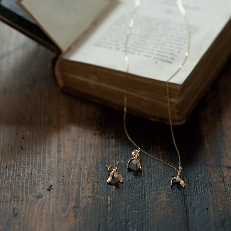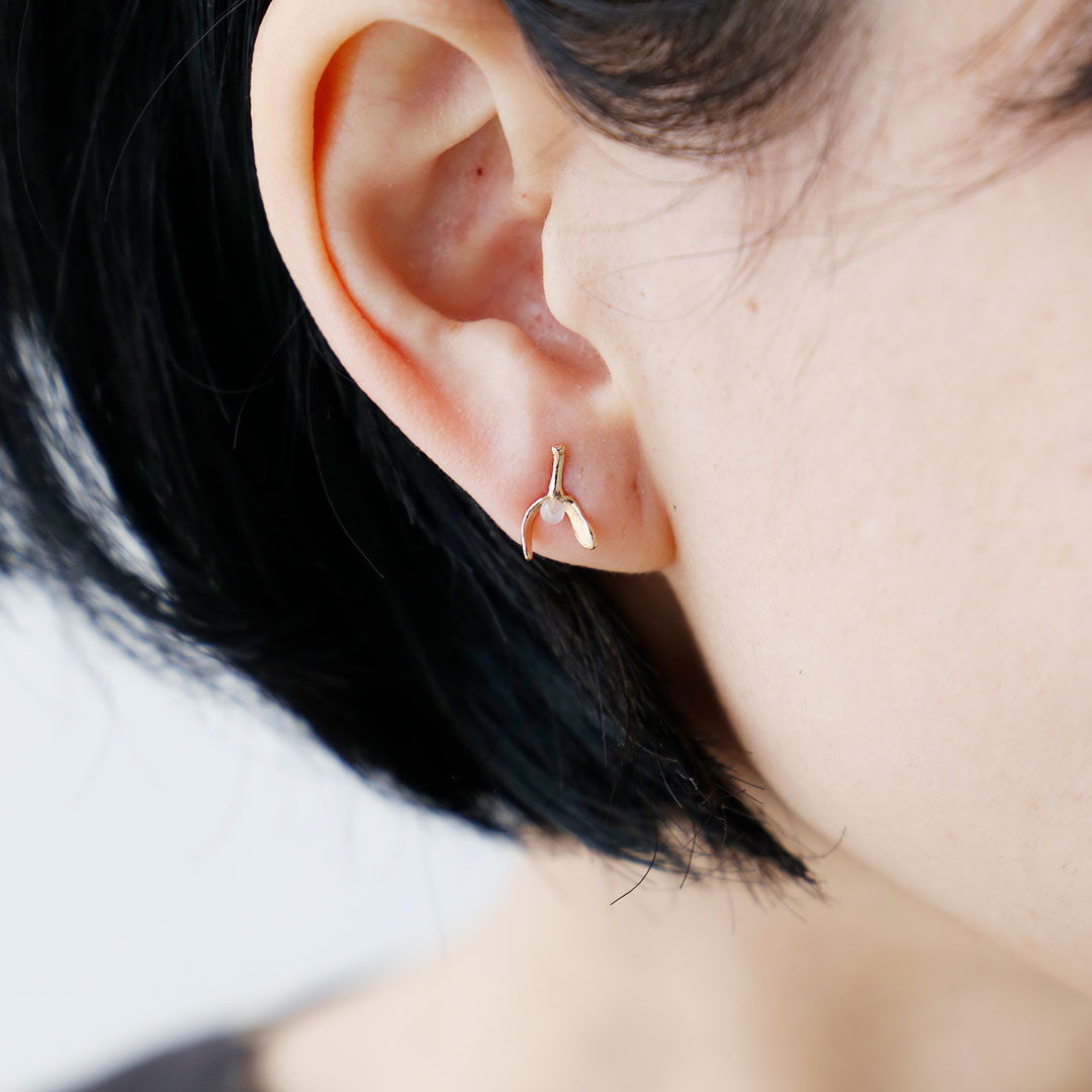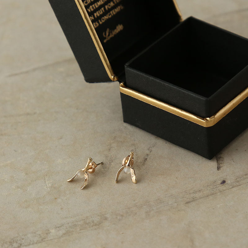 ヤドリギをモチーフにした10金ピアス。