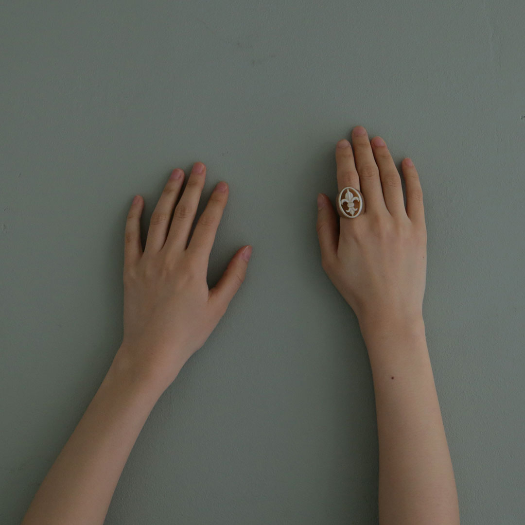 リゼッタのモチーフにもなっている 厳粛で清らかなイメージのゆりの紋章を一点一点手彫りで仕上げた水牛の角のリング。