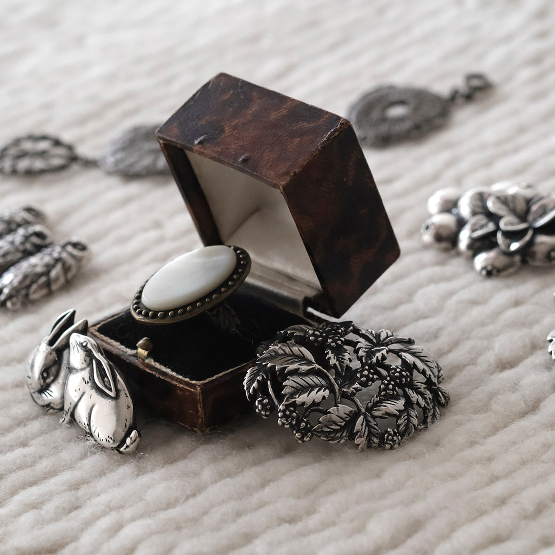 冬の装いに合うブローチやアクセサリーをご用意しました。大ぶりのリングやブレスレット、存在感のあるブローチは、普段使いにはもちろん、お食事やパーティーなど様々着こなしに華を添えてくれます。冬のおしゃれのアクセントや大切な方へのギフトにも。お気に入りの一つをみつけていただけますように。