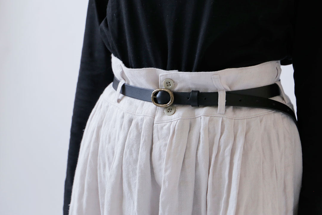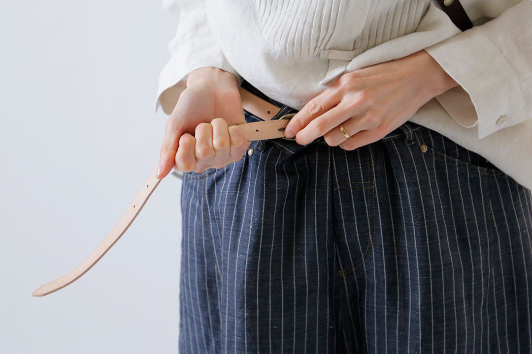 本革のベルト「サンチュール・クイール2」は永くつくり続けているリゼッタの定番アイテム。シンプルだけどこだわりが詰まっています。