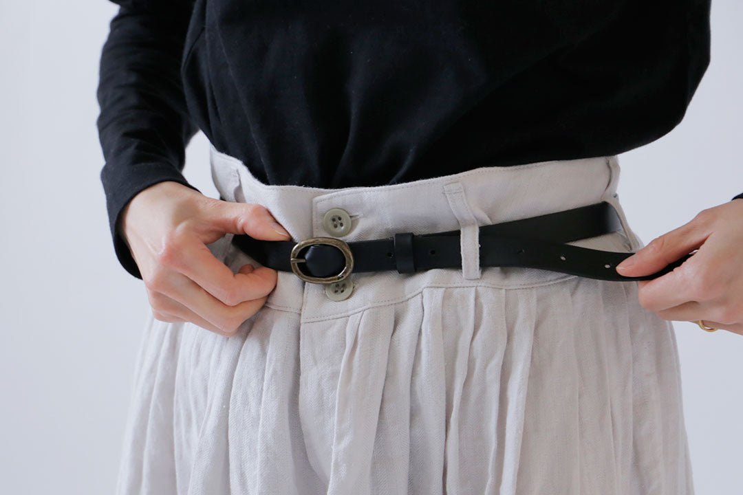 カジュアルな装いにもこのベルトを合わせるだけで雰囲気が大人っぽくなります。▲ノアール トップス:フリッツ2 パンツ:リリト 靴下:ショーセット9 (モデル身長166cm)