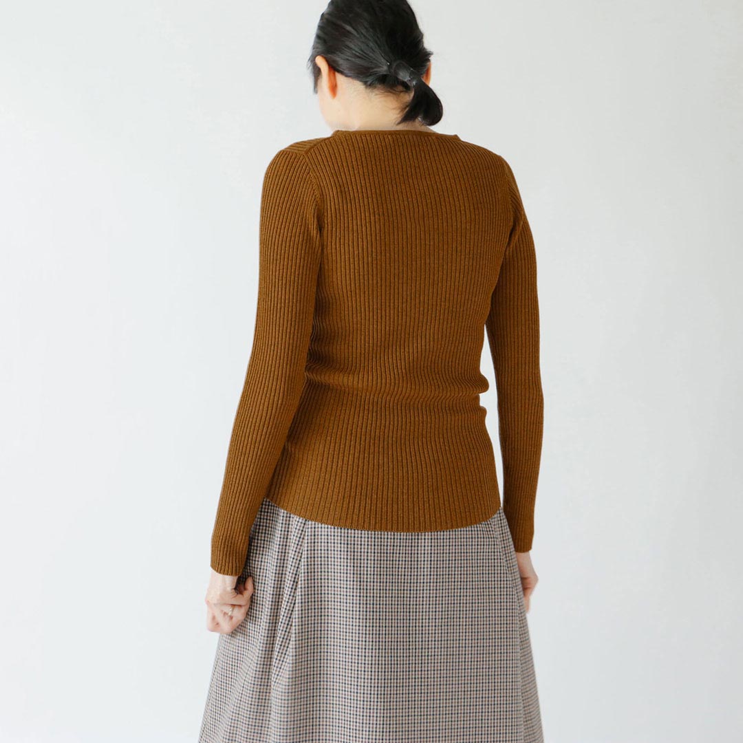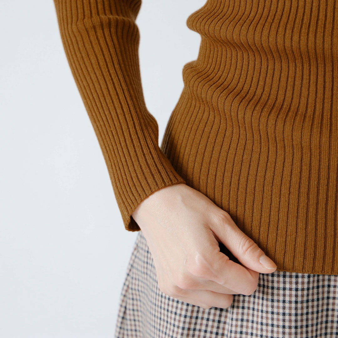 ジャケットやコートを重ねてもひびかず、秋冬コーディネートの基本になる1着。