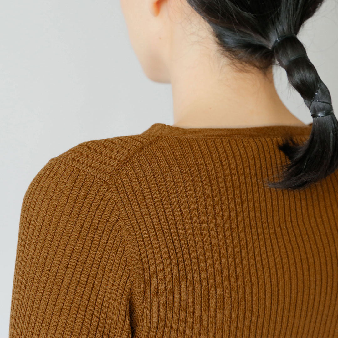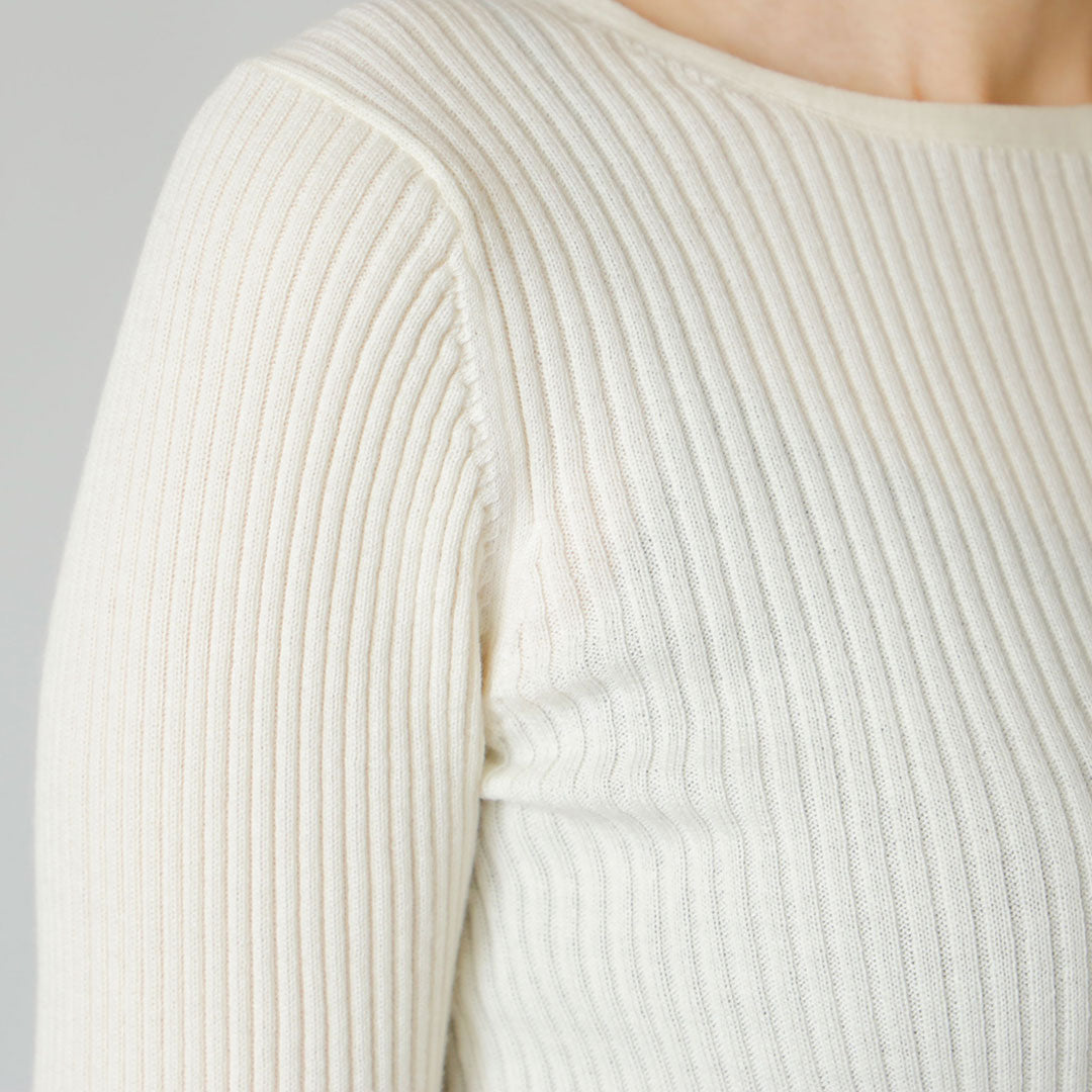ウール100%のイタリア糸を使用。極細い原毛を使った糸で編んでいるため、チクチクせずさらっとした肌ざわりです。