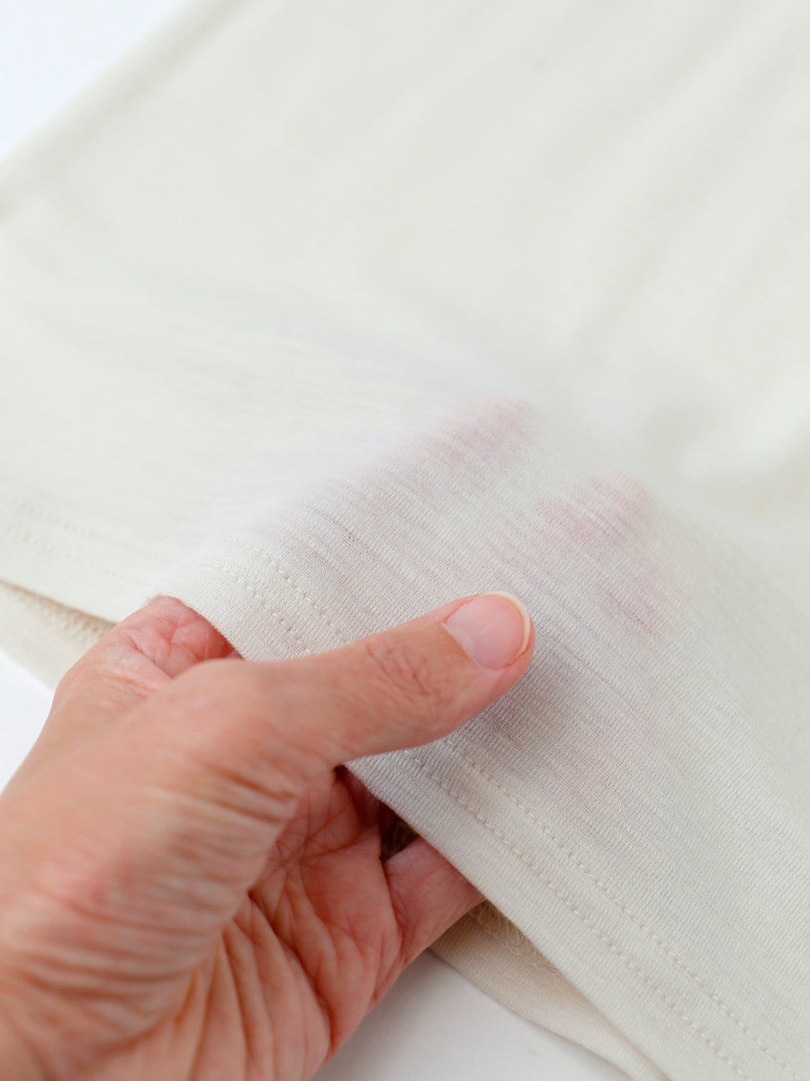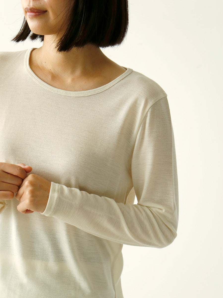 ウールは、寒いときには暖かく保温、汗をかいたときには汗をすばやく吸収・発散してくれるという天然の高機能素材。シャリ感があってさらりとした肌触り。冬だけでなく夏でも快適に着ることができます。