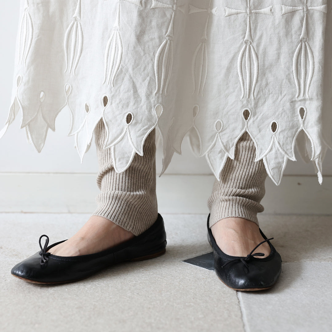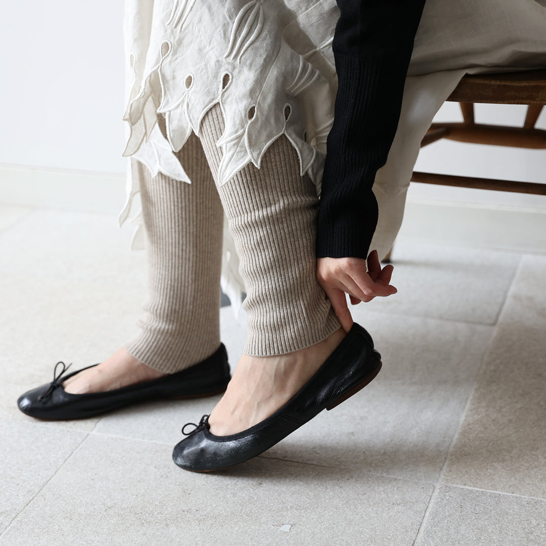 リゼッタ冬の定番・ウールスパッツ「アコーディオン・トリコ」。細番手の糸を使うことで、着膨れせず程よくフィットして、毎日履いていたい心地よさ。もちろんあたたかさも折り紙つきです。腹巻き、スパッツ、レッグウォーマーの3役をこなすので、一度履けば、手放せない冬の必需品。