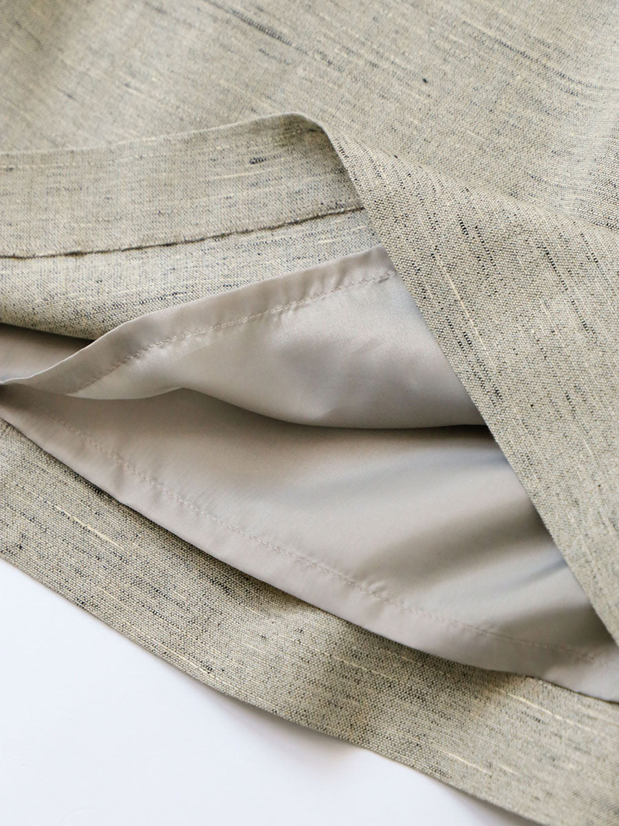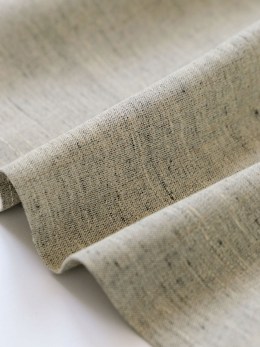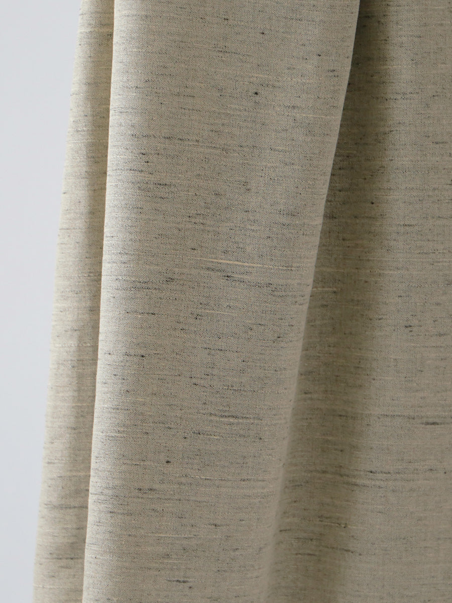 リネンレーヨンという異素材の織りなす生地は、緯糸にリネンレーヨンのスラブ糸を使い、生地の濃淡とテクスチャーを生み出しています。
