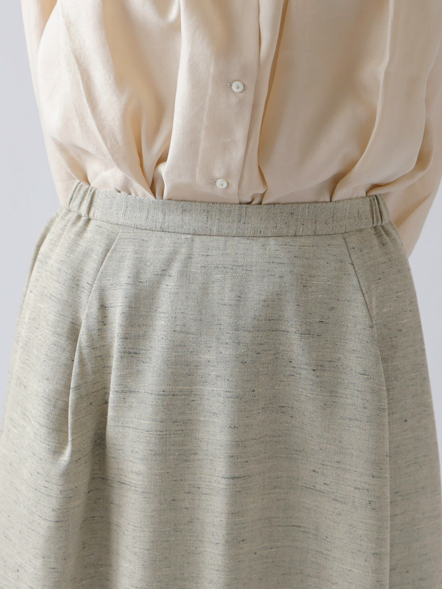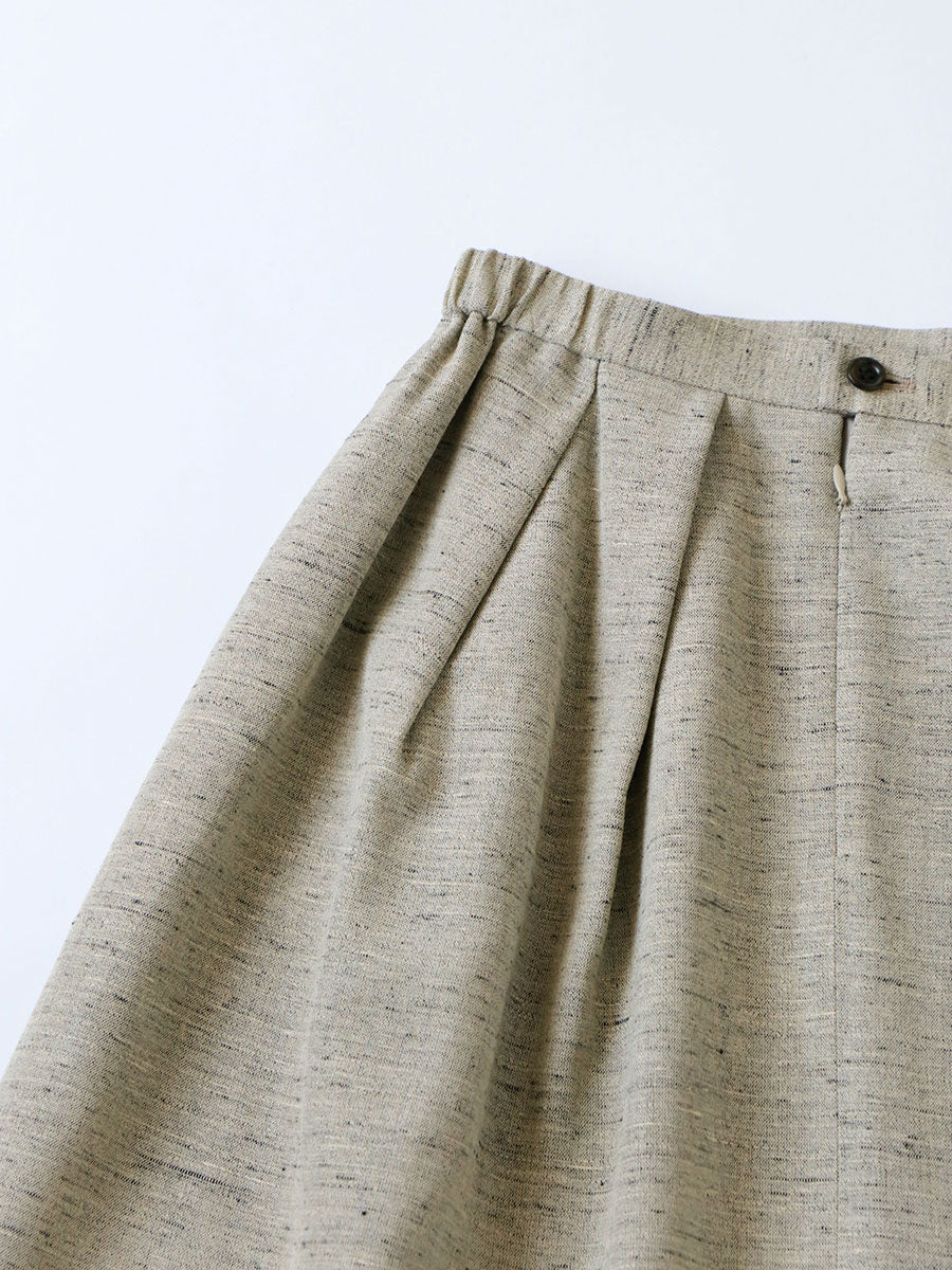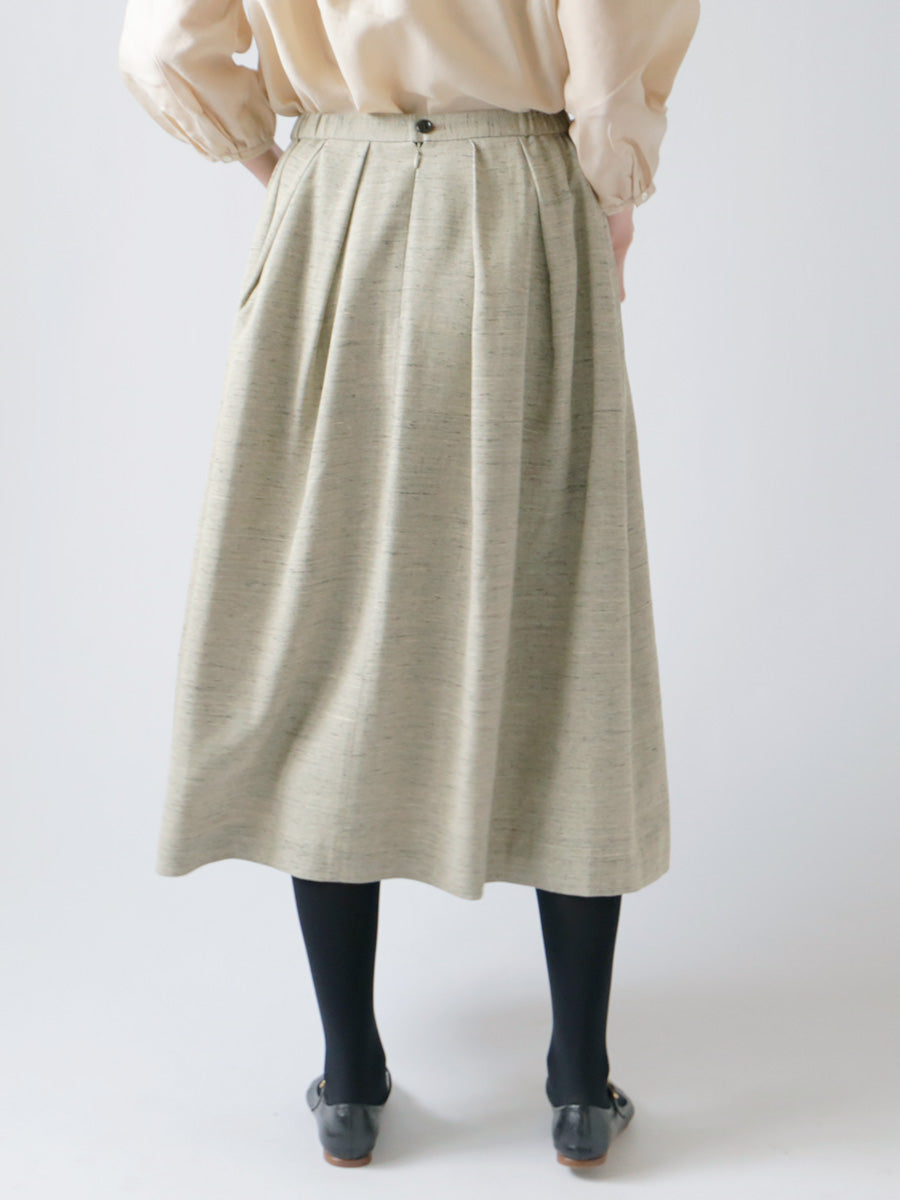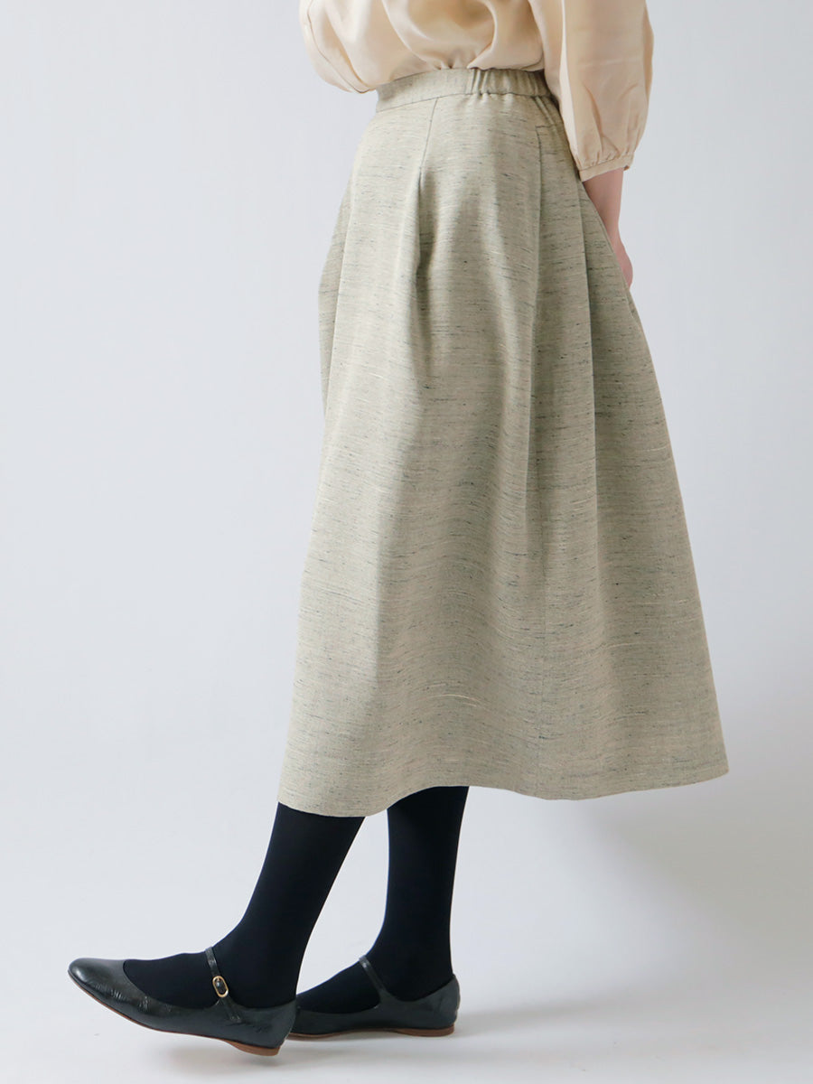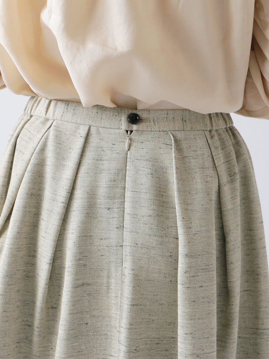 ウエストの両脇にだけ平ゴムをいれ、 見た目の美しさだけでなく履き心地にもこだわったタックスカート。