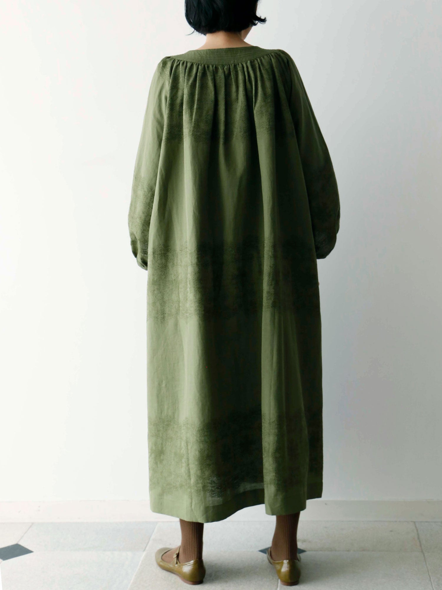 生地は薄手のリネンコットンで、ハリがありながらも、やわらかな肌触りです。そのままではもちろん、秋冬は中にタートルネックを合わせるスタイルもおすすめです。