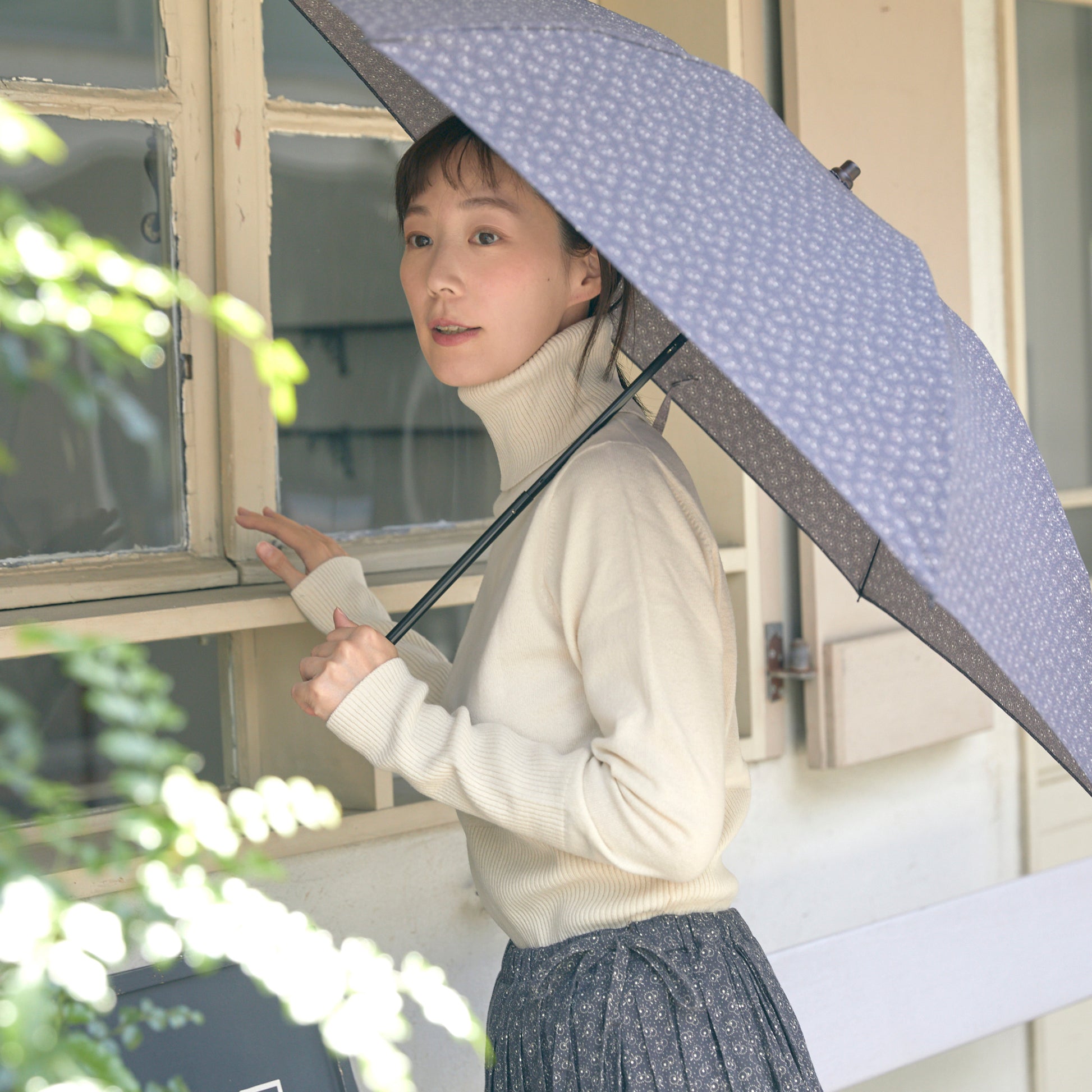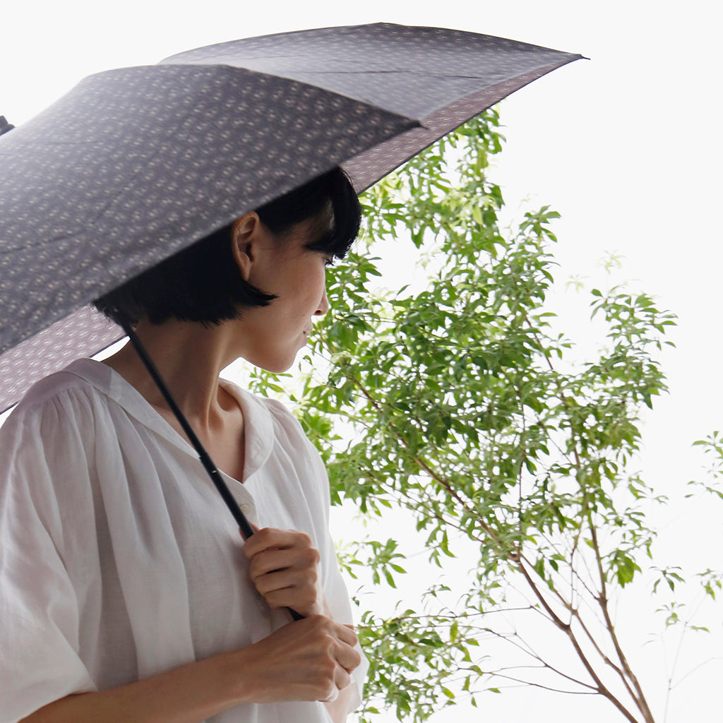 生地に撥水加工とUV加工を施した折りたたみ式の晴雨兼用傘で、晴れの日も雨の日も重宝します。