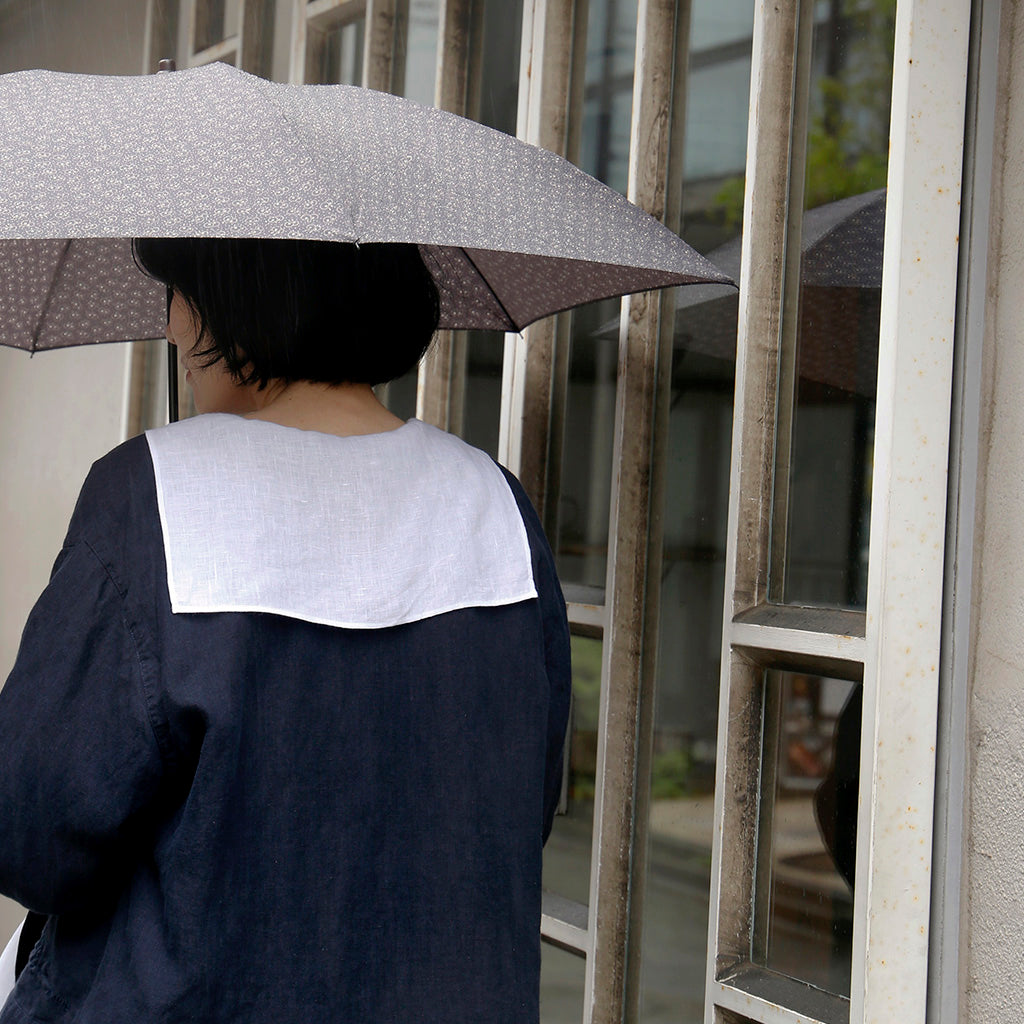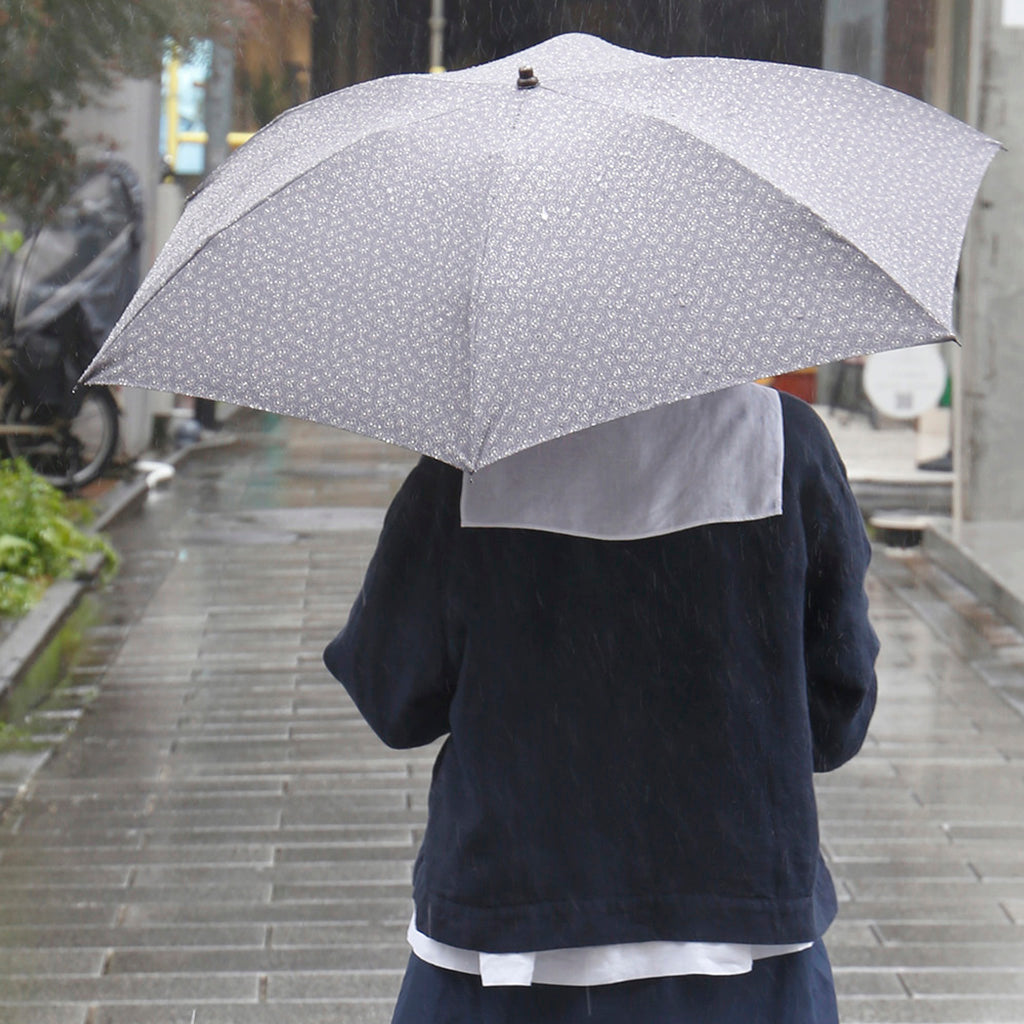・晴雨兼用傘となりますので、小雨以外や、長時間の雨でのご使用はお控えください。雨水が浸みることがあります。