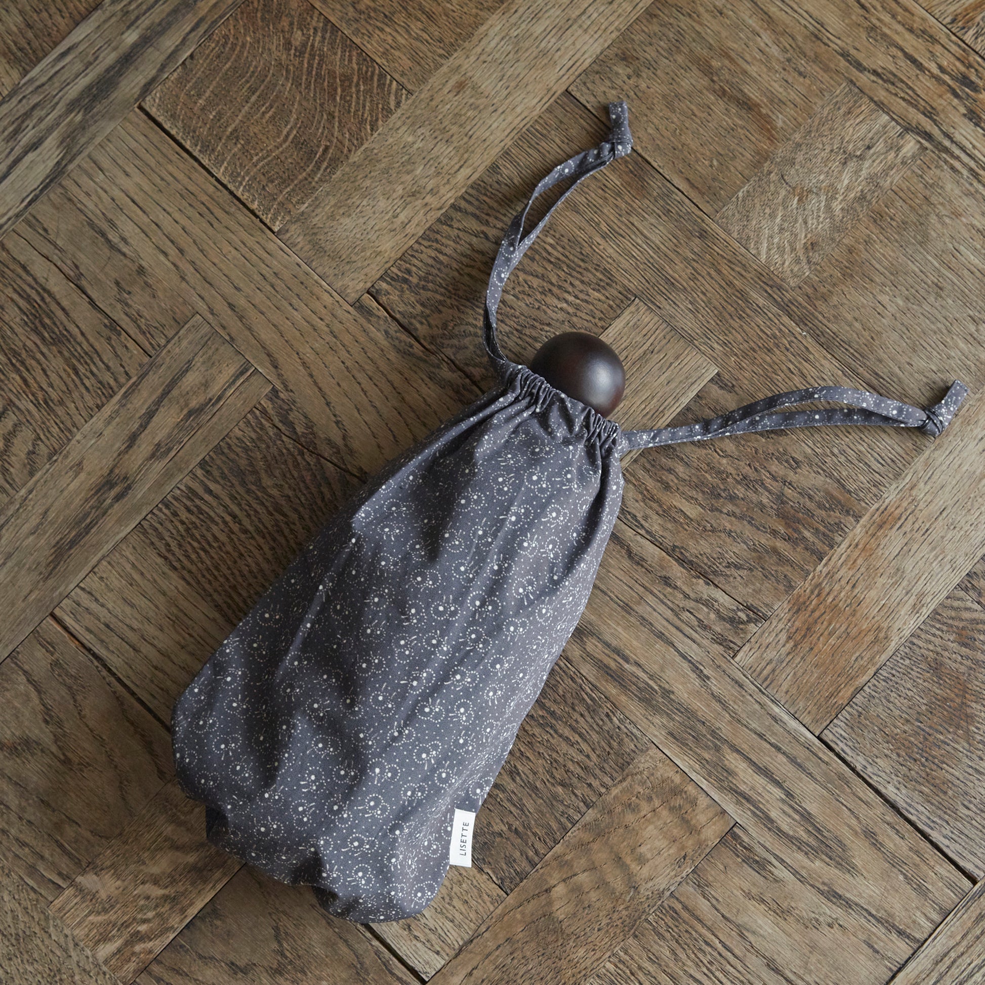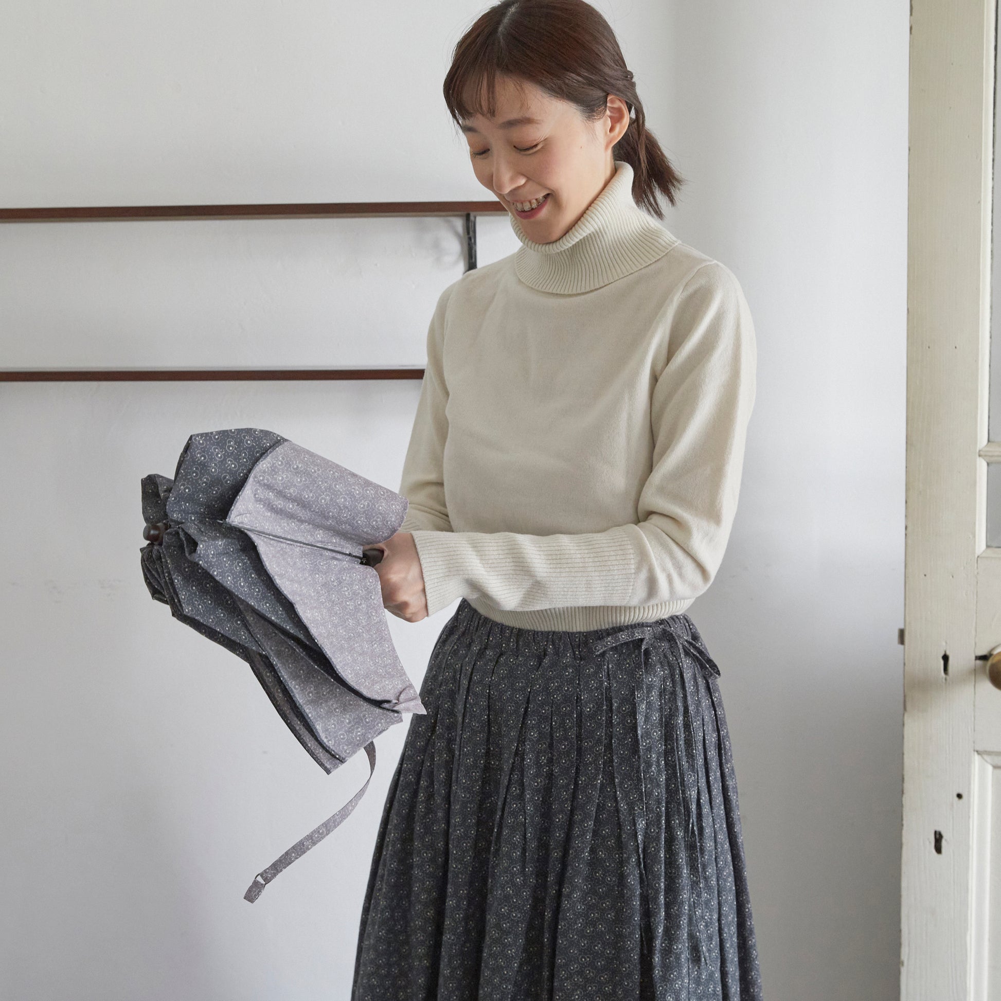 撥水加工を施した巾着型の傘袋付き。大きめの傘袋は雨に塗れた傘もすっぽり入り、持ち歩きにも便利です。