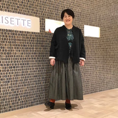 同じ素材で作ったスカート「ピエール」(完売)の後ろにも大きなポケットが付いていて、フランソワと共通のデザイン。セットアップで着るとポケットの位置がバランスよく見えます。