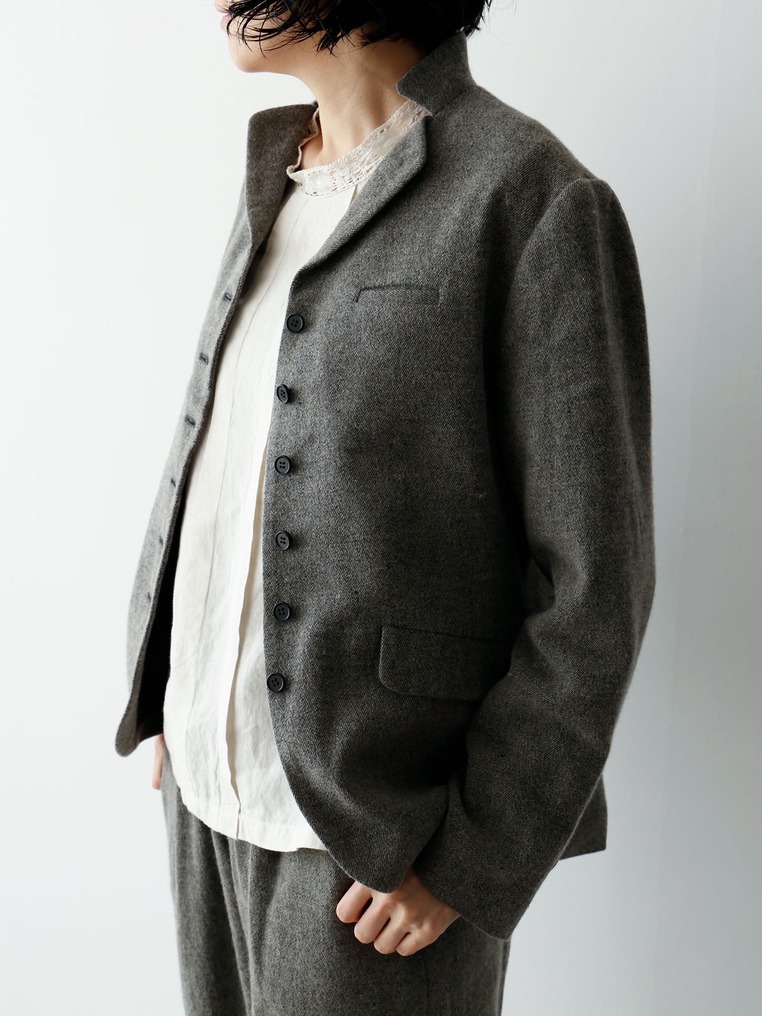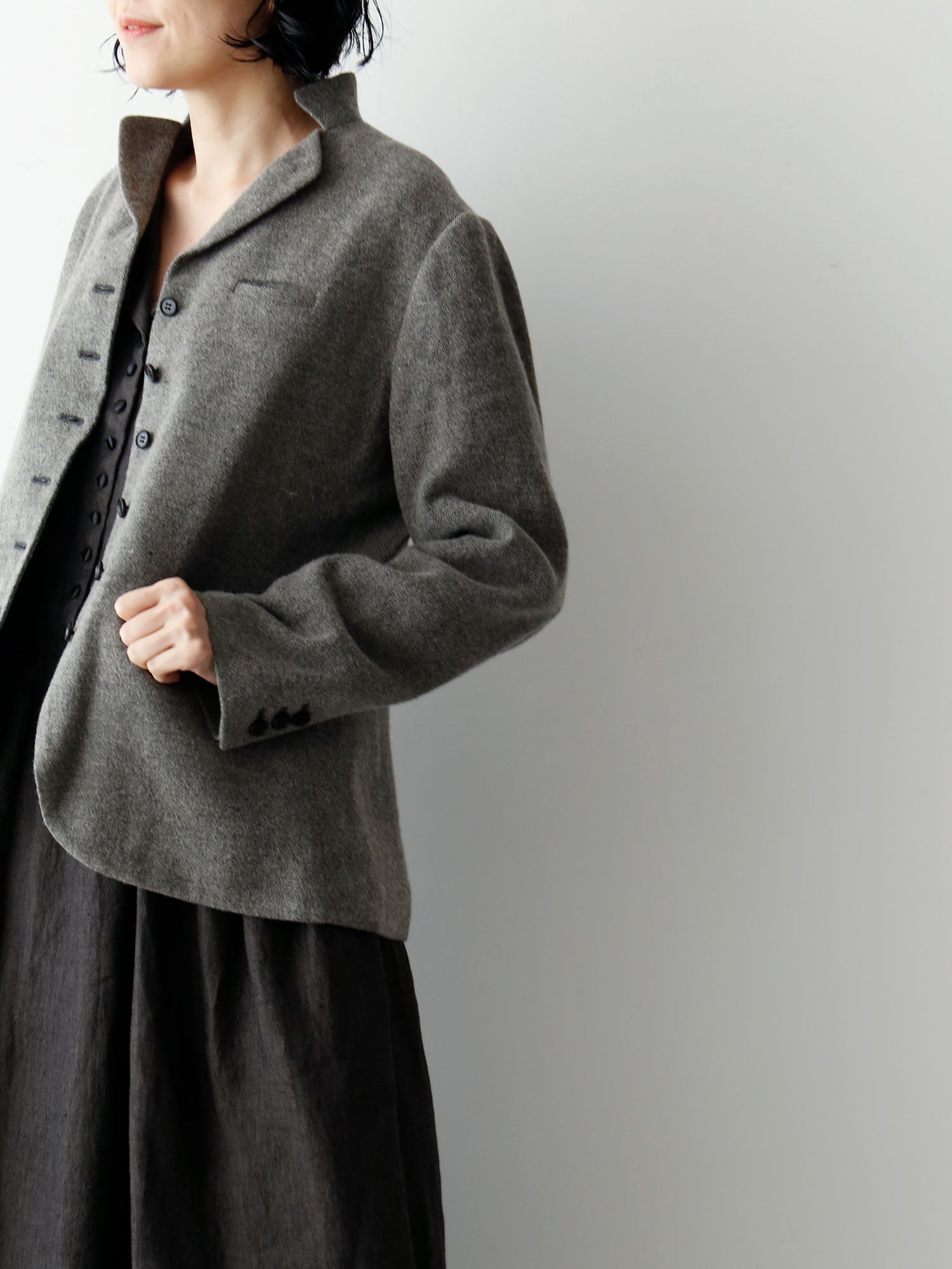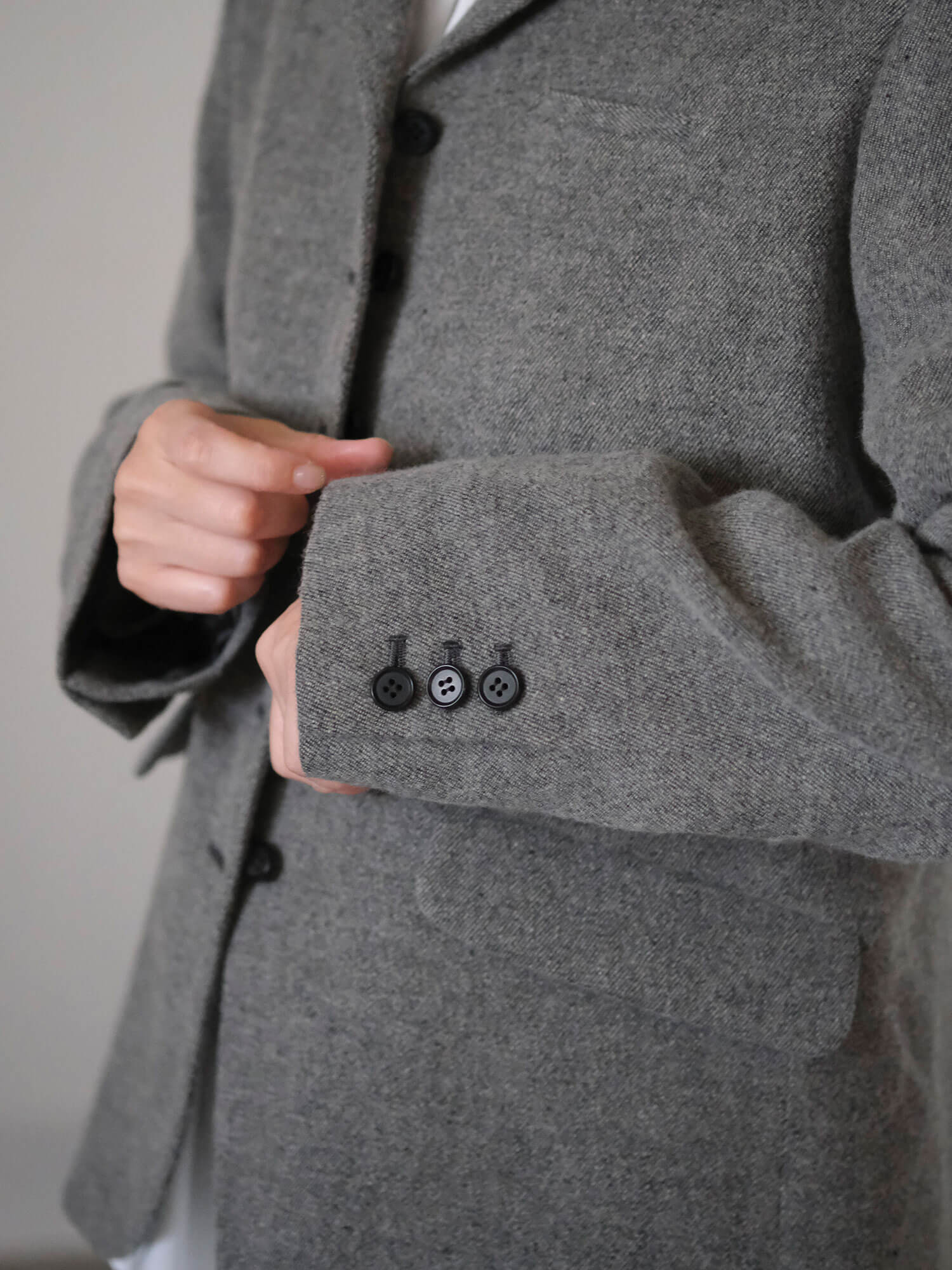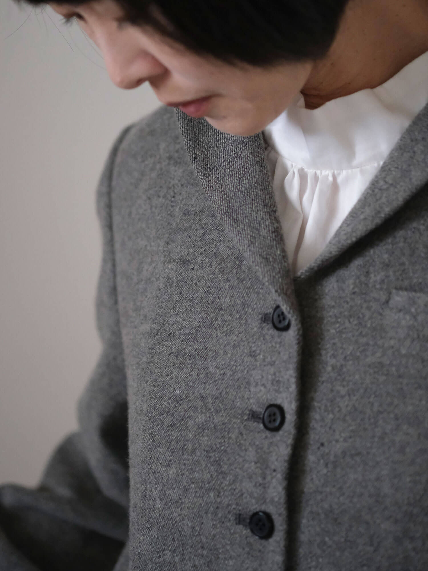 ふっくらとした質感とやわらかな肌触りが心地よい、ウールリネンの生地で仕立てたジャケット。