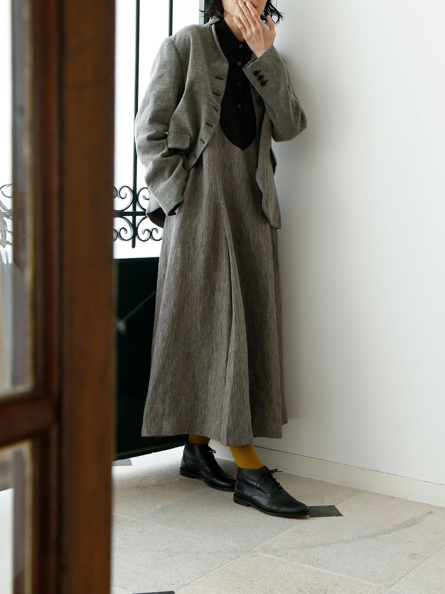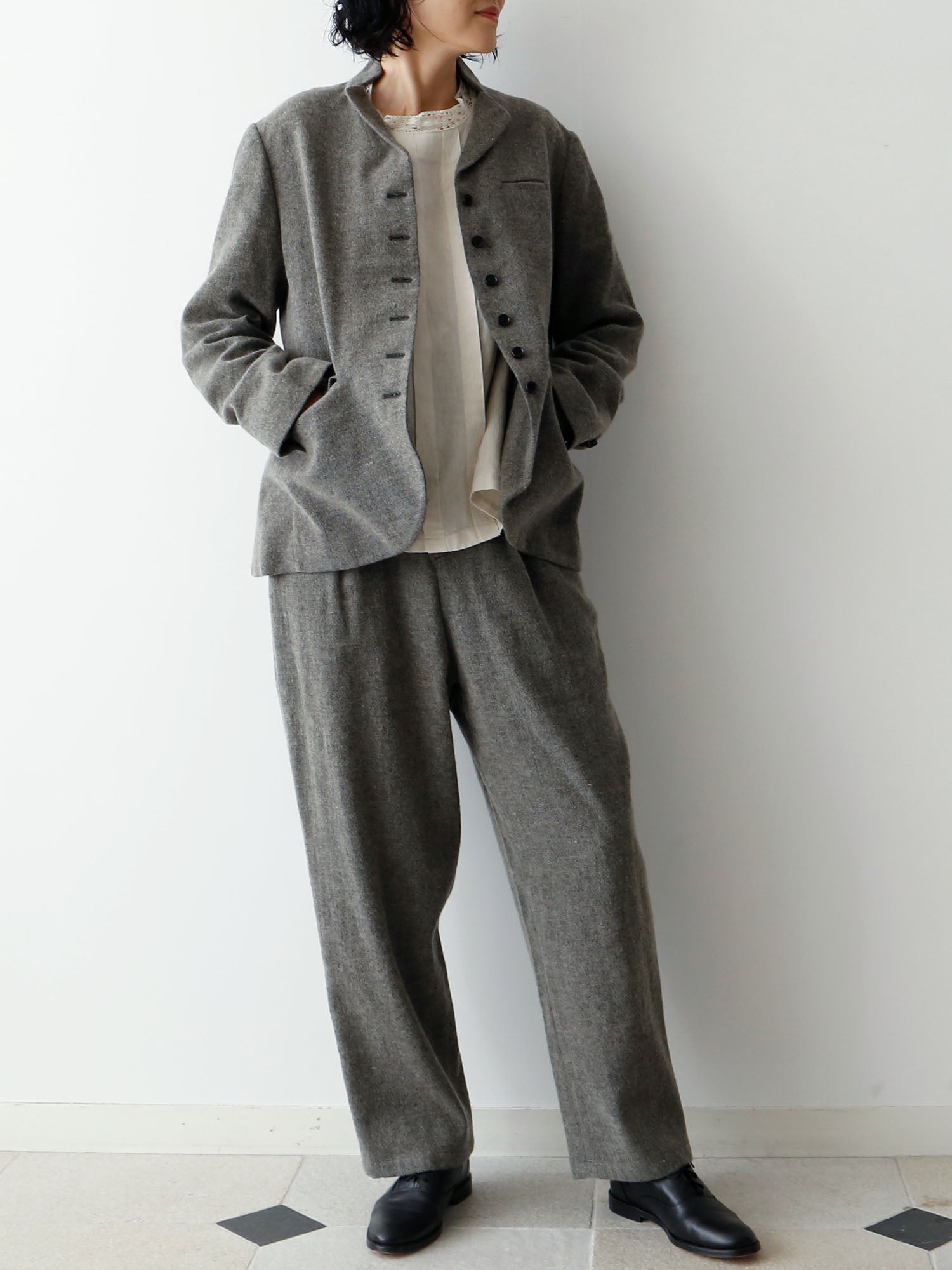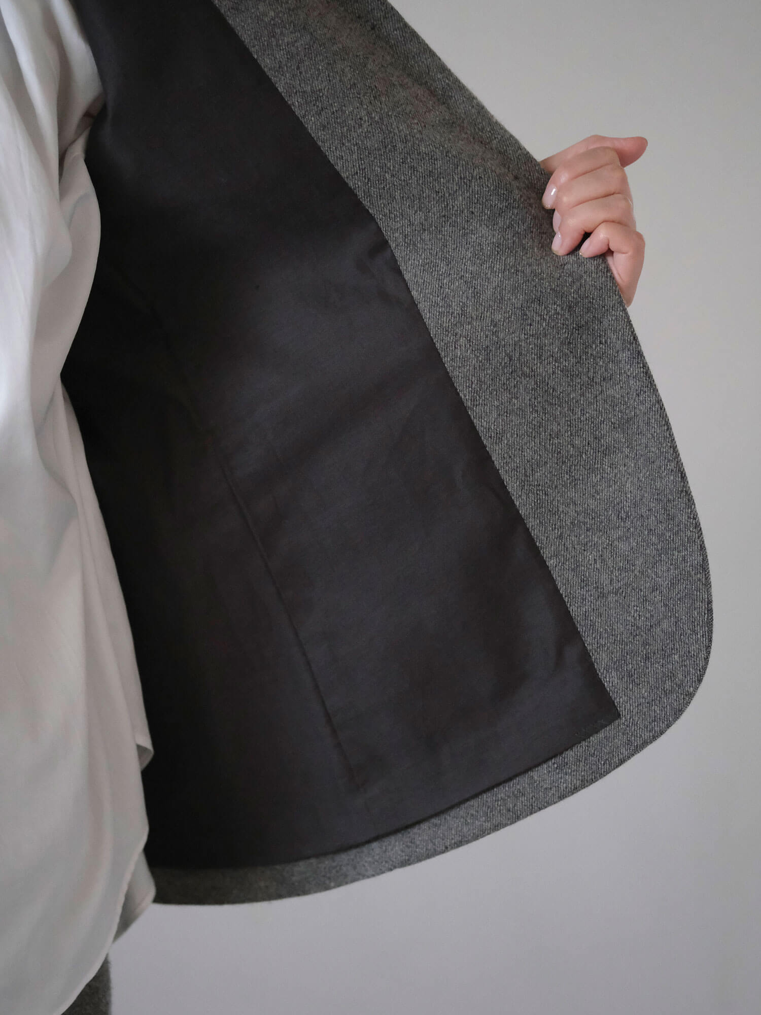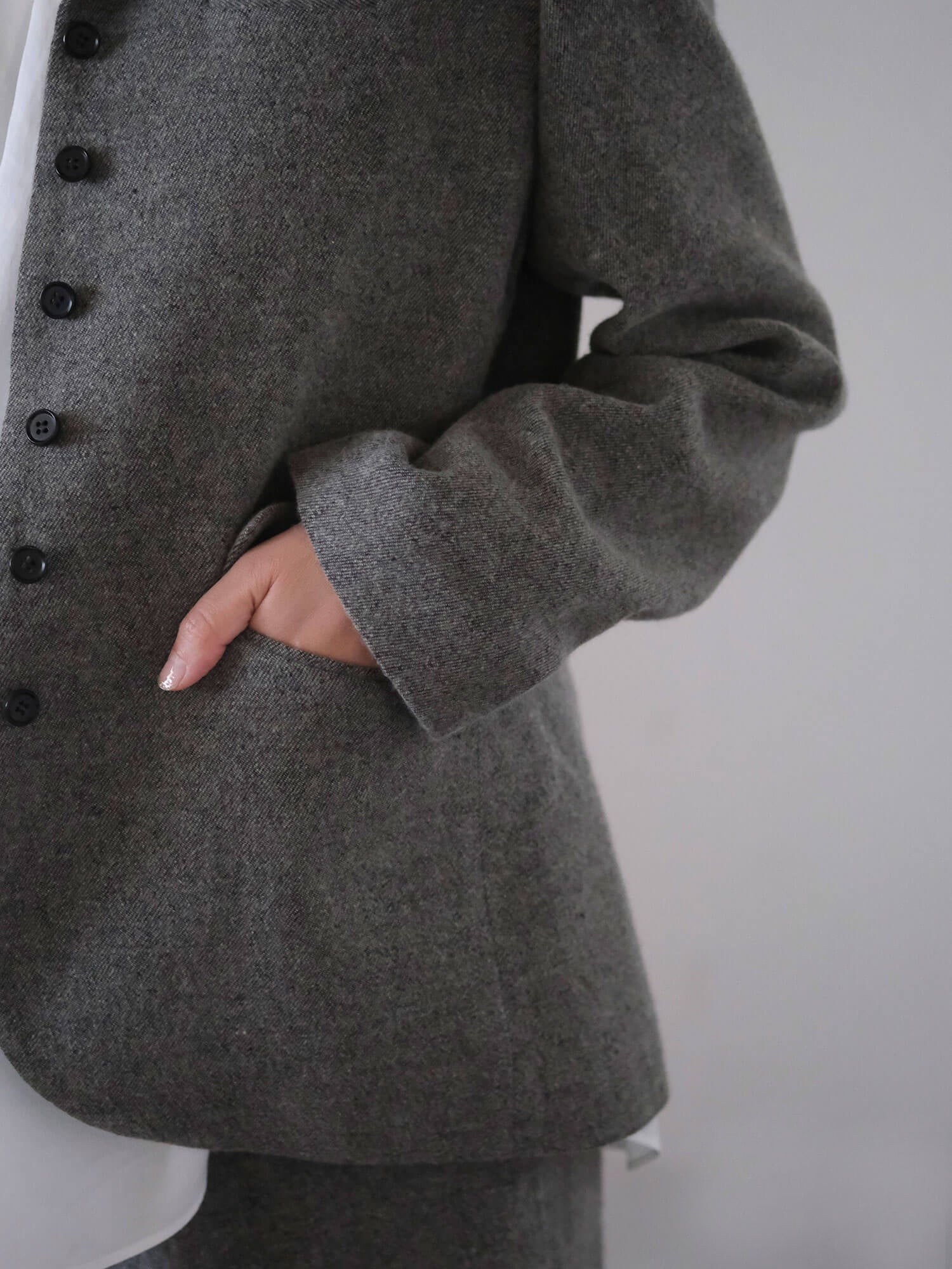 ふっくらとした質感とやわらかな肌触りが心地よい、ウールリネンの生地で仕立てたジャケット。