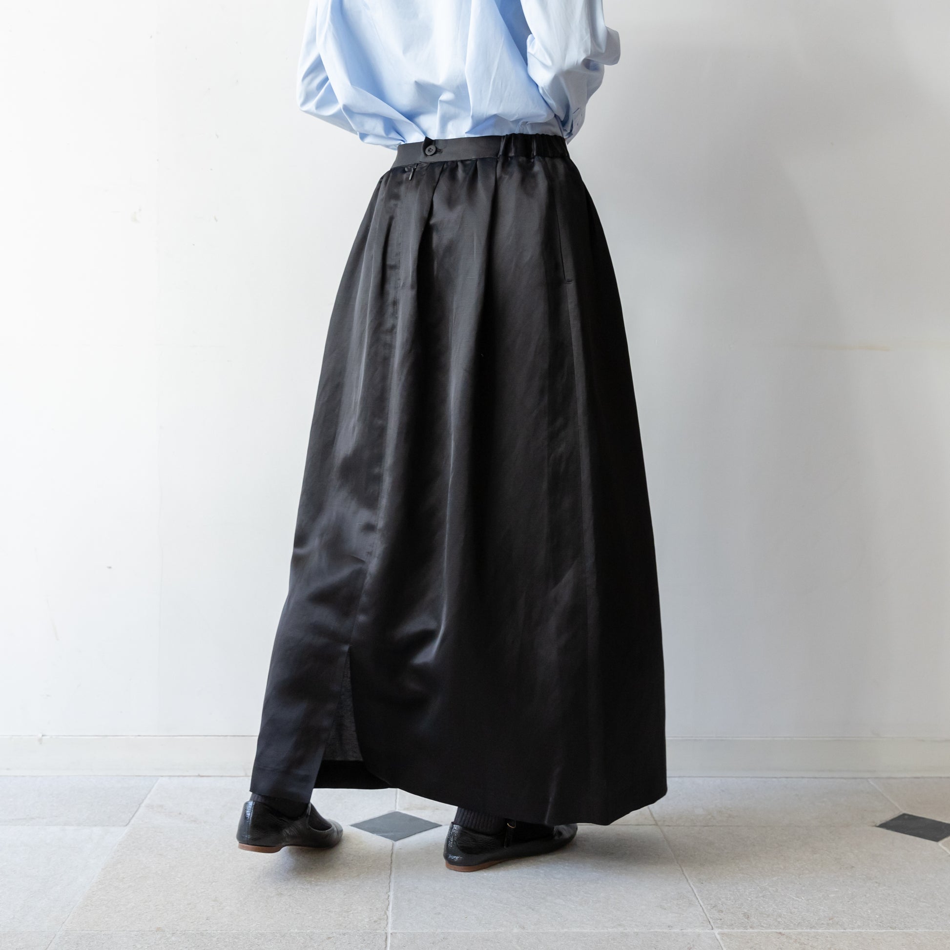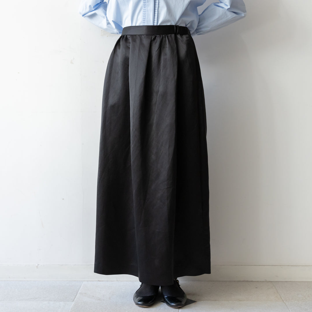 つややかな光沢が美しいマキシ丈のスカートが登場しました。普段使いから、ちょっとしたお呼ばれの席まで幅広く着こなせます。