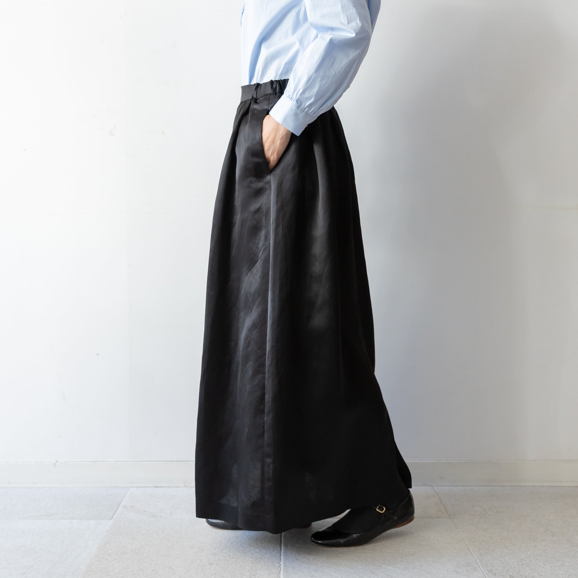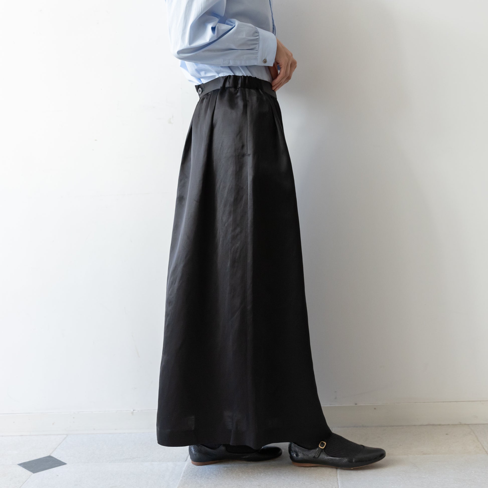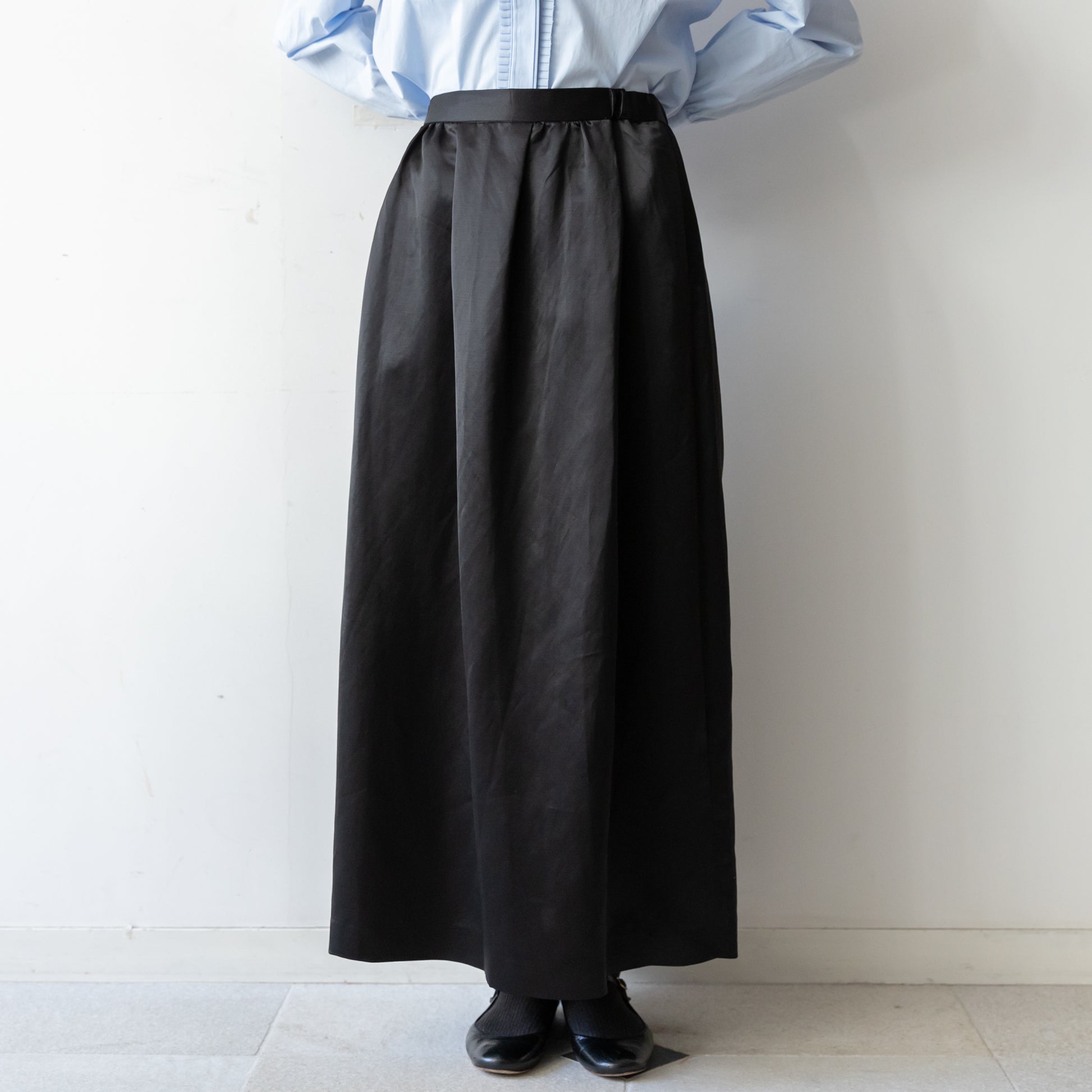 ロング丈だと重くなりがちな黒色も、つややかな光沢があるので華やかです。きれいめなブラウスやジャケットと合わせてフォーマルなシーンにも活躍します。
