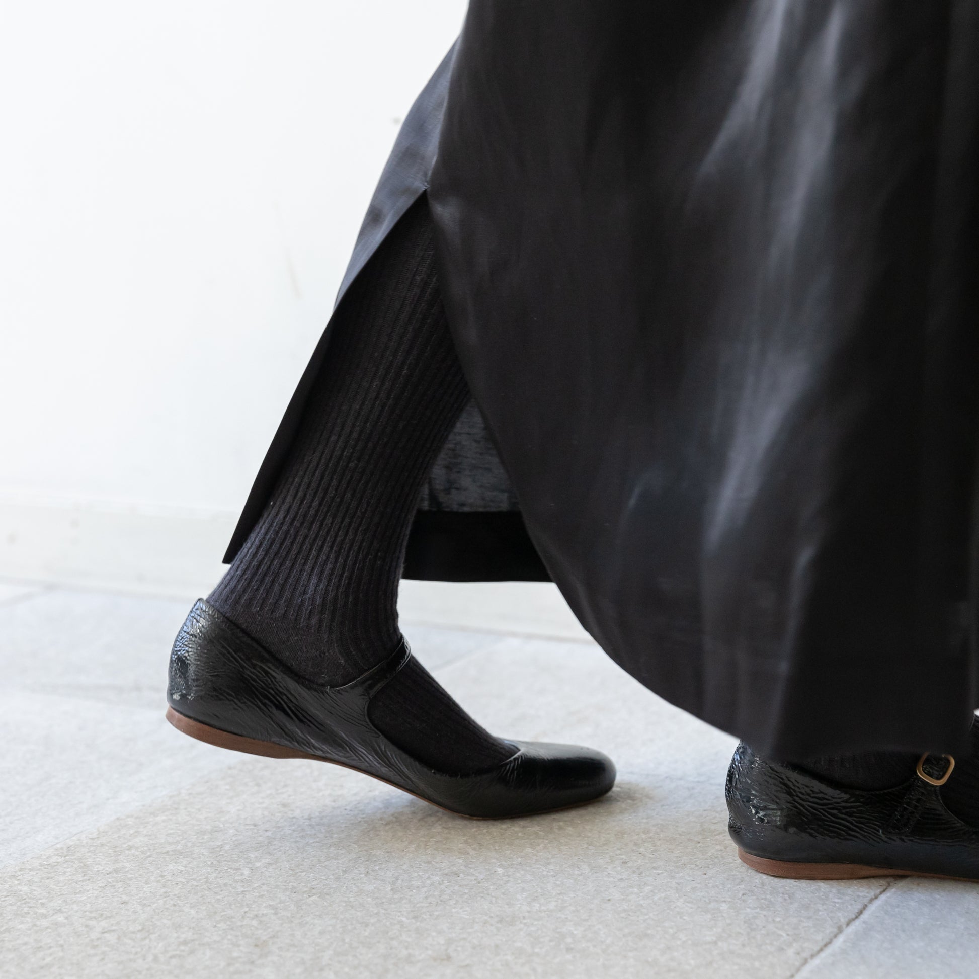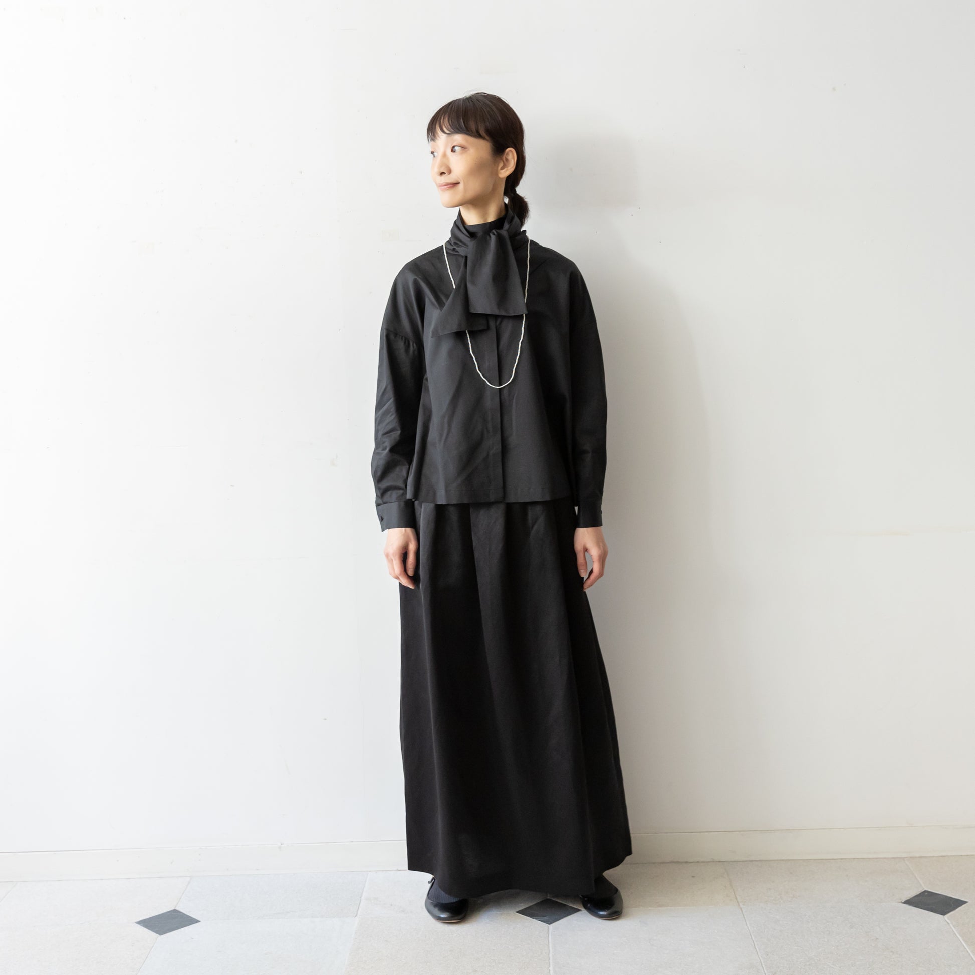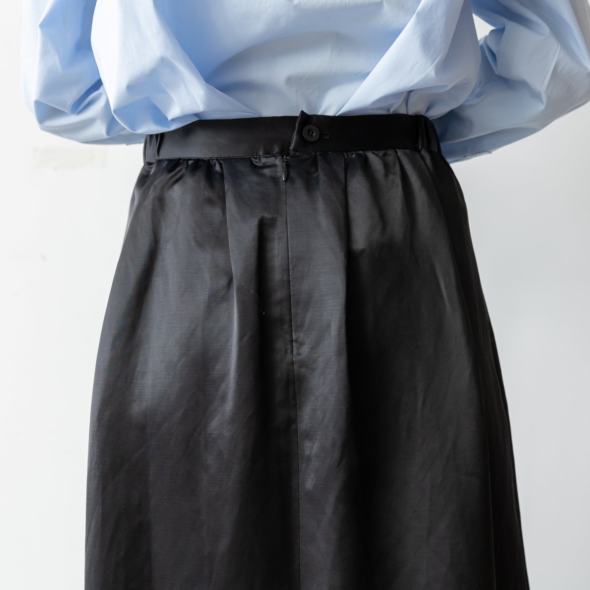 ロング丈だと重くなりがちな黒色も、つややかな光沢があるので華やかです。きれいめなブラウスやジャケットと合わせてフォーマルなシーンにも活躍します。