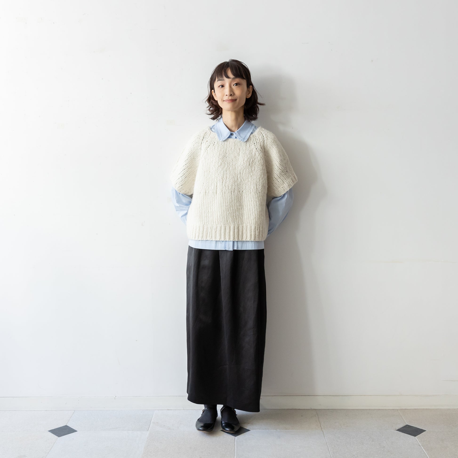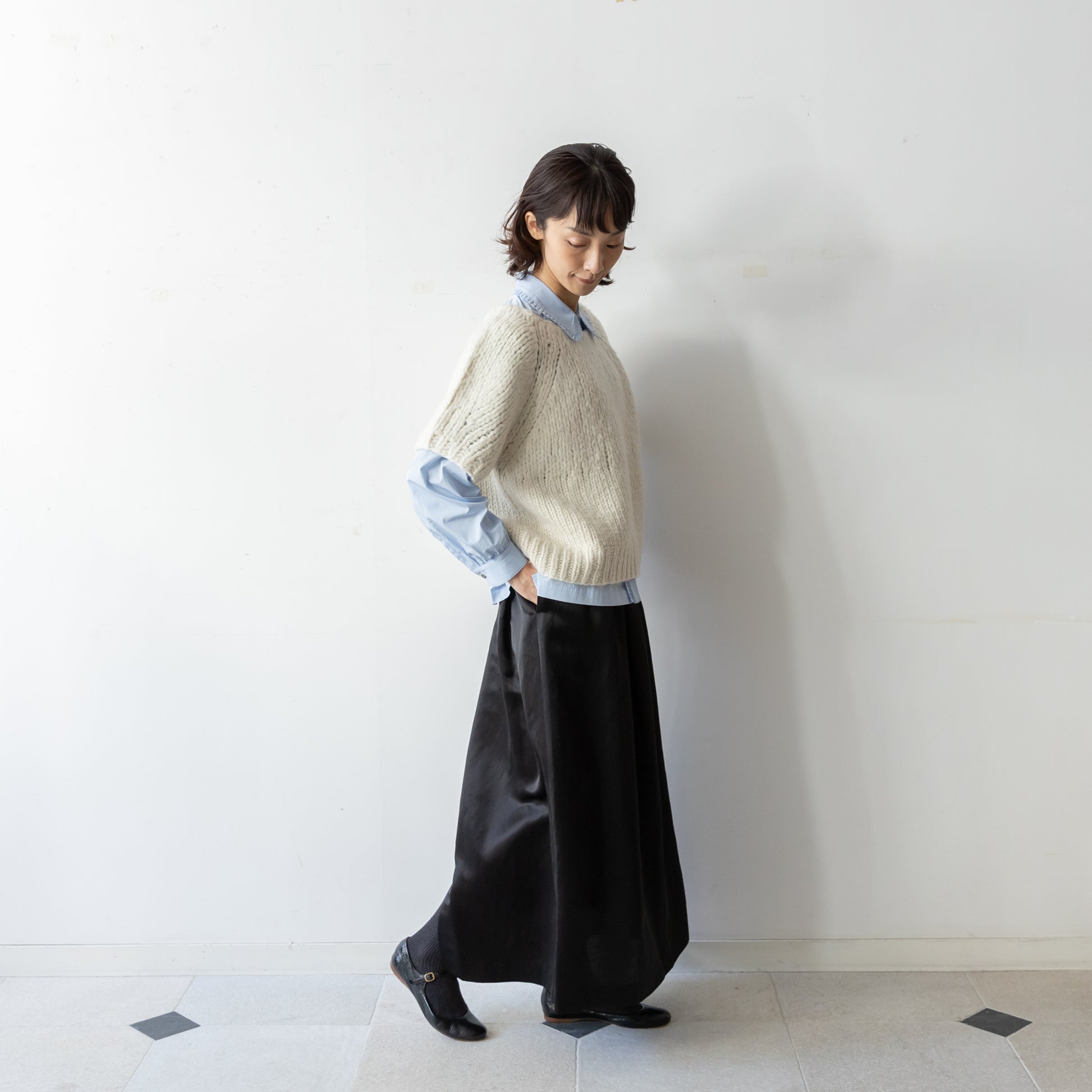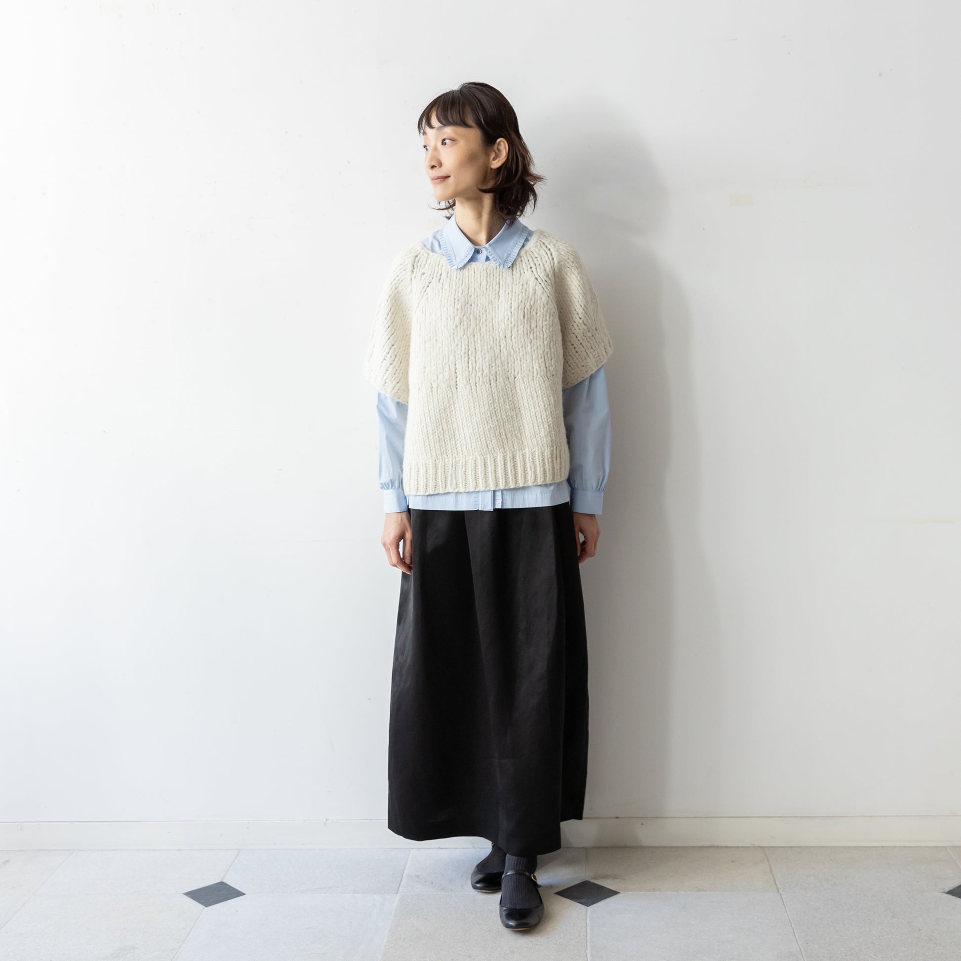 ブラウスとニットを合わせた少しラフなコーディネート。ニットのあたたかみある素材とも好相性です。▲ブラウス:アンセルム、ニット:イレーニア[完売]
