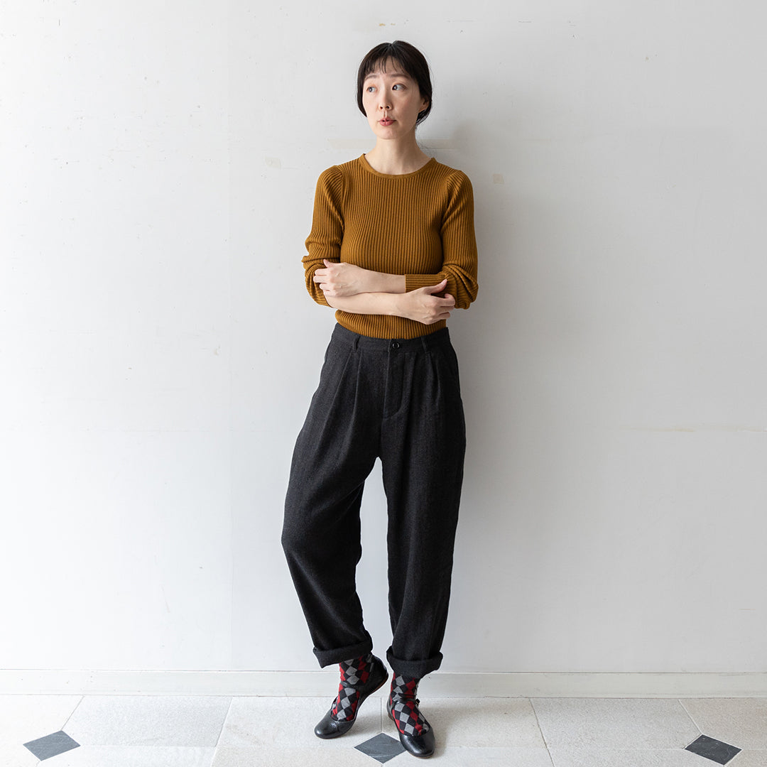 足元にさりげないアクセントを加えてくれそうな「ルージュ」と「サパン」の2色展開。柄ものでもブラックがベースなので取り入れやすいです。