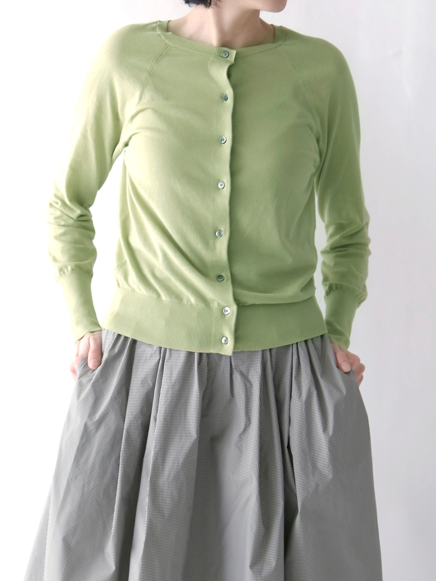 新色のカーディガンで春を匂わせて