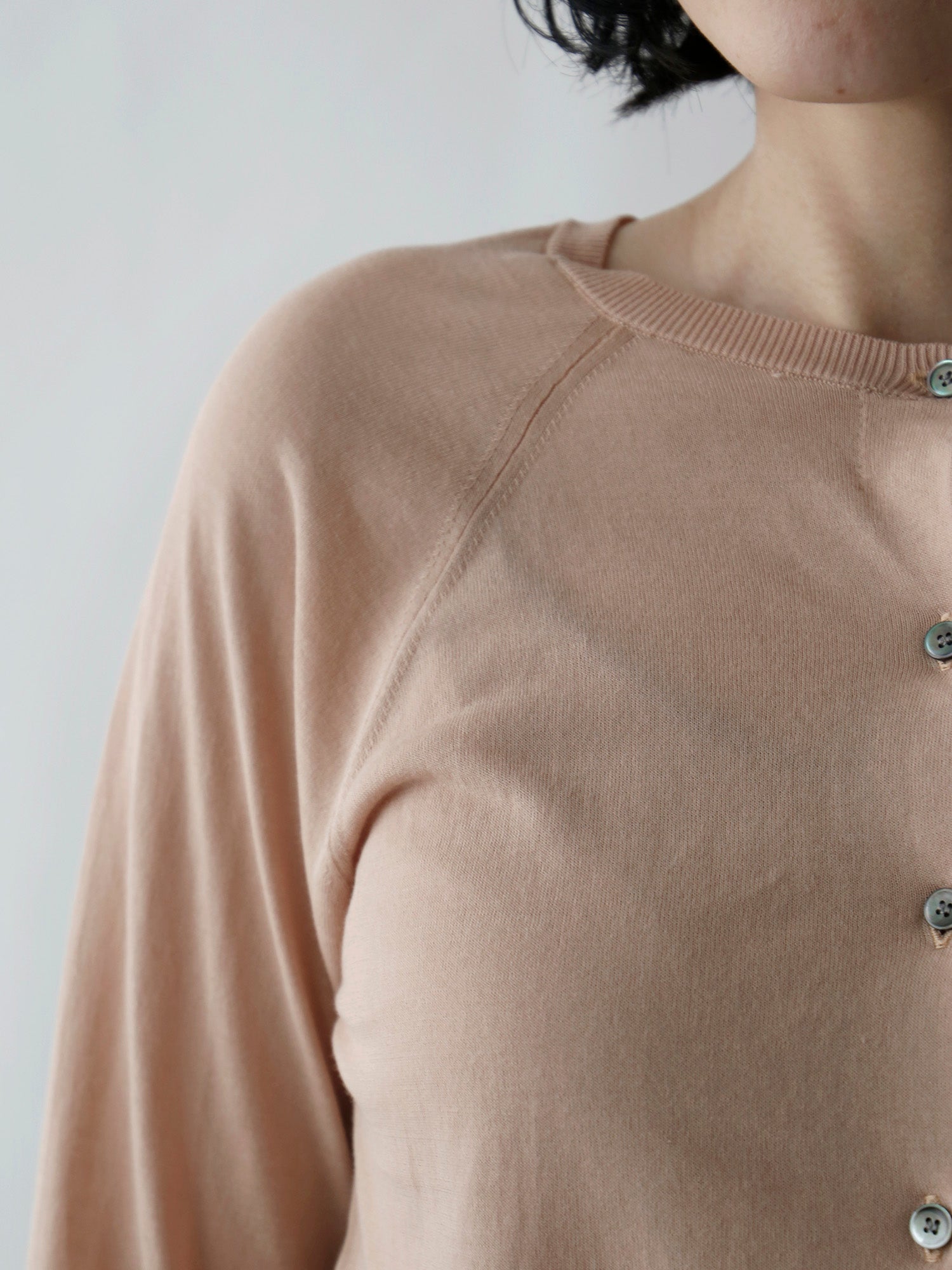 ラグランスリーブのため肩や腕が動かしやすく、コンパクトながら快適な着心地です。肩のラインも美しく見せてくれます。