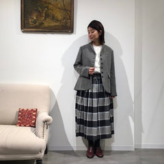 スッキリとシンプルなシルエットなので、パンツにもスカートにも好相性。ベストやニットを重ねてももたつかず、重ね着を楽しめます。