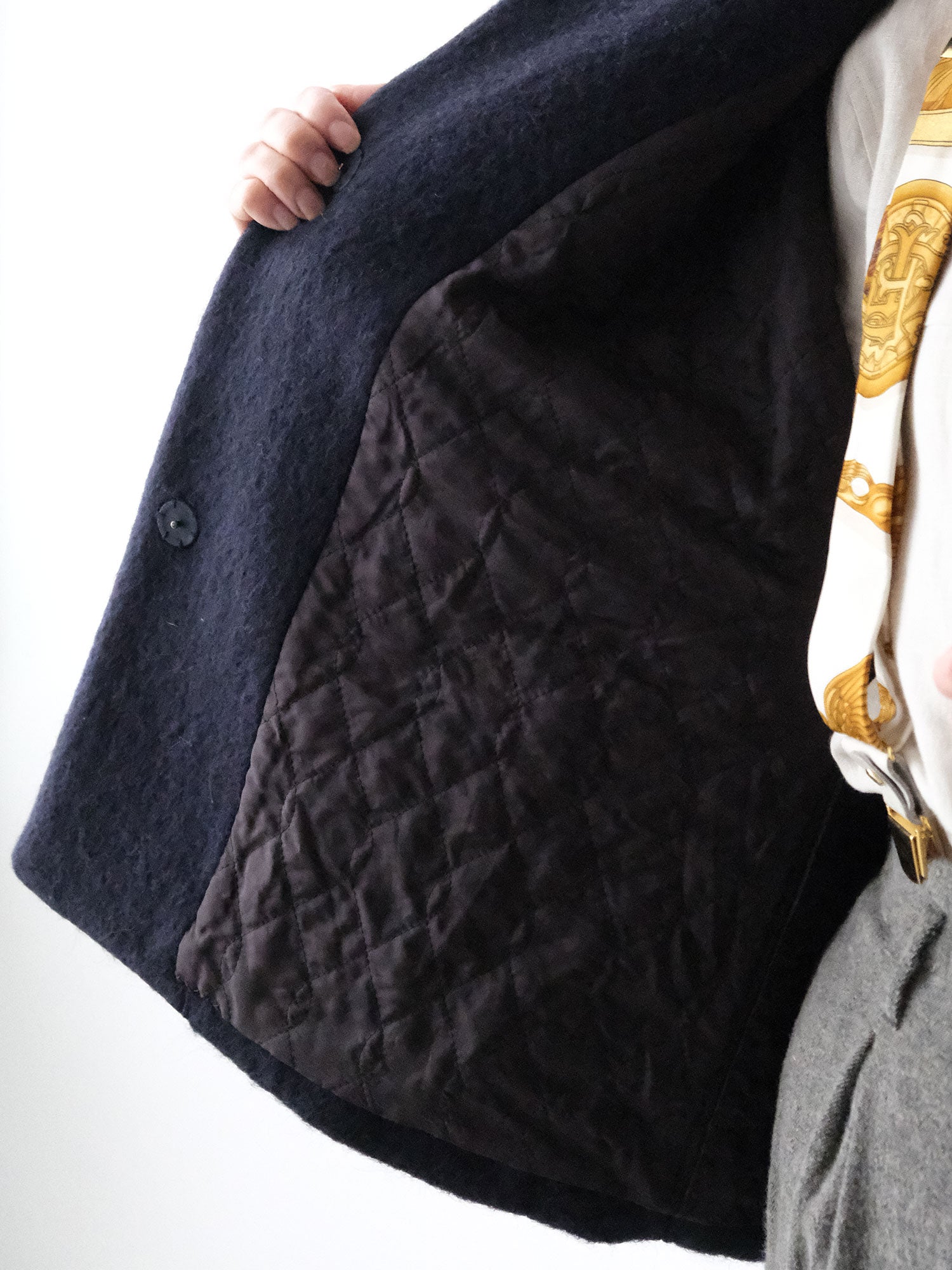 裏地は薄い綿が入ったキルティング。軽い着心地なのにあたたかく着られます。