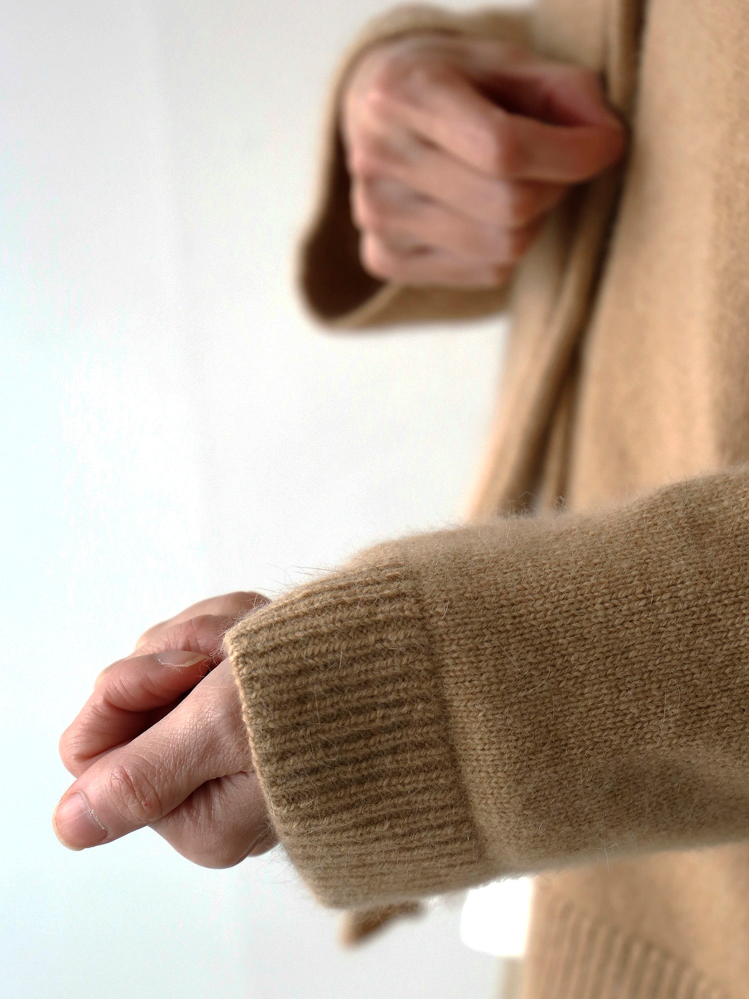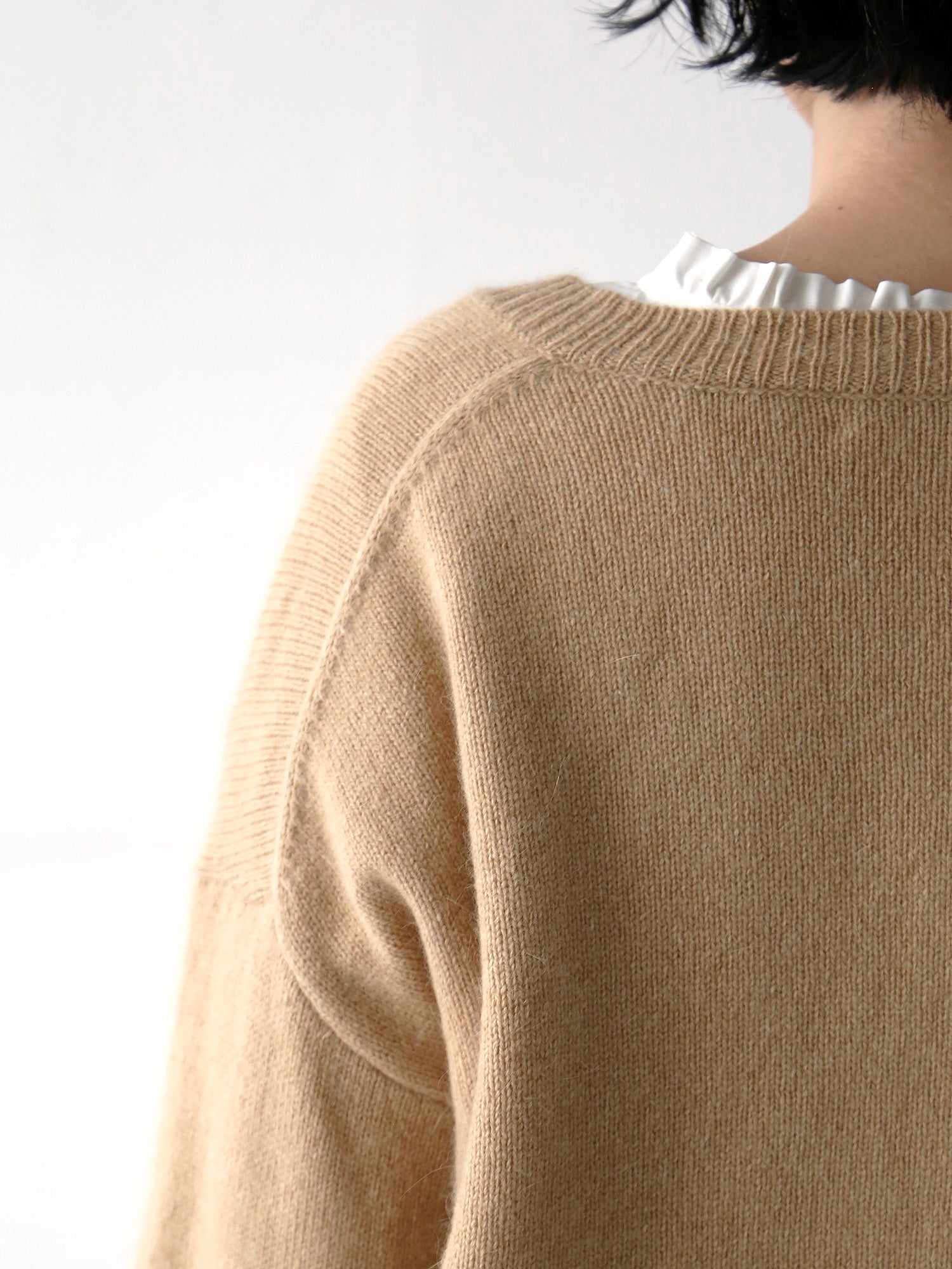 素材は日本製のウール50%アンゴラ40%ナイロン10%。アンゴラの毛足がやわらかく、あたたかみのある表情に仕上がりました。