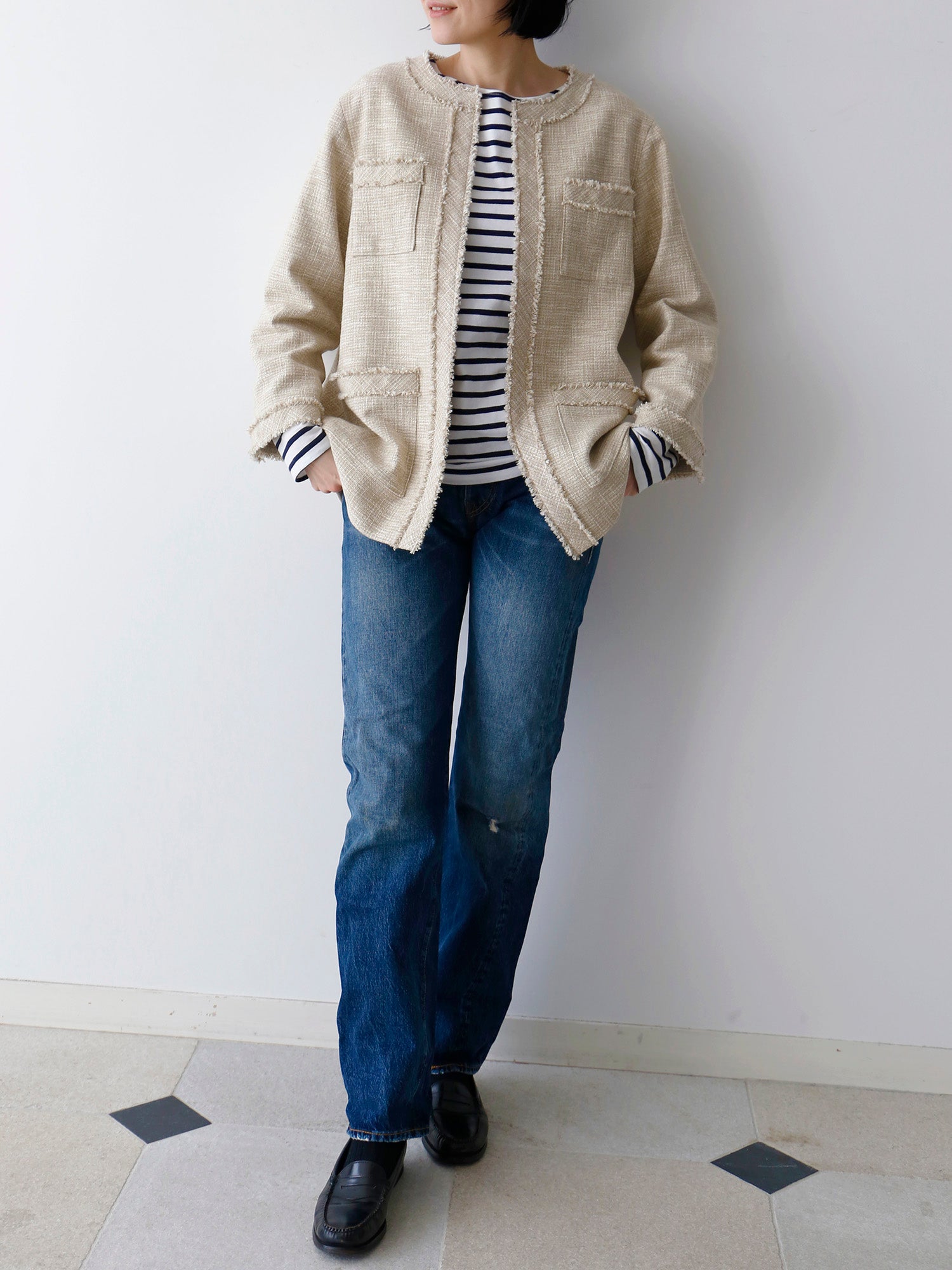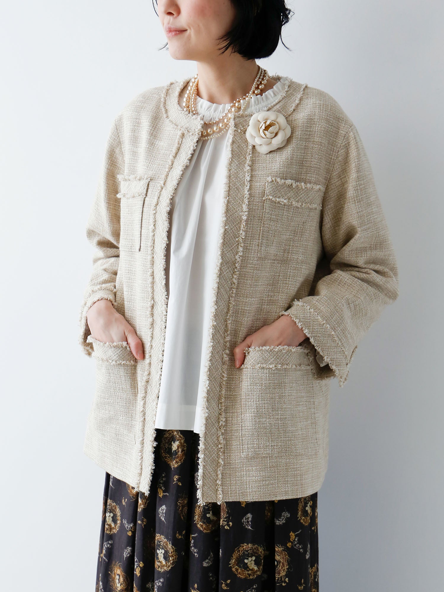 ファンシーツイードを纏う、大人の春ジャケット