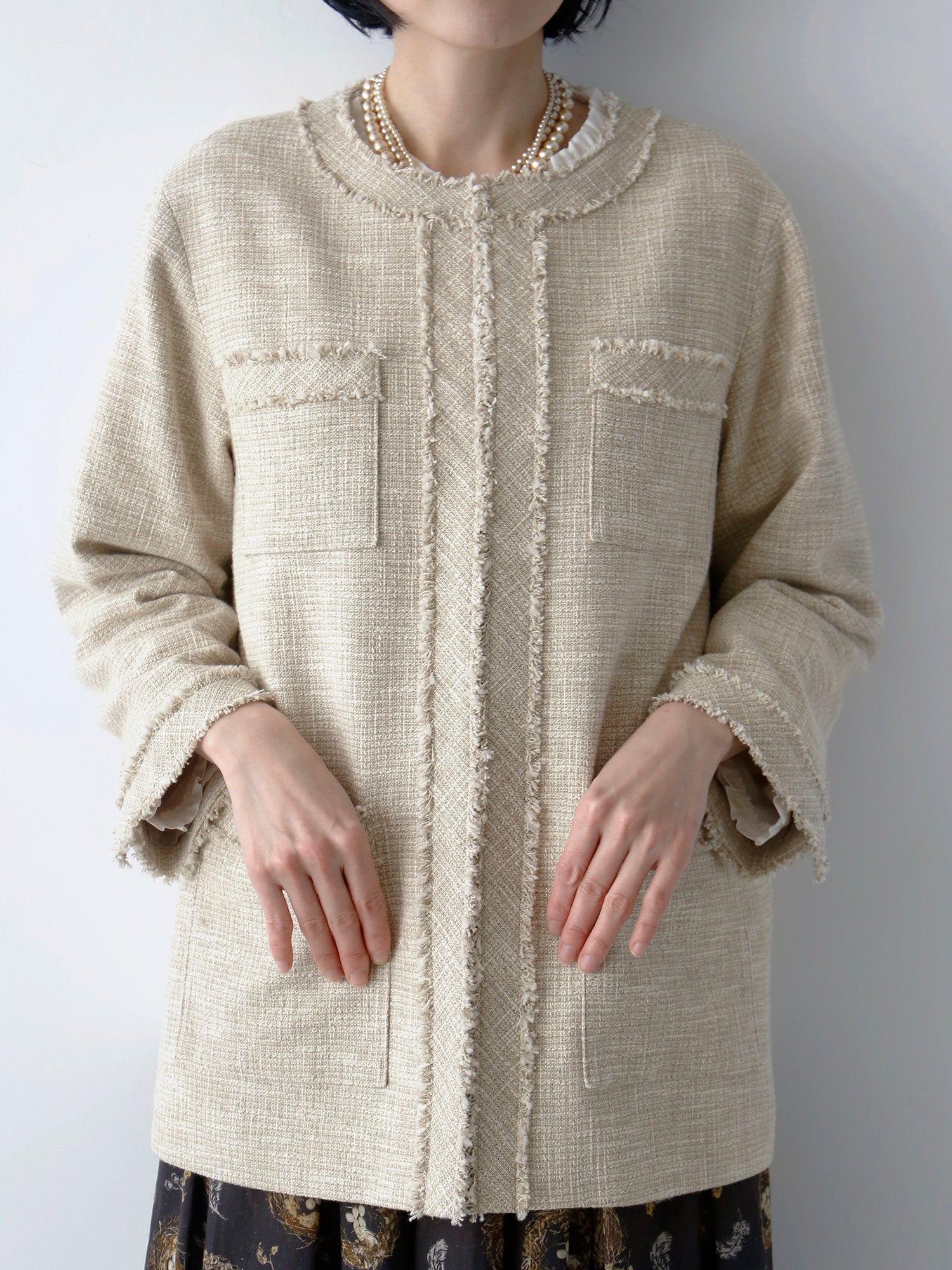 ■ファンシーツイードで仕立てた春ジャケット