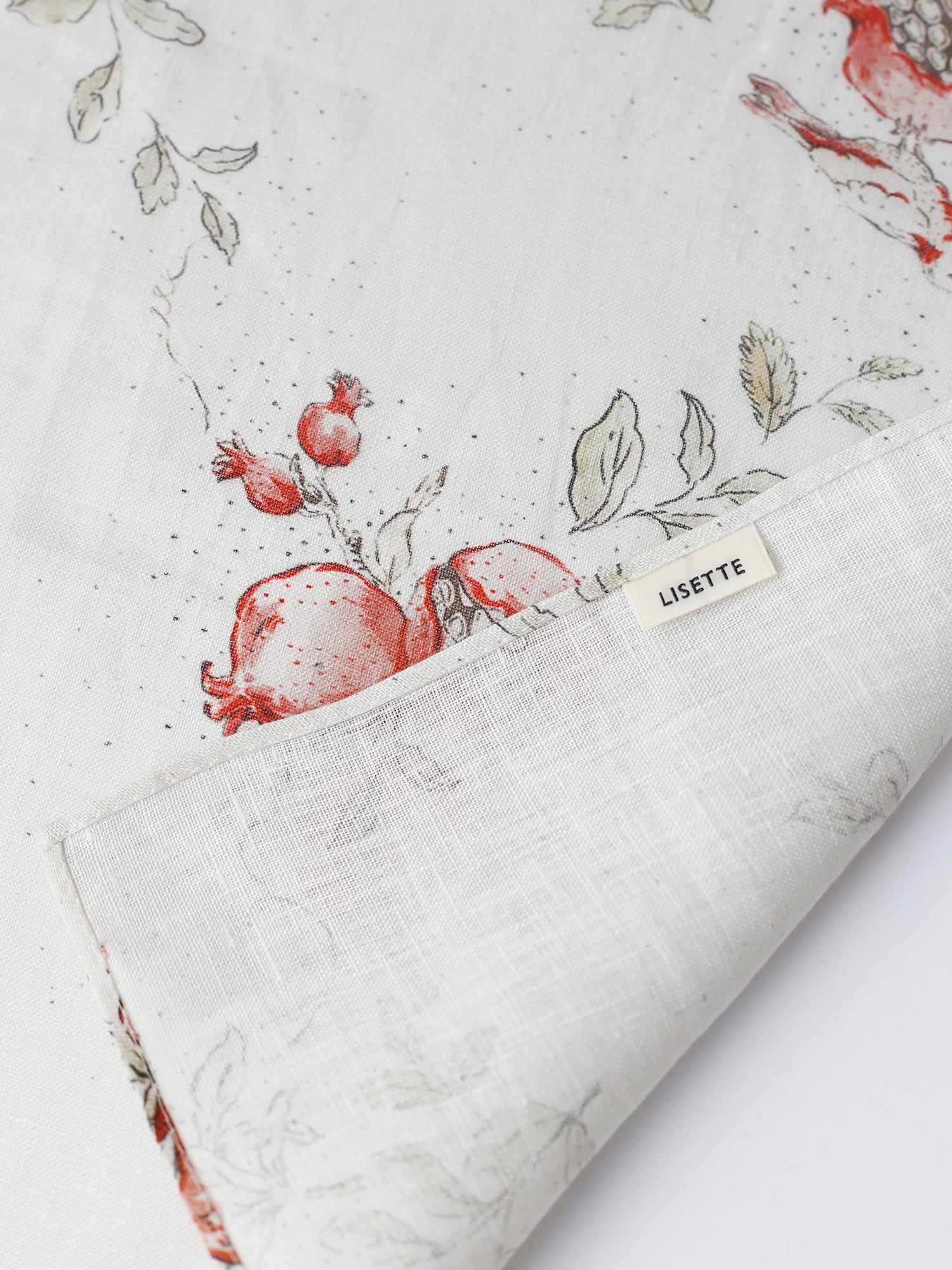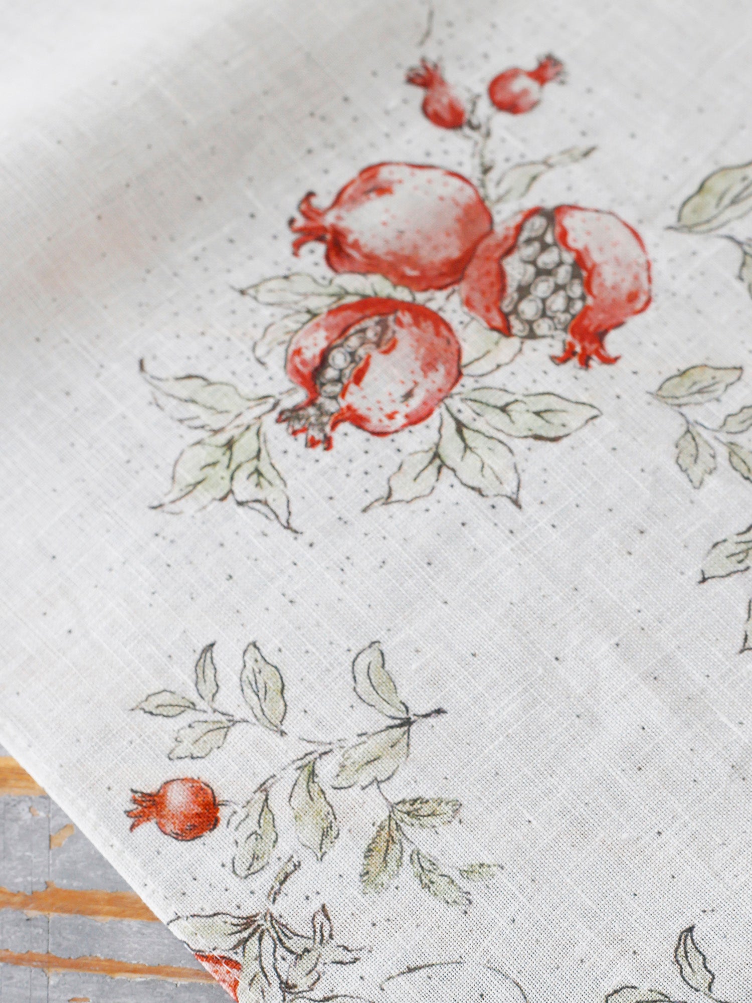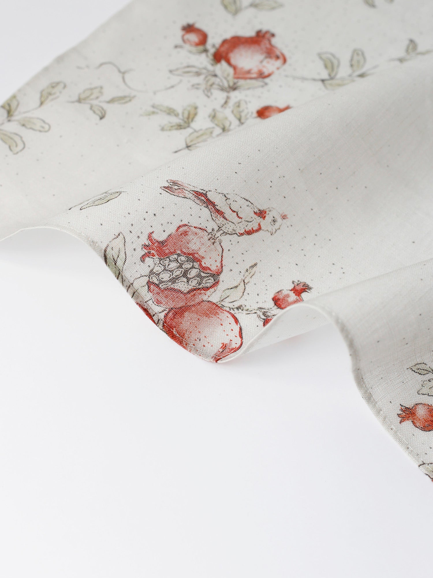 軽やかなベルギーリネンにプリントした2025年夏コレクション《柘榴》。