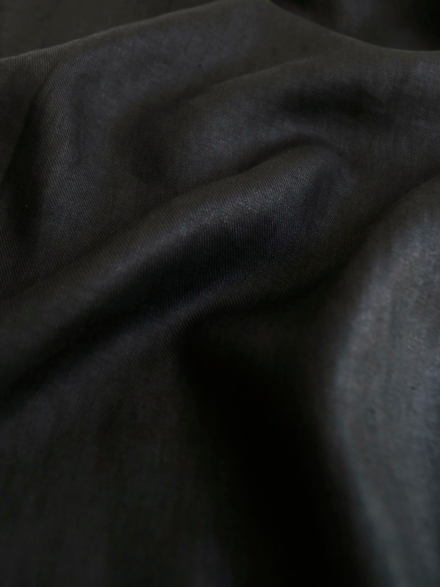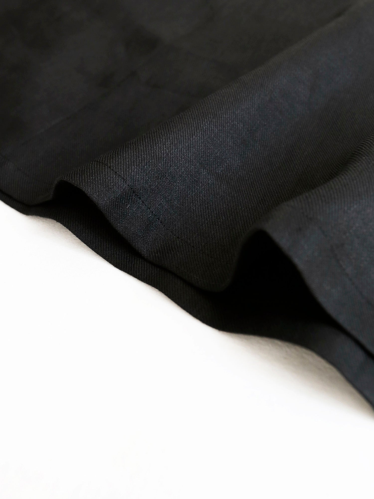 生地は、イタリア製のリネンツイル。リネンの自然な風合いの中に、控えめで上品な光沢が宿ります。綾織がもつ、しなやかさと程よい厚みが、美しいドレープを生み出します。