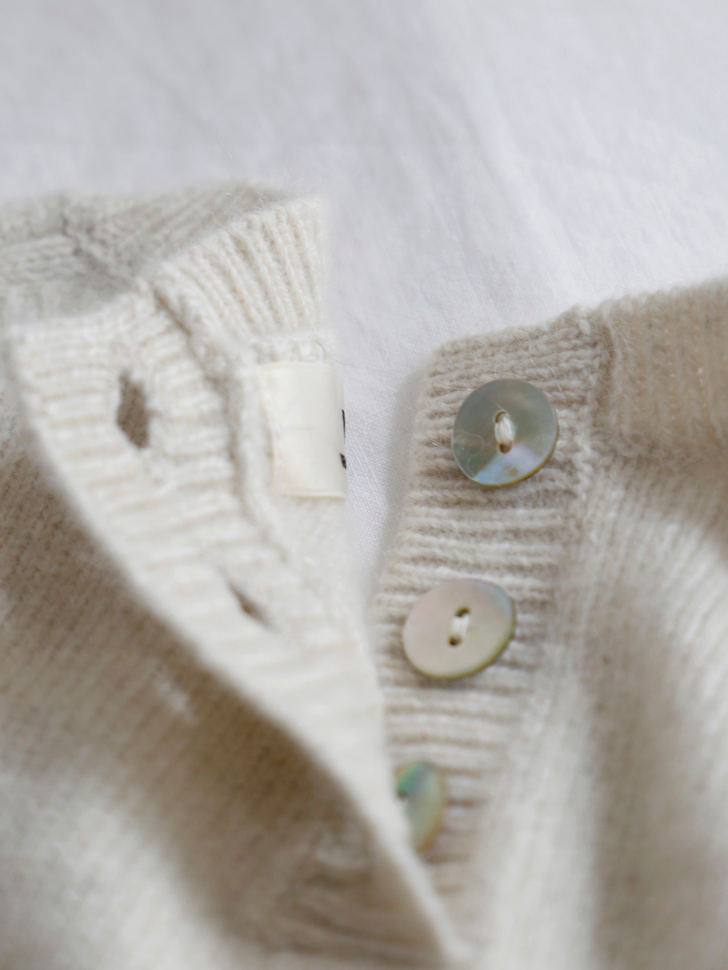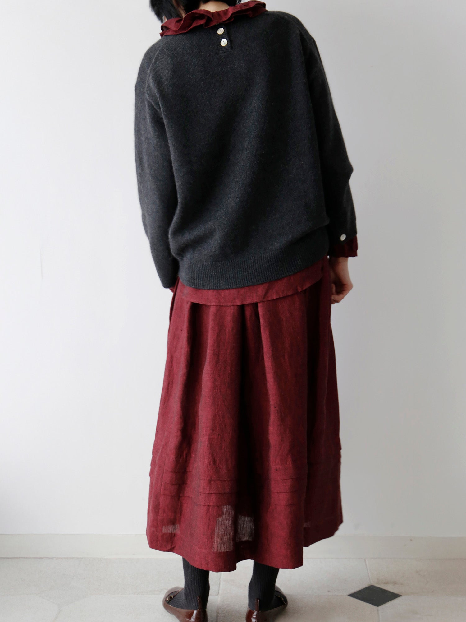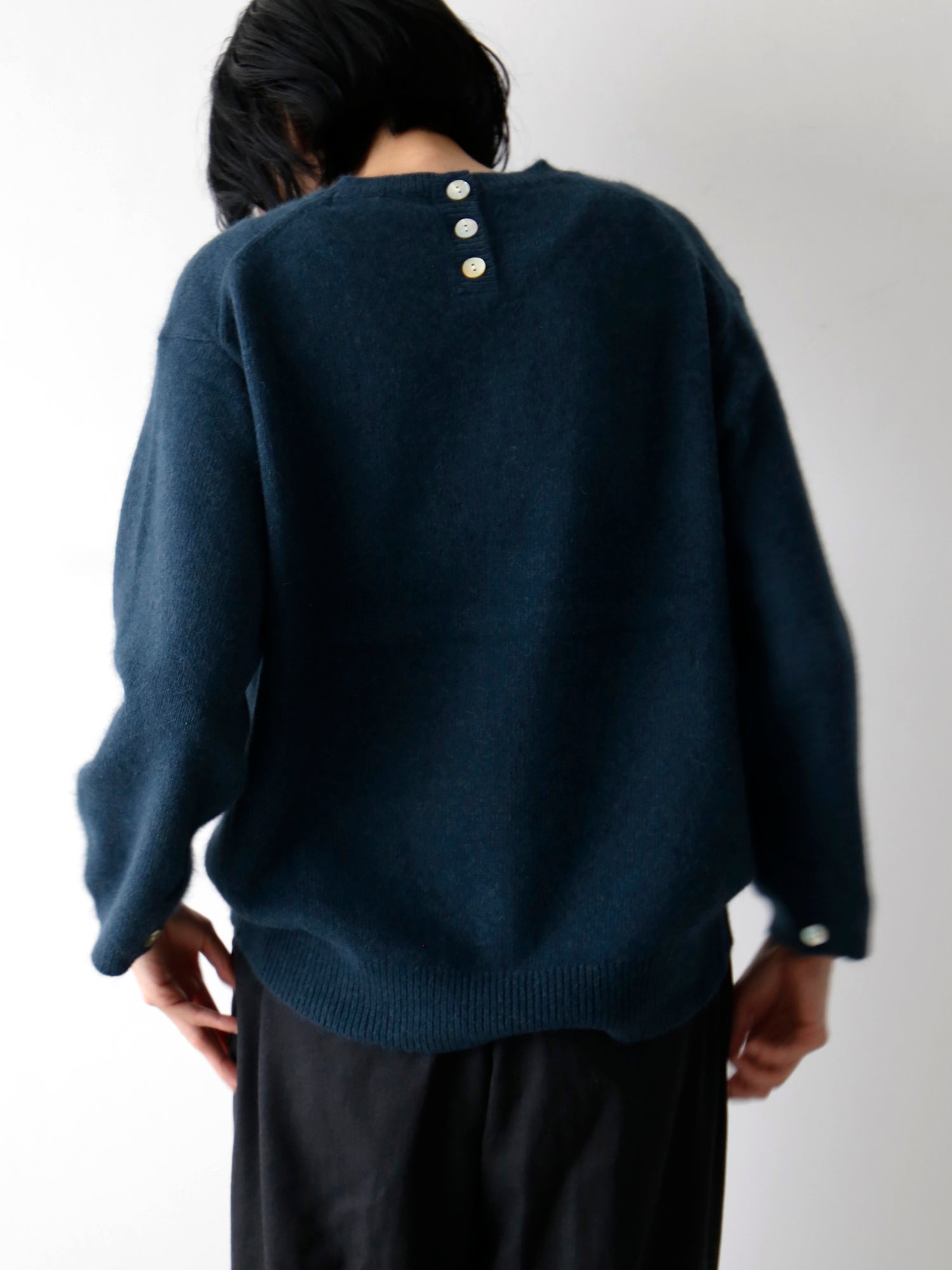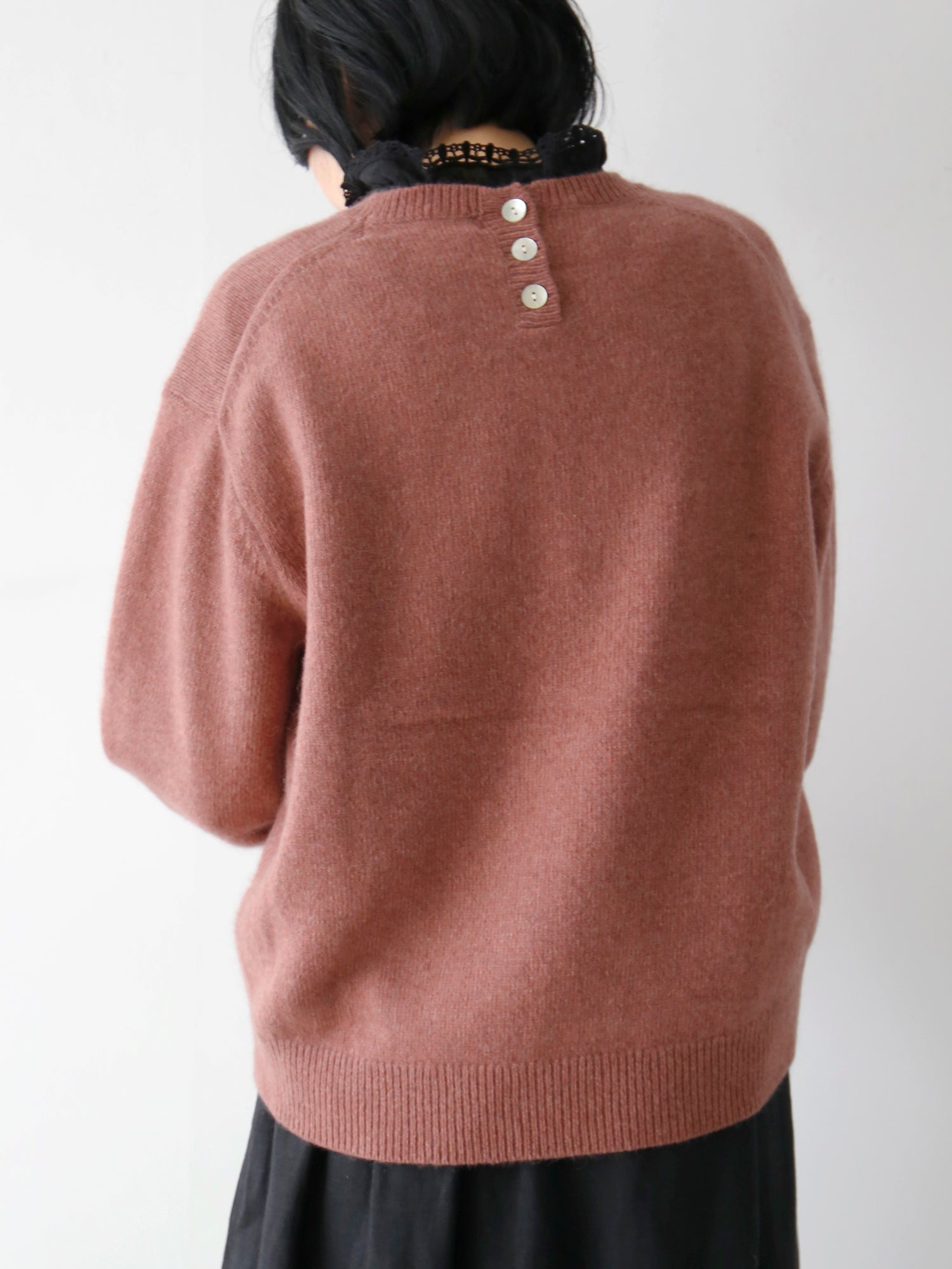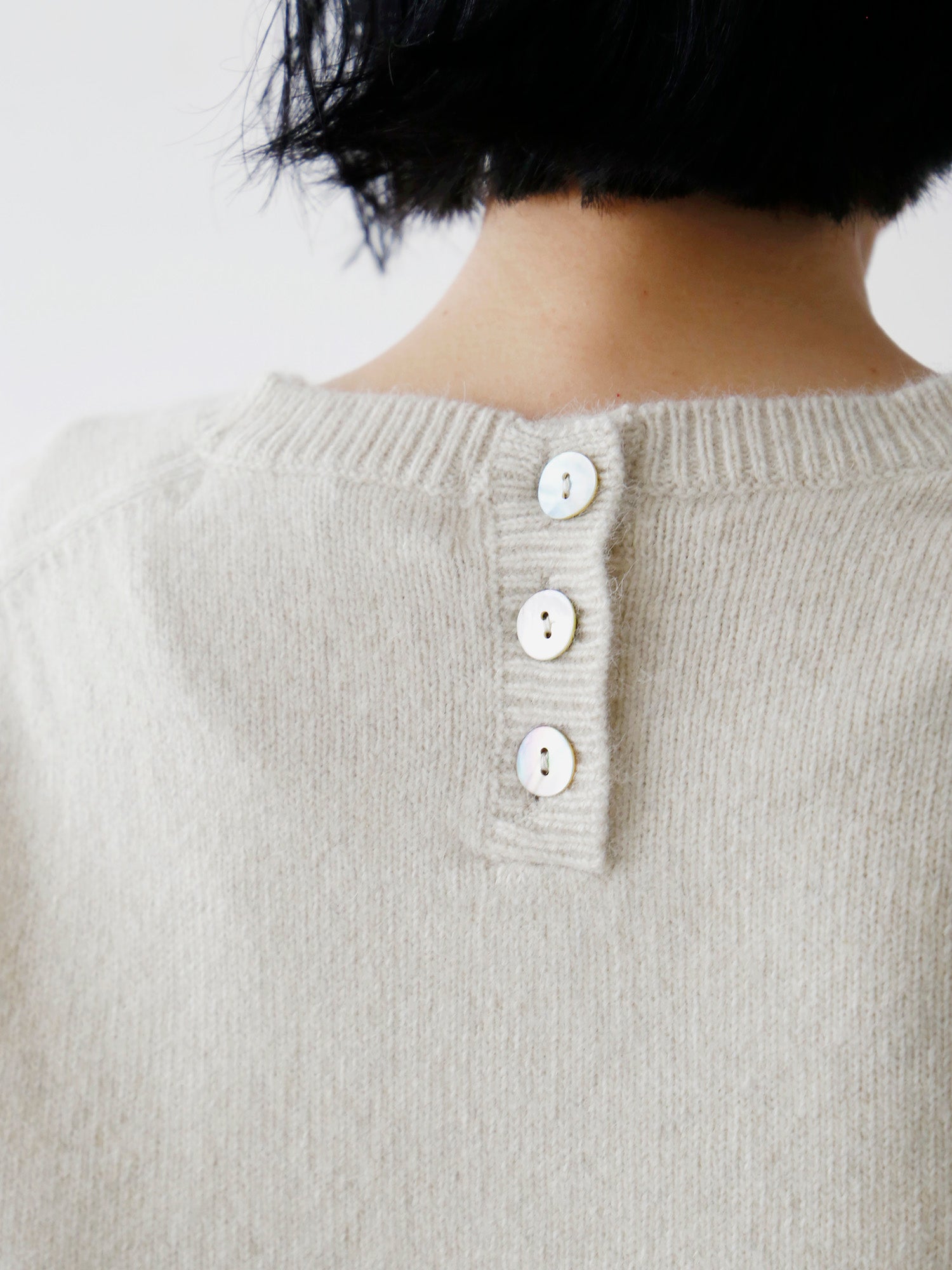後ろ衿ぐりと袖口に小さなボタンをあしらったさりげないデザイン。