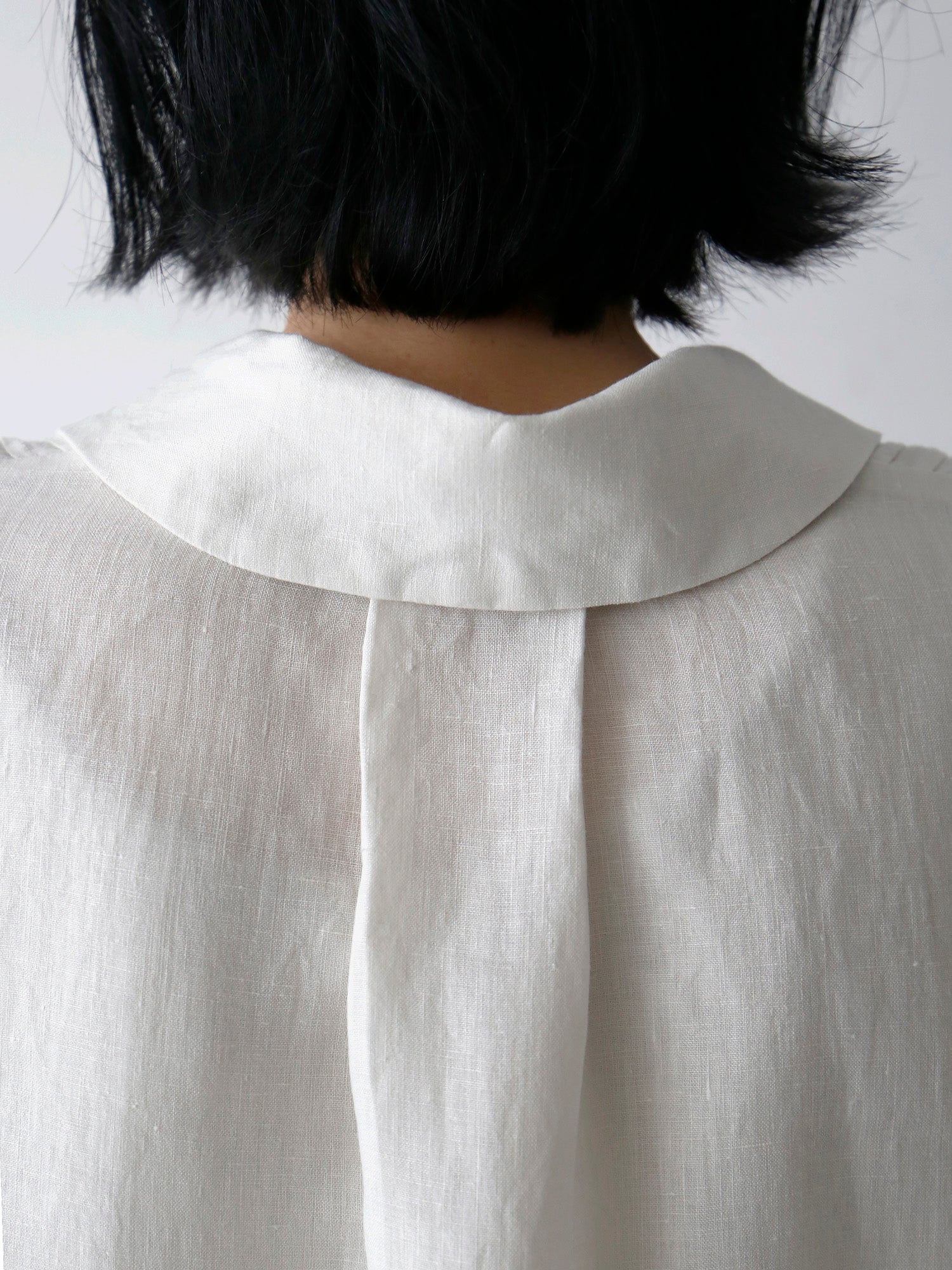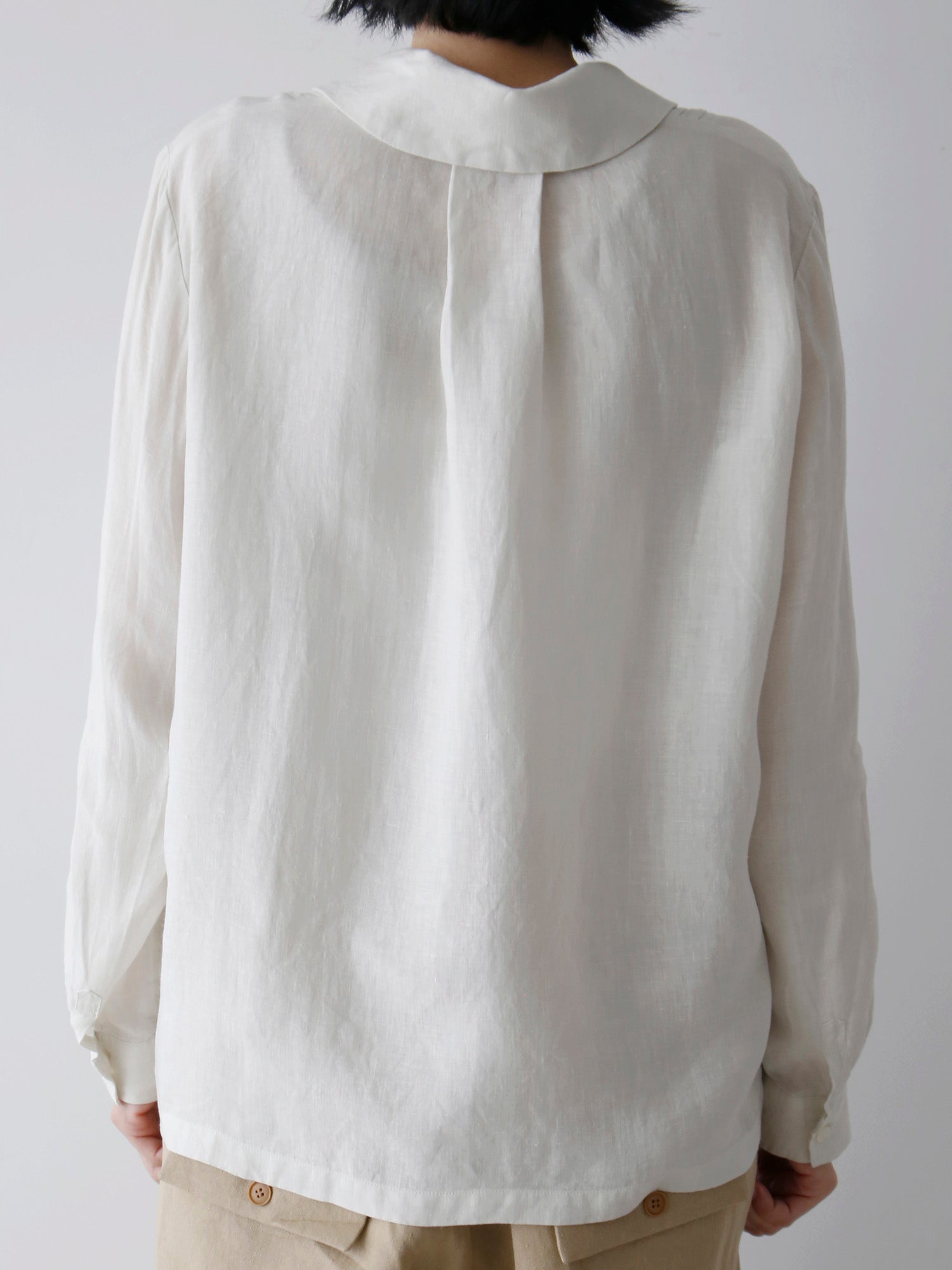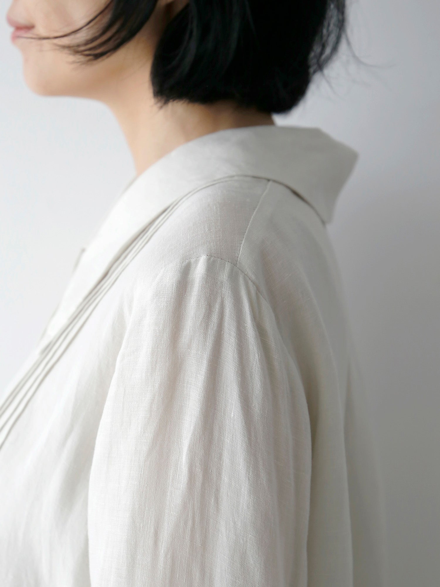 リネンの優れた調湿性が、昼夜の気温差や暖房による乾燥から身体をやさしく守り、ジャケットやニットのインにも心地よく重ねられる一枚です。