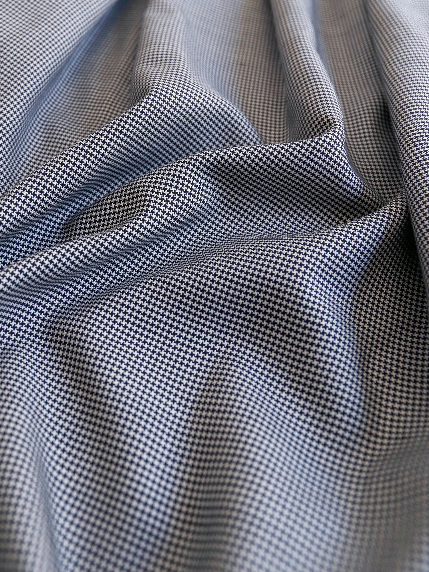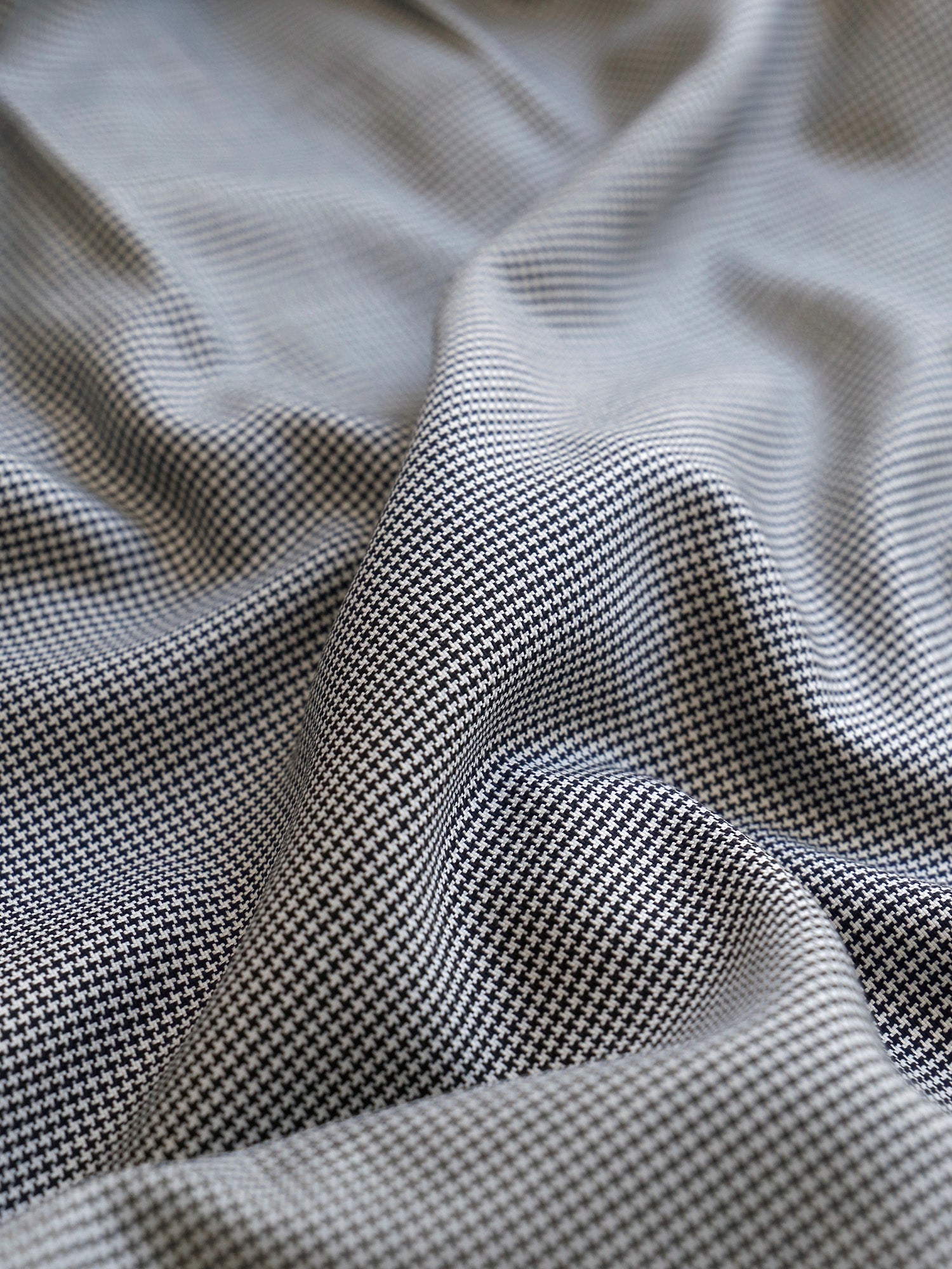 伝統とモダンが融合した千鳥格子柄。白と黒が織りなす小さなモノトーンの模様が、着こなしに奥行きを与え、クラシックなスタイルを美しく引き立てます。