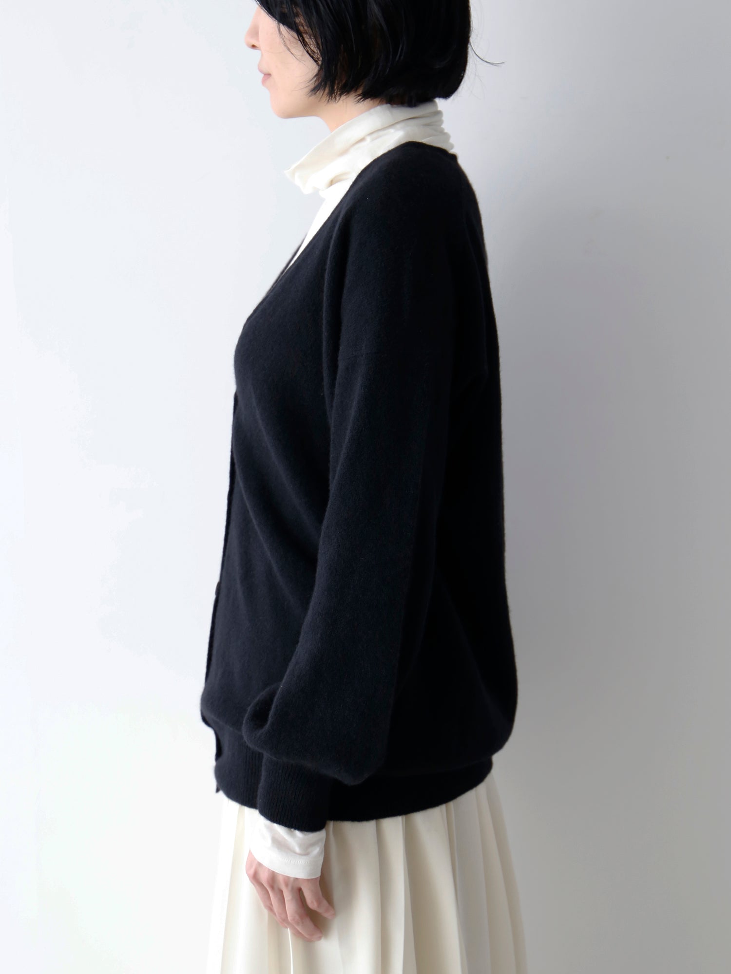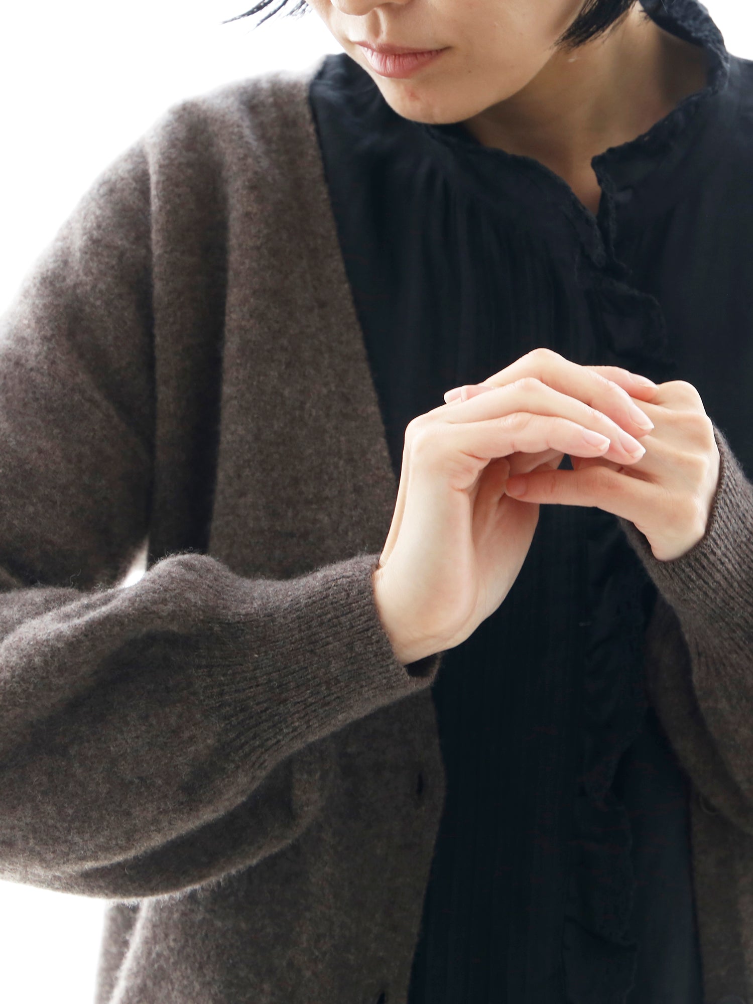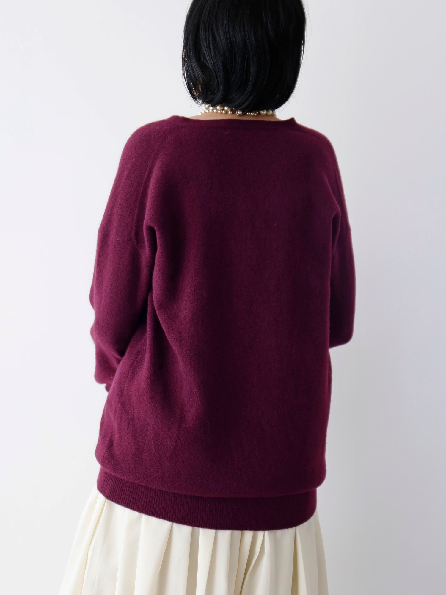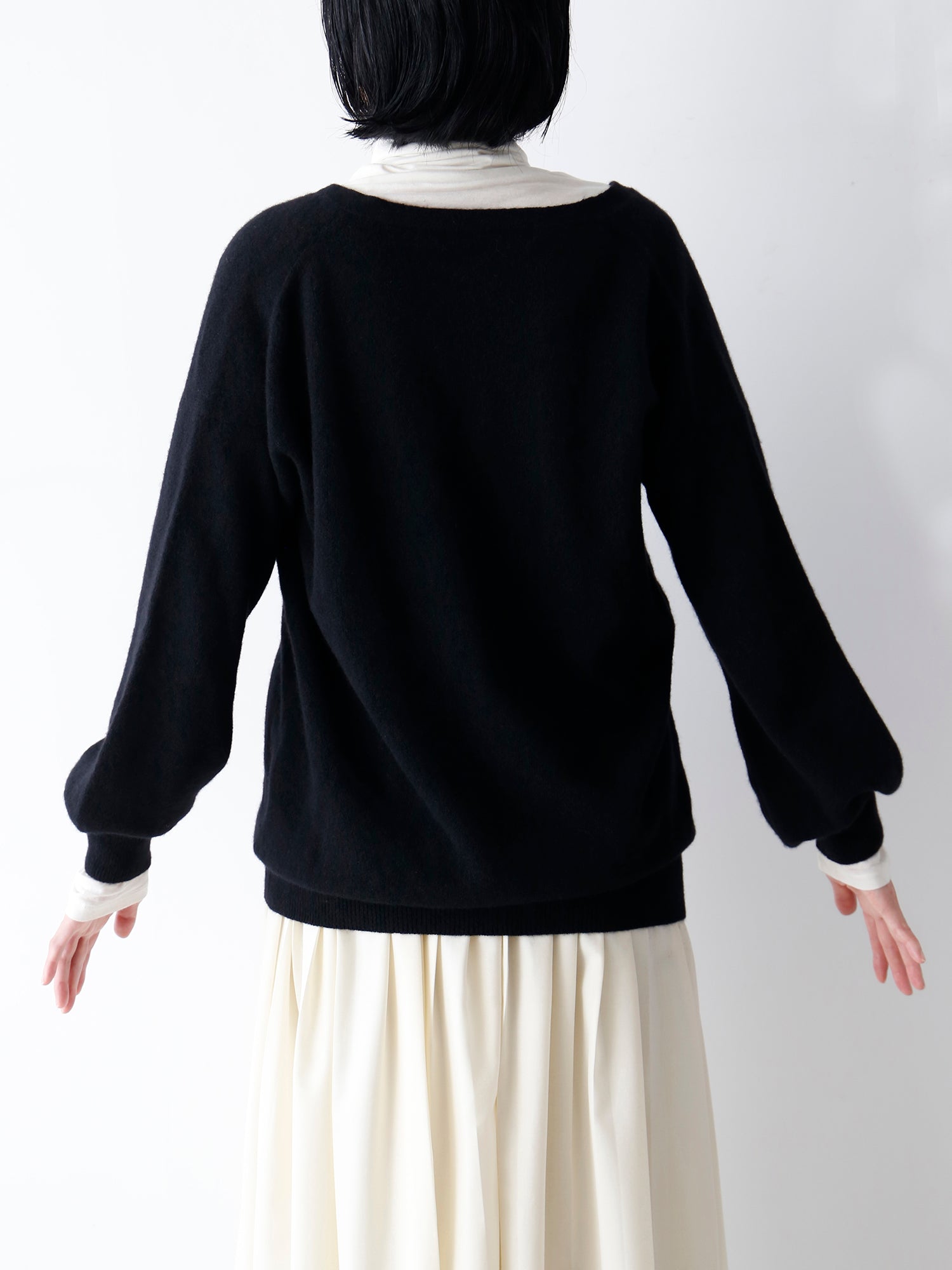 繊維が細く、ふんわりとした軽さと弾力があるラムウールにカシミヤをブレンドした、糸から編み立てまでジャパンメイドの一枚。