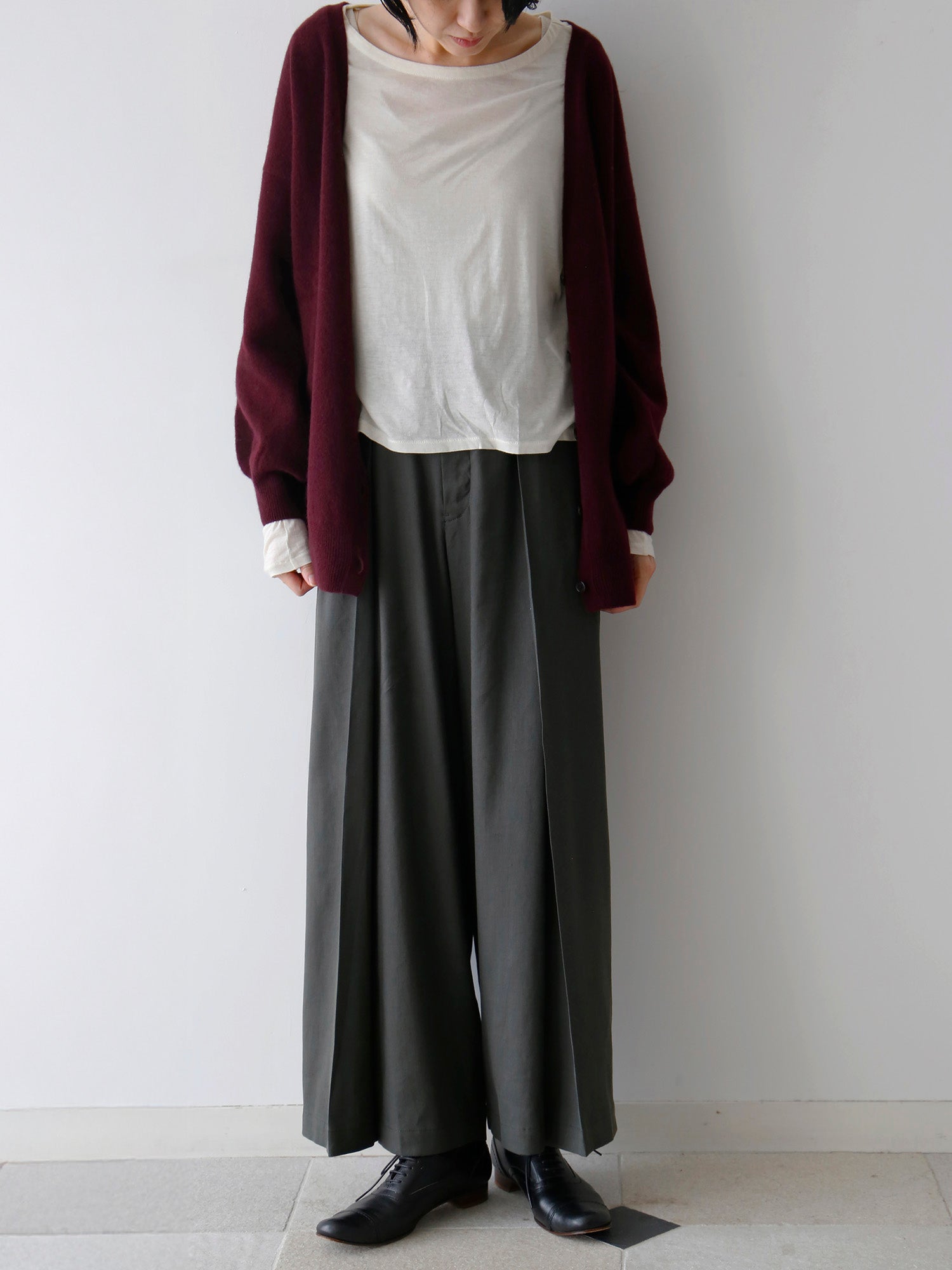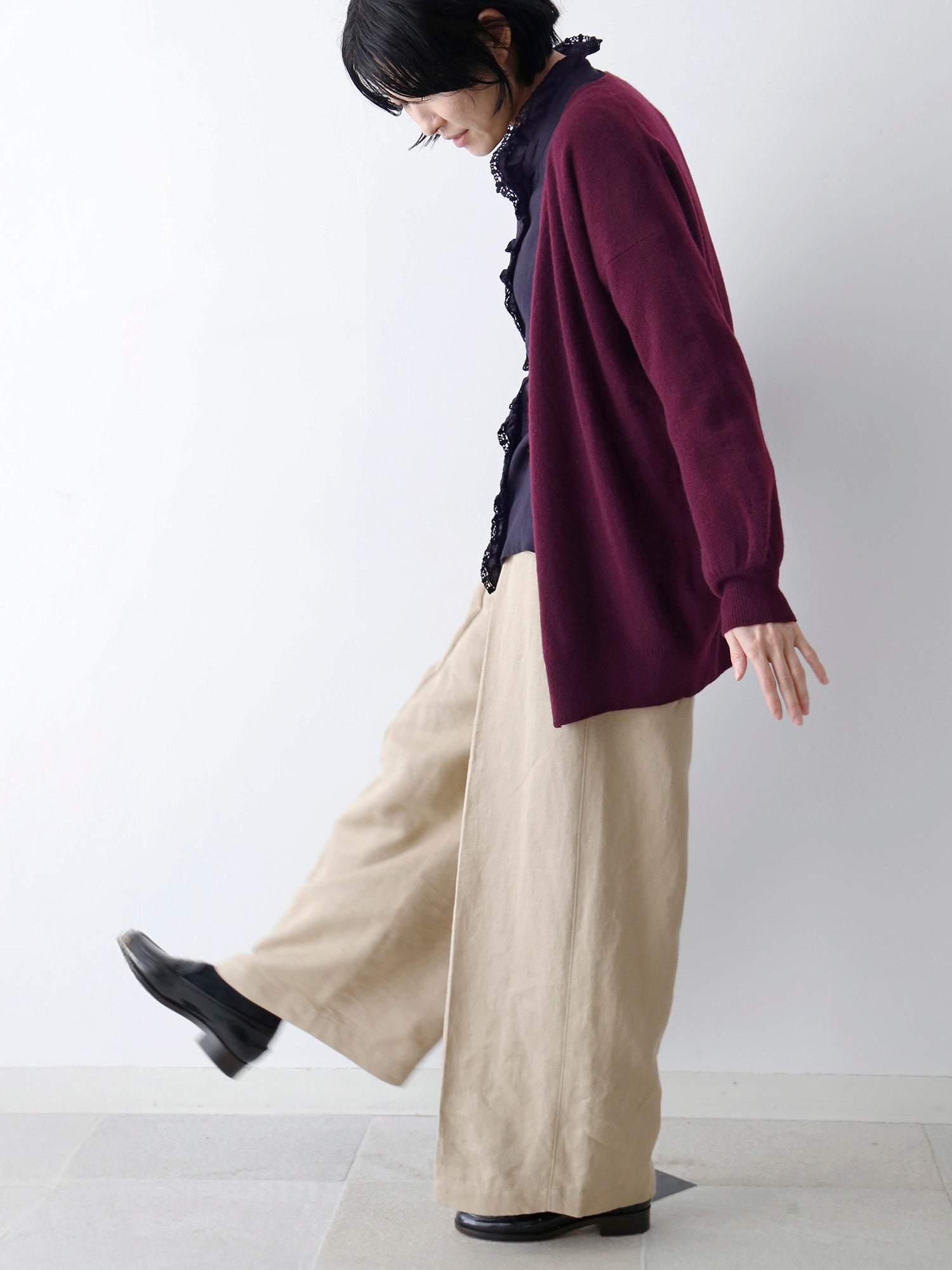 異素材とのコーディネートが◎。柔らかなスカートでフェミニンに、スラックスとマニッシュな着こなしもおすすめです。
