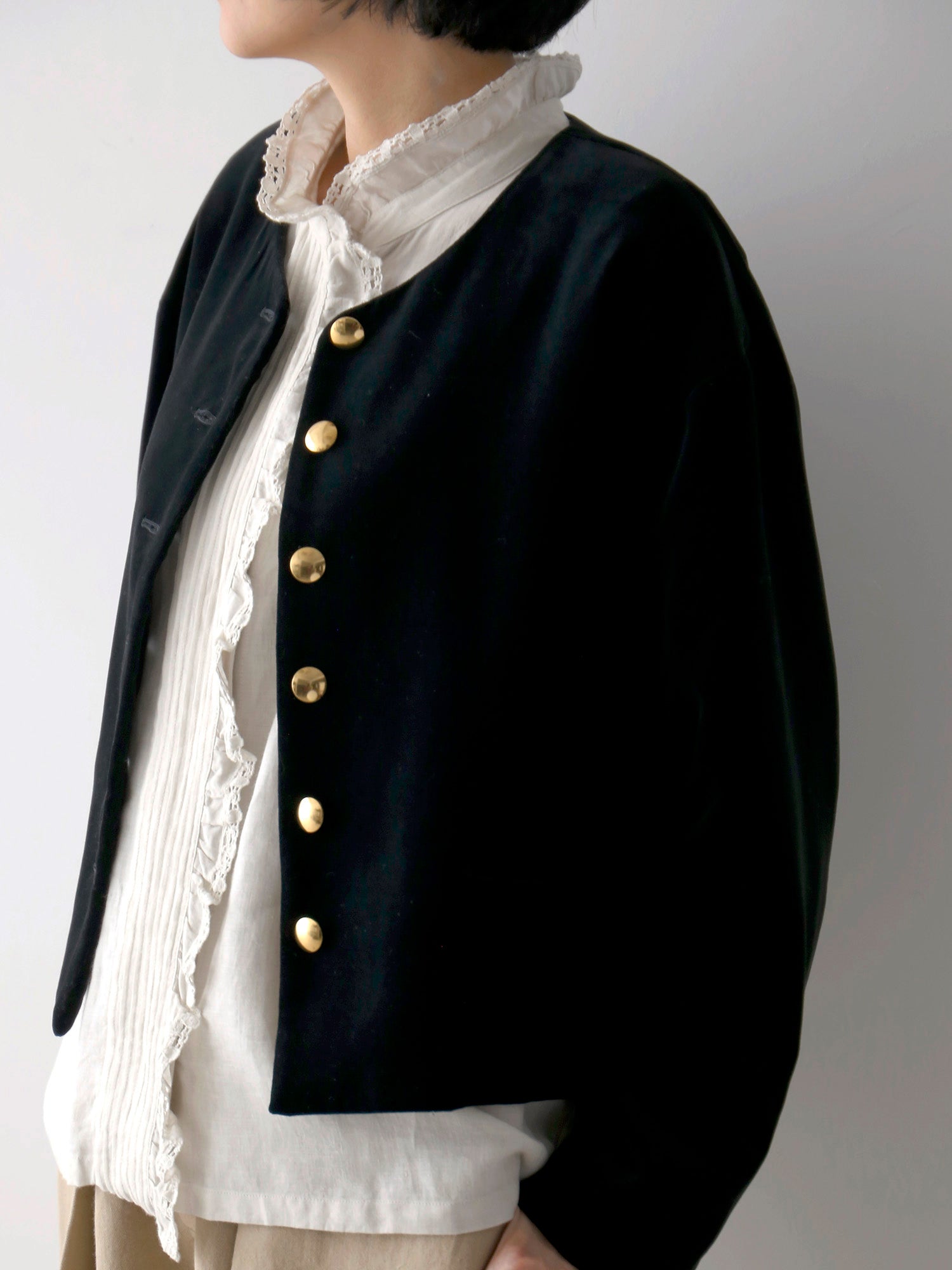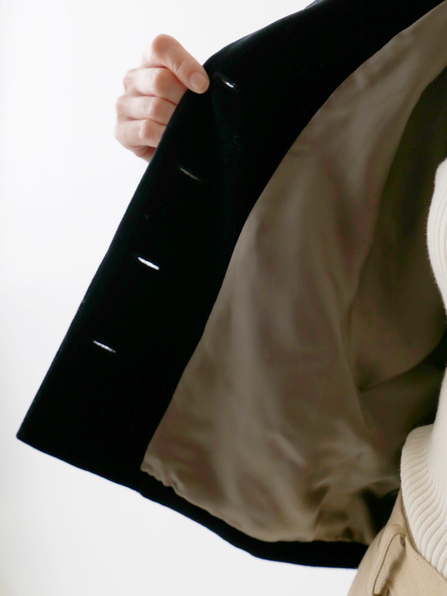 やわらかく、しなやかな手ざわりの別珍ジャケット。ほどよい厚みがありながら、軽やかに羽織れる一枚です。