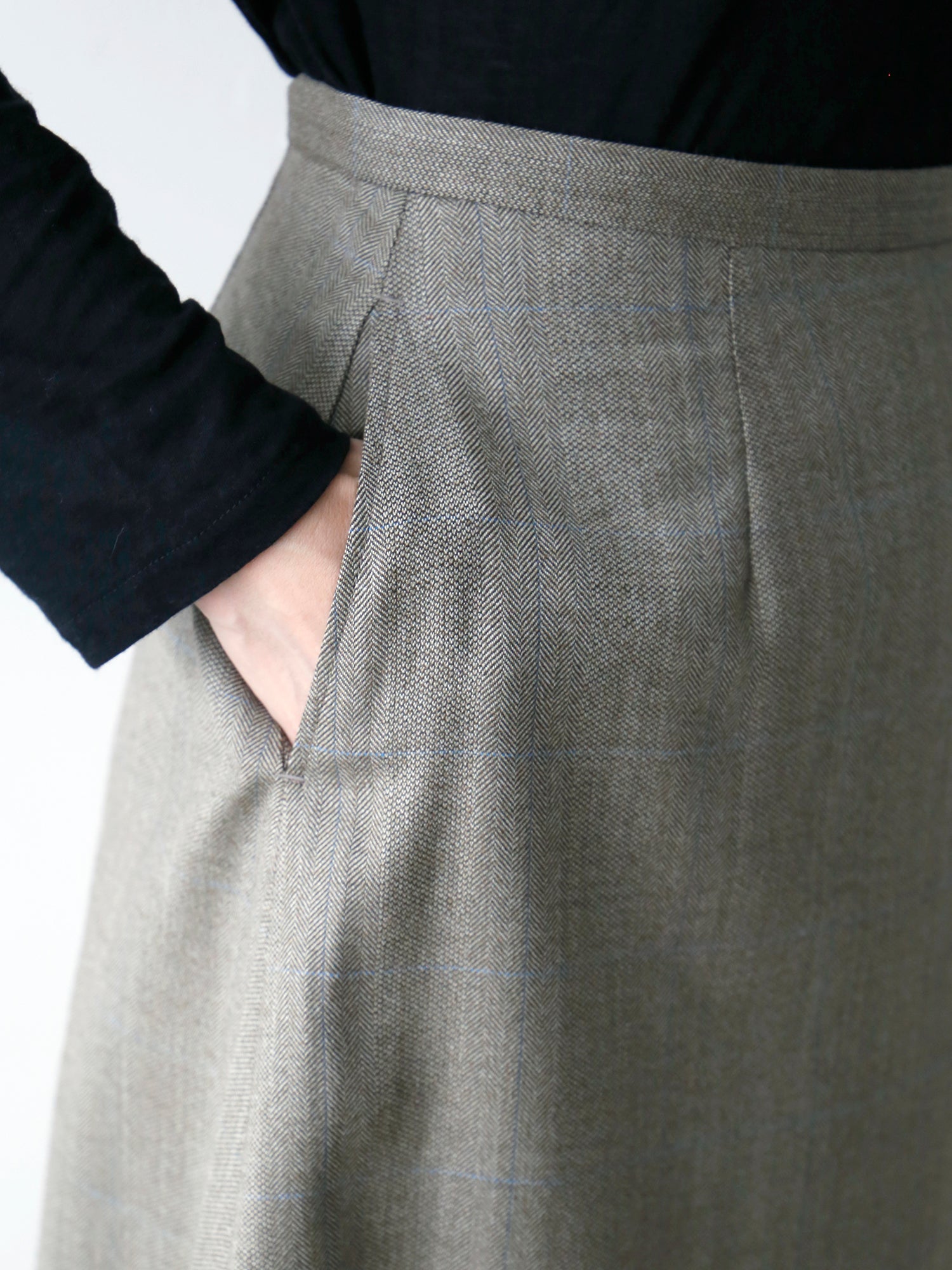 イタリア製のメンズの梳毛のスーツ地で仕立てた、気品のあるスカート。