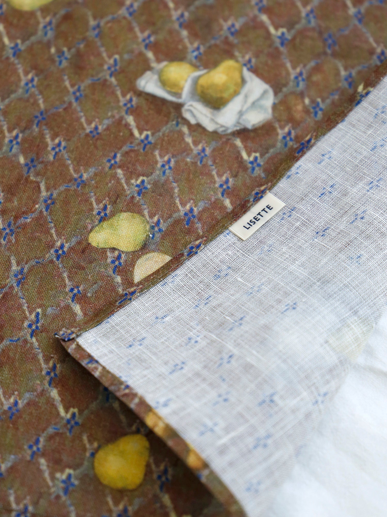 素材はベルジャンリネン。使うほどにやわらかくなじむリネンに、物語を感じさせるプリント柄「Les Poires」を重ねたコレクションです。